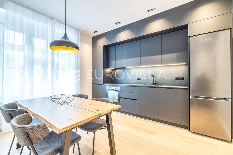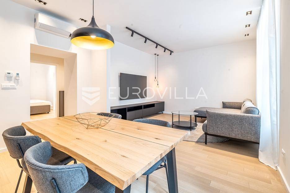 Kvaternikov trg, adaptiran, prekrasan i funkcionalan dvosoban stan u visokom prizemlju održavane starogradnje.Sastoji se ulaznog prostora, open space dnevnog boravka s kuhinjom i blagovaonicom, spavaće sobe s garderobom, kupaonice i vešeraja, zatvorene površine od 56 m2.Kompletno opremljen visoko kvalitetnim namještajem po mjeri i kućanskim aparatima, spreman za prve najmoprimce.Idealna lokacija u tramvajskoj zoni, u blizini svih sadržaja potrebnih za život.Za sve dodatne informacije stojimo Vam na raspolaganju.... Više na eurovilla.hr, ID: 552868
