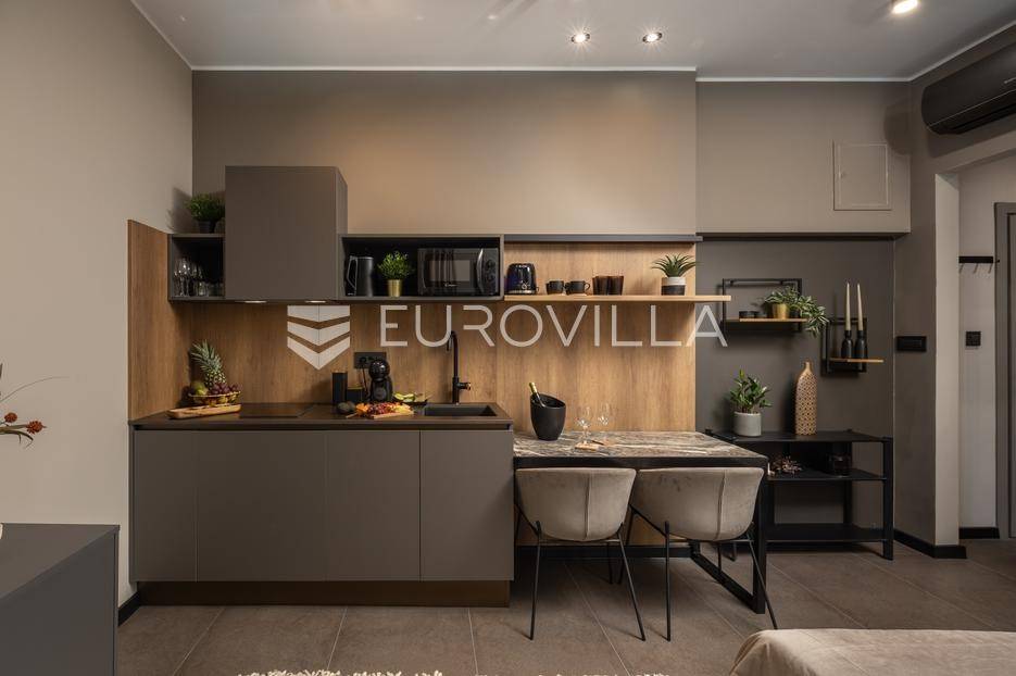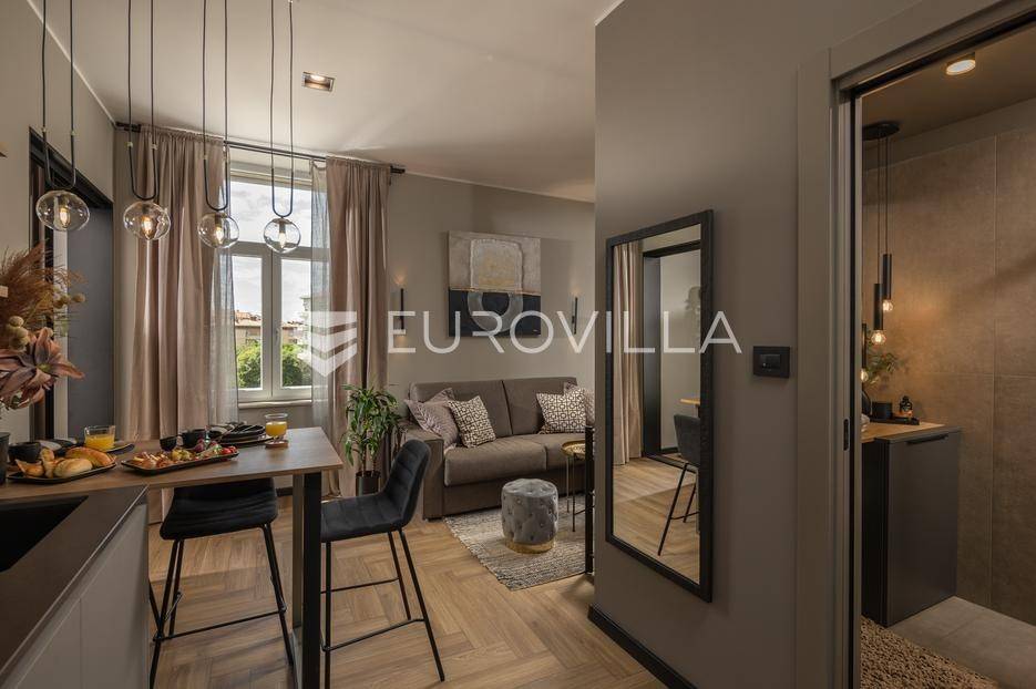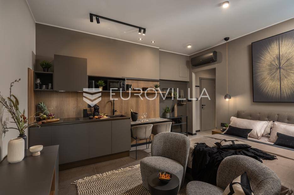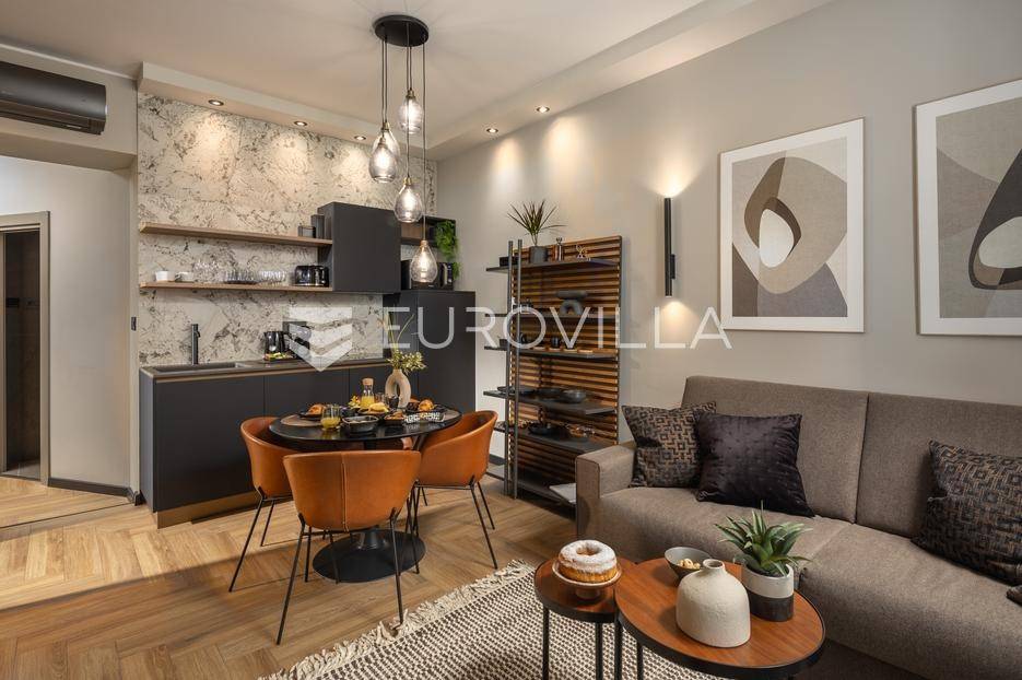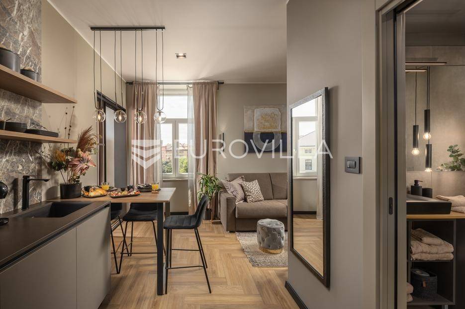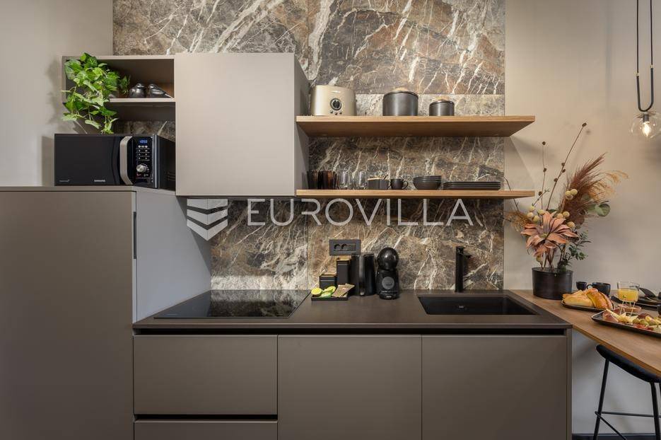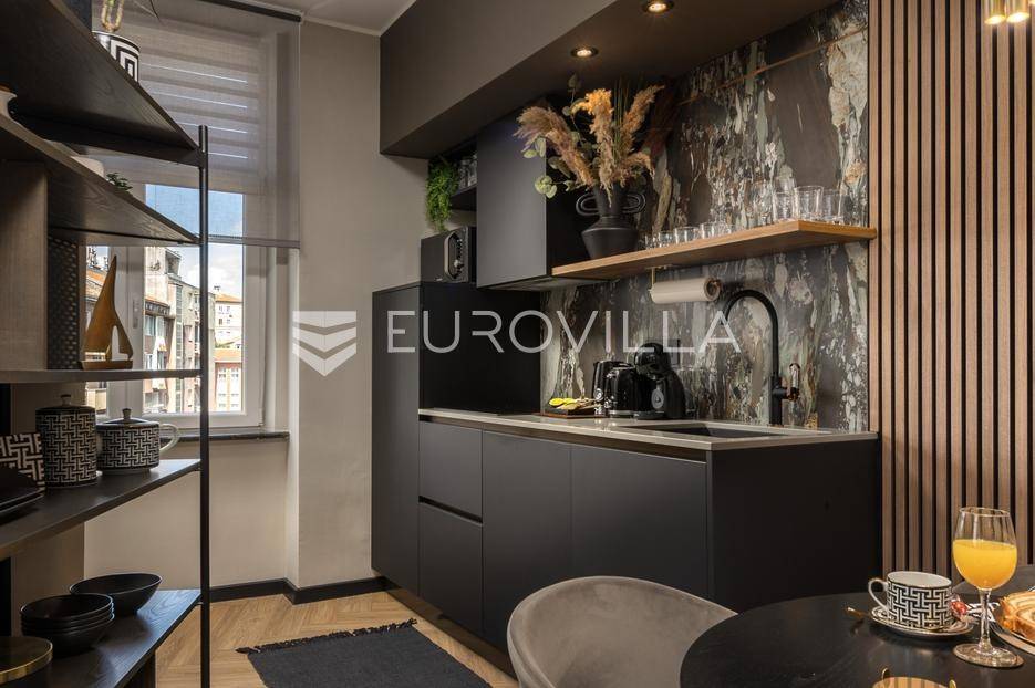 Na atraktivnoj lokaciji u riječkom kvartu Potok prodaje se četverosoban stan ukupne površine 141 m², vrhunski preuređen u četiri zasebna, potpuno opremljena apartmana, površina od 32 do 35 m². Dva apartmana imaju balkon s lijepim, otvorenim pogledom na novu Gradsku knjižnicu i park.Nekretnina se prodaje kao gotov i uhodan investicijski projekt. Apartmani su iznajmljeni veći dio godine te predstavljaju siguran i stabilan izvor prihoda, uz mogućnost uvida u dokaz ostvarene zarade.Interijer je izveden u luksuznom hotelskom stilu, s pažljivo biranim toplim bež i antracit nijansama, zlatnim akcentima i ambijentalnom rasvjetom. Korišten je najkvalitetniji talijanski namještaj, uz porculanske pločice velikog formata.Kuhinje su rađene po mjeri- Veneta Cucine u mat crnoj izvedbi, s kvalitetnim radnim plohama i dekorativnim “stone/marble” pozadinama. Dnevni i spavaći dio povezani su staklenim kliznim stijenama s mat trakama, dok drvene zidne letvice s indirektnom LED rasvjetom dodatno naglašavaju suvremeni dizajn prostora.Interijer upotpunjuju dizajnerske visilice u mesinganoj izvedbi, baršunaste blagovaonske stolice i trendovski geometrijski tekstili. Kupaonice su opremljene walk-in tuševima, staklenim pregradama i crnom armaturom, uz dekorativne ploče s efektom prirodnog kamena.Svaki apartman sastoji se od dnevnog boravka s kuhinjom i blagovaonicom, jedne spavaće sobe te dizajnerski uređene kupaonice. Površine apartmana kreću se od 32 do 35 m², pri čemu dva apartmana imaju balkon.Kvart Potok nudi iznimnu praktičnost- pješačka udaljenost do centra grada i svih važnih sadržaja, pogled na novu Gradsku knjižnicu te odličnu prometnu povezanost čine ovu lokaciju posebno atraktivnom za kratkoročni i srednjoročni najam.Nekretnina se prodaje isključivo kao cjelina, odnosno kao paket od četiri apartmana. Uhodan najam tijekom većeg dijela godine osigurava stabilan cash-flow i brži povrat investicije. Namještaj i kompletna oprema uključeni su u cijenu.Dokumentacija je uredna.Za sve dodatne informacije i dogovor oko razgledavanja stojimo Vam na raspolaganju.... Više na eurovilla.hr, ID: 564331