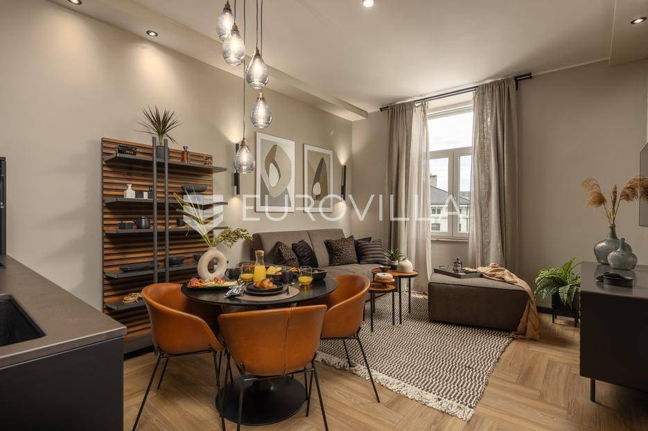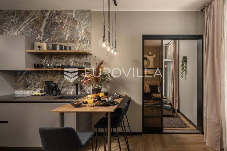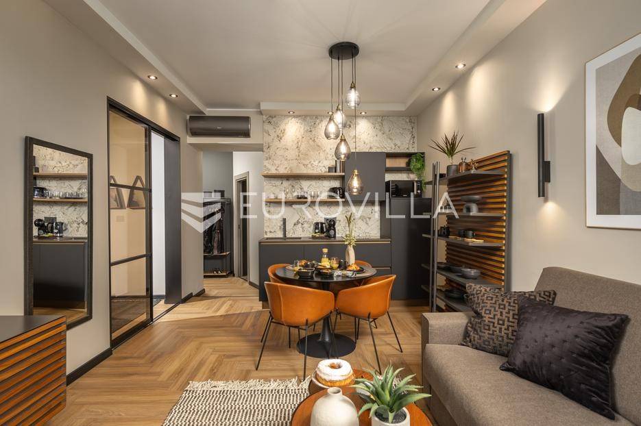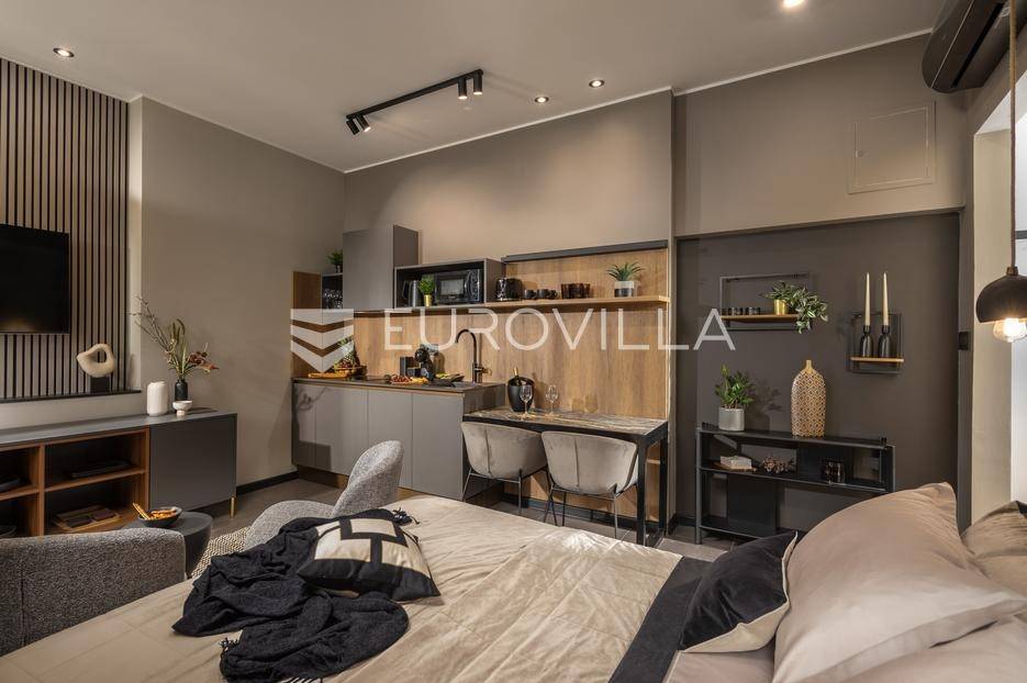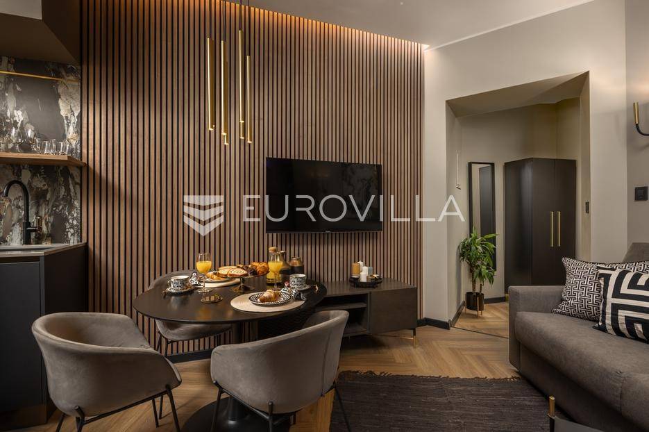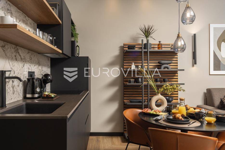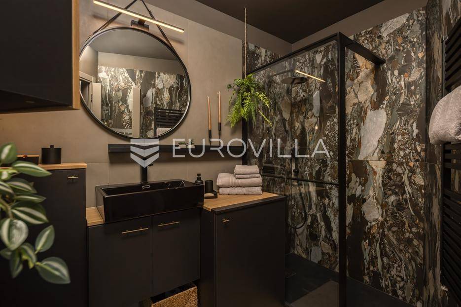 Na atraktivnoj lokaciji u riječkom kvartu Potok prodaje se četverosoban stan ukupne površine 141 m², vrhunski preuređen u četiri zasebna, potpuno opremljena apartmana, površina od 32 do 35 m². Dva apartmana imaju balkon s lijepim, otvorenim pogledom na novu Gradsku knjižnicu i park.Nekretnina se prodaje kao gotov i uhodan investicijski projekt. Apartmani su iznajmljeni veći dio godine te predstavljaju siguran i stabilan izvor prihoda, uz mogućnost uvida u dokaz ostvarene zarade.Interijer je izveden u luksuznom hotelskom stilu, s pažljivo biranim toplim bež i antracit nijansama, zlatnim akcentima i ambijentalnom rasvjetom. Korišten je najkvalitetniji talijanski namještaj, uz porculanske pločice velikog formata.Kuhinje su rađene po mjeri- Veneta Cucine u mat crnoj izvedbi, s kvalitetnim radnim plohama i dekorativnim “stone/marble” pozadinama. Dnevni i spavaći dio povezani su staklenim kliznim stijenama s mat trakama, dok drvene zidne letvice s indirektnom LED rasvjetom dodatno naglašavaju suvremeni dizajn prostora.Interijer upotpunjuju dizajnerske visilice u mesinganoj izvedbi, baršunaste blagovaonske stolice i trendovski geometrijski tekstili. Kupaonice su opremljene walk-in tuševima, staklenim pregradama i crnom armaturom, uz dekorativne ploče s efektom prirodnog kamena.Svaki apartman sastoji se od dnevnog boravka s kuhinjom i blagovaonicom, jedne spavaće sobe te dizajnerski uređene kupaonice. Površine apartmana kreću se od 32 do 35 m², pri čemu dva apartmana imaju balkon.Kvart Potok nudi iznimnu praktičnost- pješačka udaljenost do centra grada i svih važnih sadržaja, pogled na novu Gradsku knjižnicu te odličnu prometnu povezanost čine ovu lokaciju posebno atraktivnom za kratkoročni i srednjoročni najam.Nekretnina se prodaje isključivo kao cjelina, odnosno kao paket od četiri apartmana. Uhodan najam tijekom većeg dijela godine osigurava stabilan cash-flow i brži povrat investicije. Namještaj i kompletna oprema uključeni su u cijenu.Dokumentacija je uredna.Za sve dodatne informacije i dogovor oko razgledavanja stojimo Vam na raspolaganju.... Više na eurovilla.hr, ID: 564331