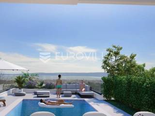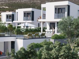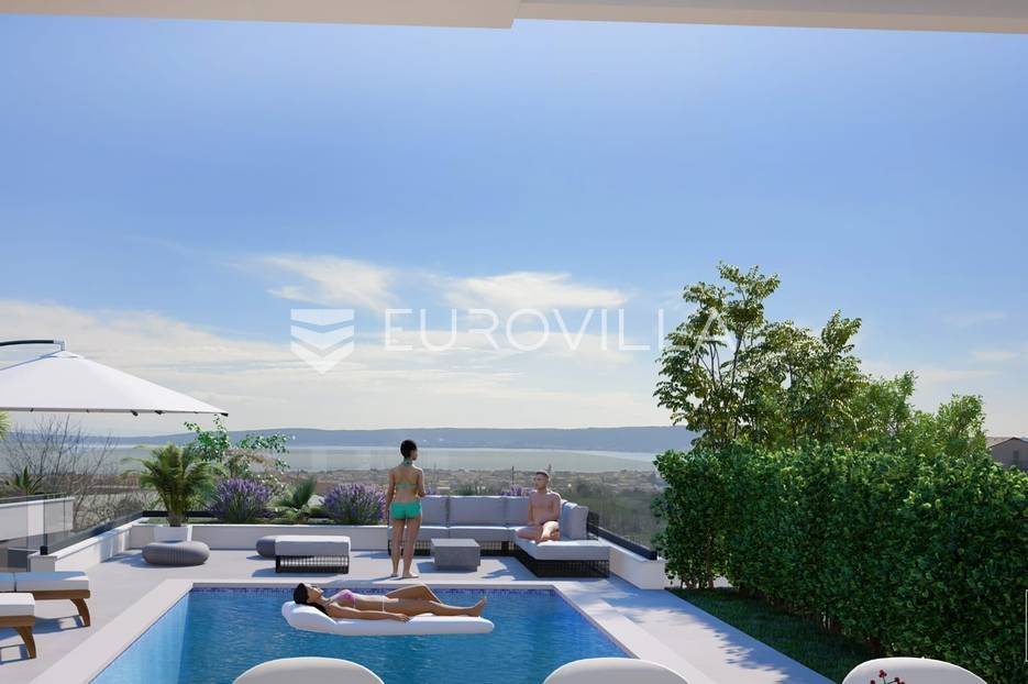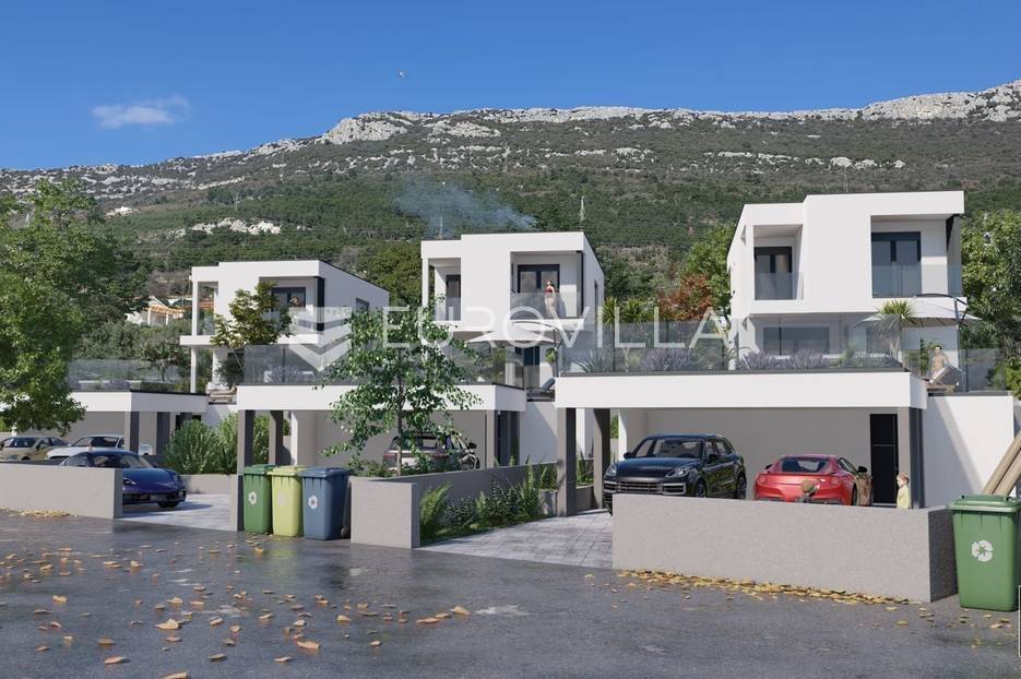 Vila u izgradnji na mirnoj lokaciji, okružena s nekoliko sličnih vila i obiteljskim kućama, s panoramskim pogledom na kaštelanski zaljev.Sastoji se od tri etaže; podruma, prizemlja i prvog kata.Podrumski dio osmišljen je kao fitness zona koja uključuje sobu za druženje s pripadajućom kupaonicom (koja se po želji kupca može prenamijeniti u spavaću sobu s kupaonicom) i teretanu također sa svojom kupaonicom.Na prizemlju se nalazi dnevni dio koji uključuje dnevni boravak, kuhinju i blagovaonicu s izlazom na natkrivenu terasu te od ostave i kupaonice. S terase se spušta u dvorište s bazenom.Prvi kat sastoji se od tri spavaće sobe s kupaonicama i izlazima na lođe, dok bračna spavaća soba ima i garderobu. Na ovoj etaži nalazi se još jedna prostorija predviđena za ostavu.Vila će imati parking za četiri automobila, dva natkrivena i dva nenatkrivena.Oprema: Talijanska keramika prve klase 120x60, podno grijanje u svim kupaonicama, električne rolete, aluminijska bravarija, Hansgrohe sanitarije, klima uređaji u svim prostorijama.Dovršetak radova predviđen je za kraj 2026.godine.Za dodatne informacije stojimo na raspolaganju.... Više na eurovilla.hr, ID: 576709