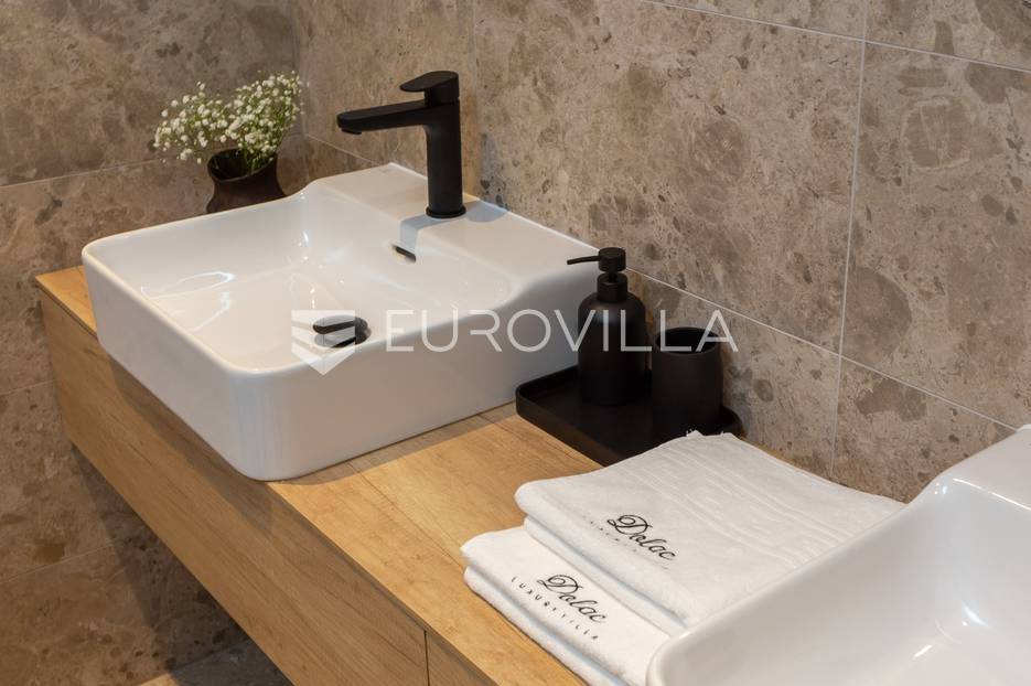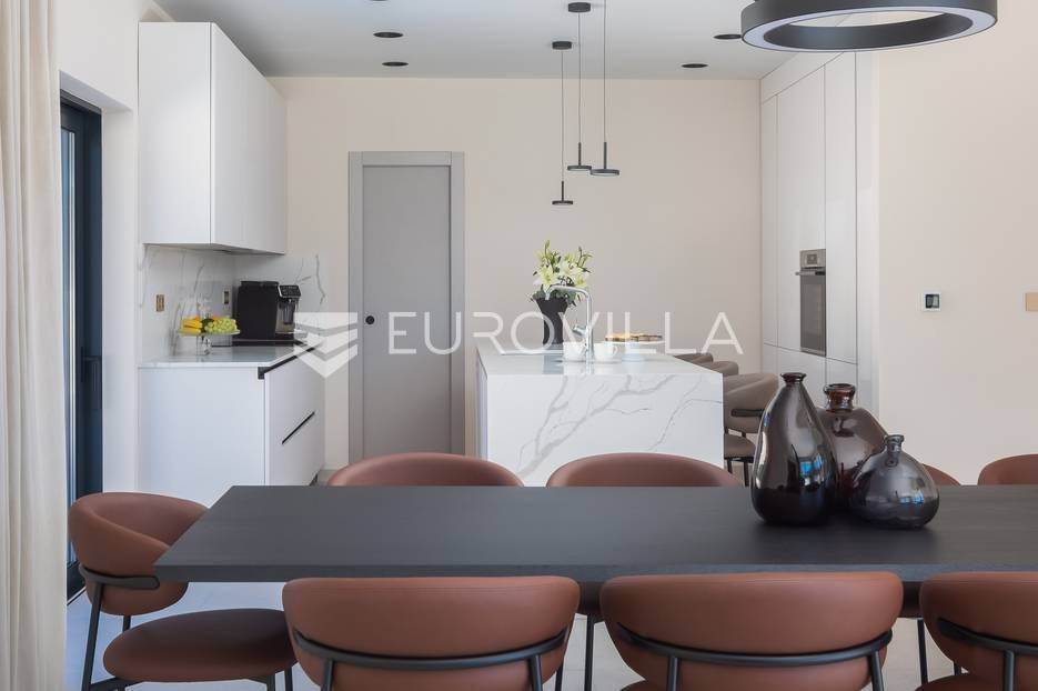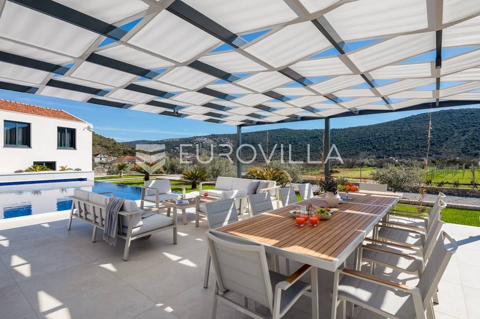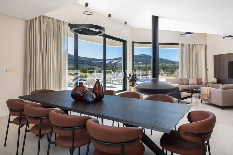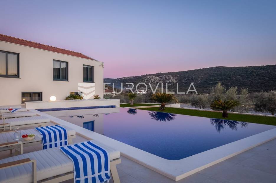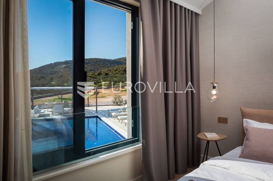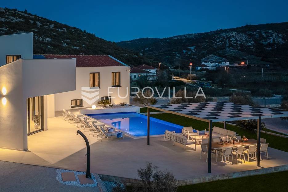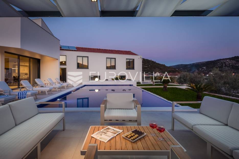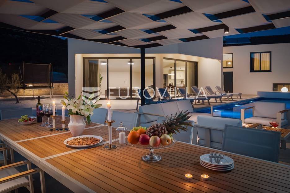 Marina, potpuno izolirana, na parceli površine 5600 m2, smještena je pomno uređena vila s bazenom. Razvedena u dvije etaže, te ukupno 250 metara stambenog prostora.Prizemlje se sastoji od prostranog dnevnog prostora, blagovaonice, kuhinje, strojarnice, kupaonice, ostave, spavaće sobe s pripadajućom kupaonicom, te garaže dostatne za dva automobila, dok su na katu smještene četiri spavaće sobe s pripadajućim kupaonicama.Moderno uređen interijer, upotpunjen talijanskim stilskim namještajem, obećava budućim vlasnicima potpuno uživanje u stambenom prostoru. Posebnu čar objektu daje potpuni mir i privatnost koju osigurava ograđena okućnica na više od 5600 m2. Osim prostora za druženje i relaksaciju, ispred objekta se nalazi i hidromasažni bazen površine 66 m2.Objekt je kategoriziran s 5*, što ga čini idealnom investicijom, bilo da se radi o stambenom rješenju ili investiciji za turizam.Za sve dodatne informacije, stojim na raspolaganju.... Više na eurovilla.hr, ID: 620590
