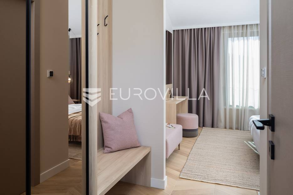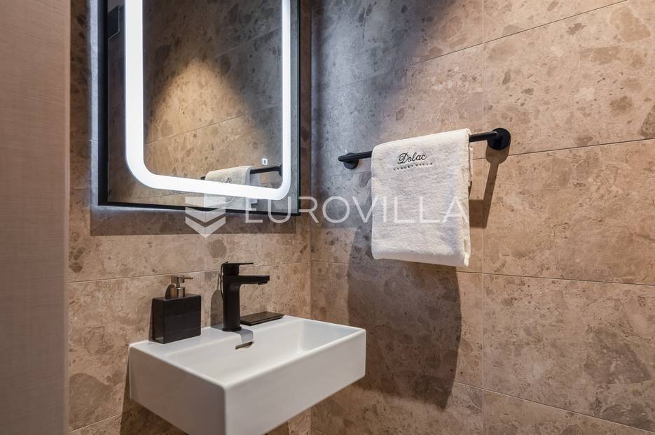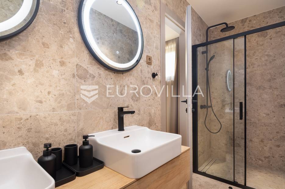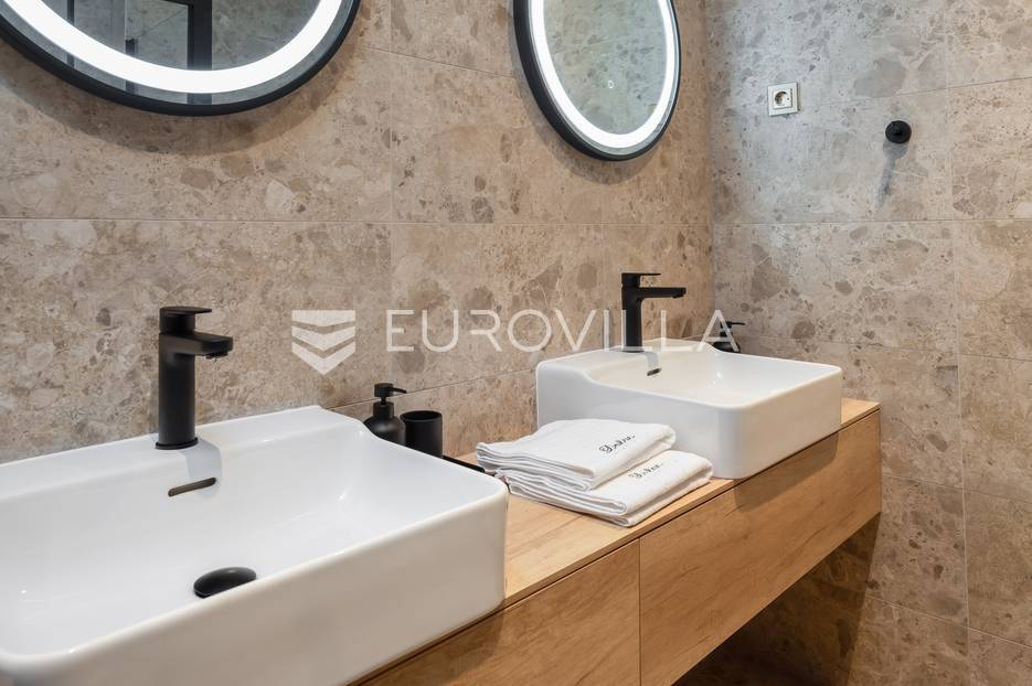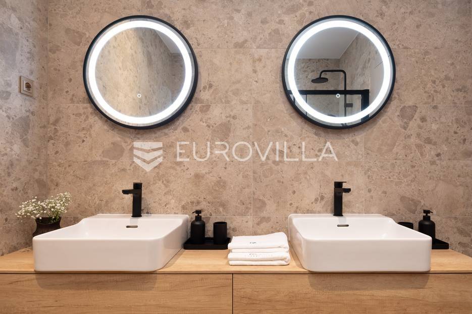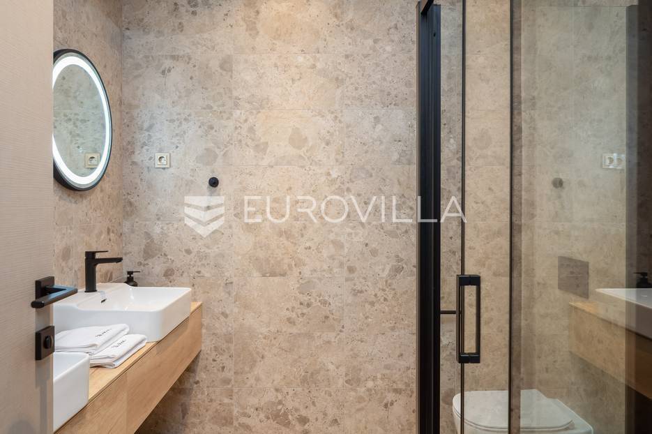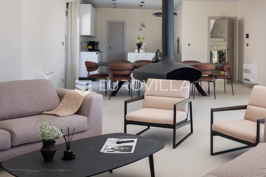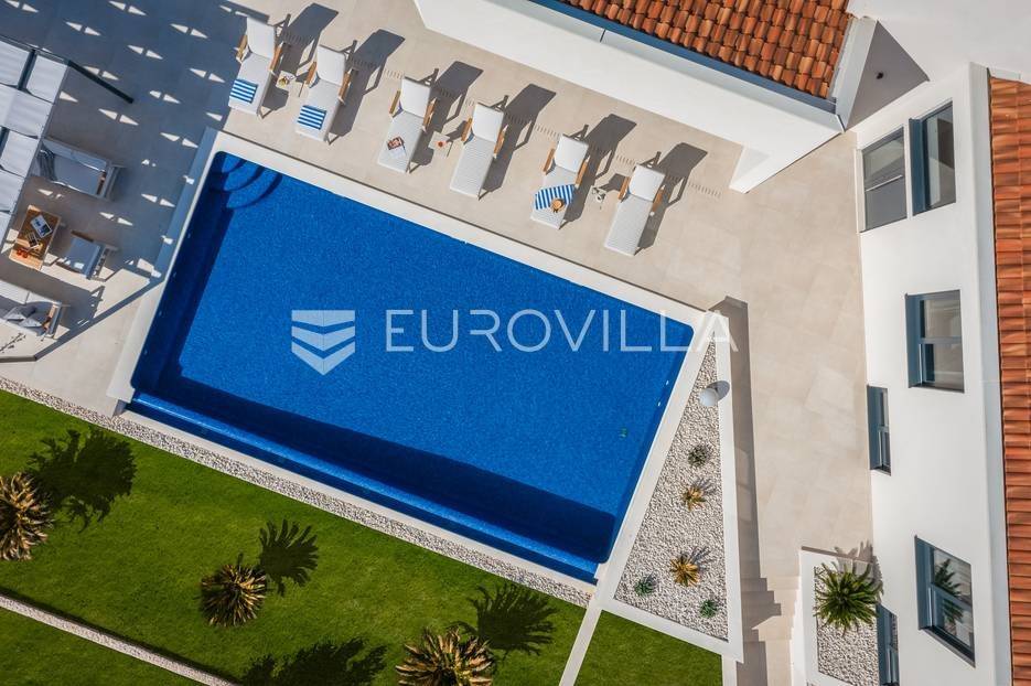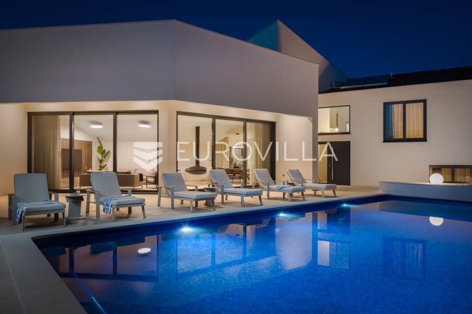 Marina, potpuno izolirana, na parceli površine 5600 m2, smještena je pomno uređena vila s bazenom. Razvedena u dvije etaže, te ukupno 250 metara stambenog prostora.Prizemlje se sastoji od prostranog dnevnog prostora, blagovaonice, kuhinje, strojarnice, kupaonice, ostave, spavaće sobe s pripadajućom kupaonicom, te garaže dostatne za dva automobila, dok su na katu smještene četiri spavaće sobe s pripadajućim kupaonicama.Moderno uređen interijer, upotpunjen talijanskim stilskim namještajem, obećava budućim vlasnicima potpuno uživanje u stambenom prostoru. Posebnu čar objektu daje potpuni mir i privatnost koju osigurava ograđena okućnica na više od 5600 m2. Osim prostora za druženje i relaksaciju, ispred objekta se nalazi i hidromasažni bazen površine 66 m2.Objekt je kategoriziran s 5*, što ga čini idealnom investicijom, bilo da se radi o stambenom rješenju ili investiciji za turizam.Za sve dodatne informacije, stojim na raspolaganju.... Više na eurovilla.hr, ID: 620590