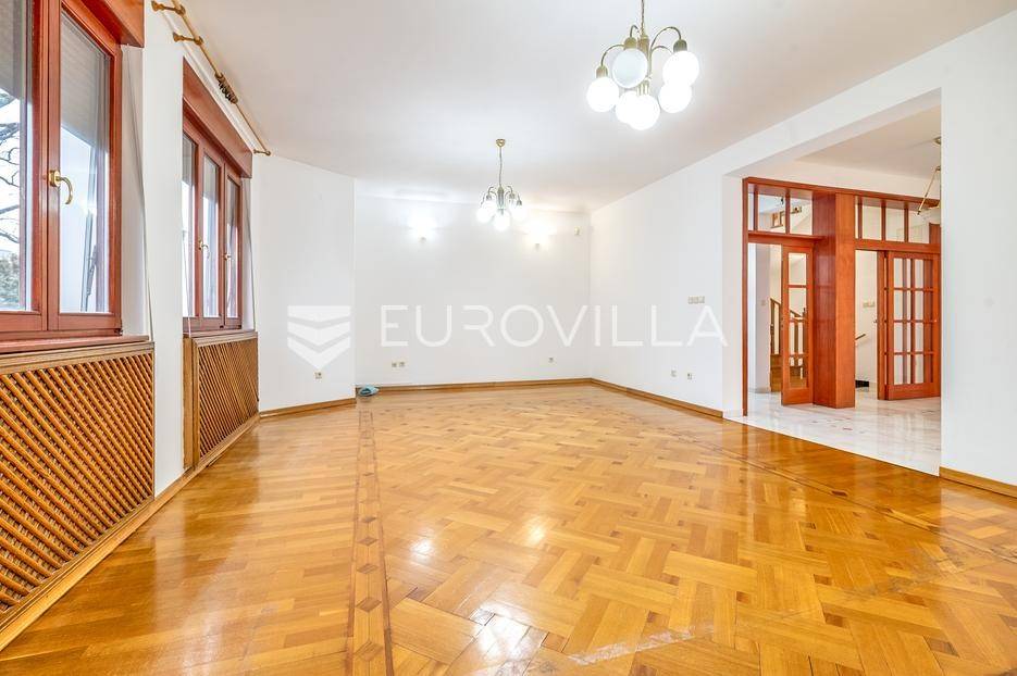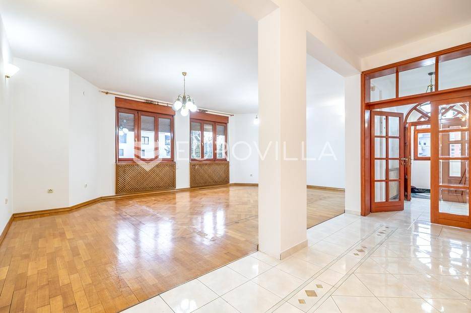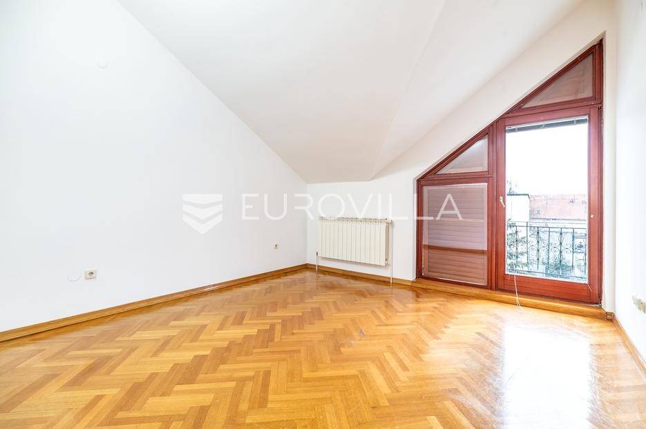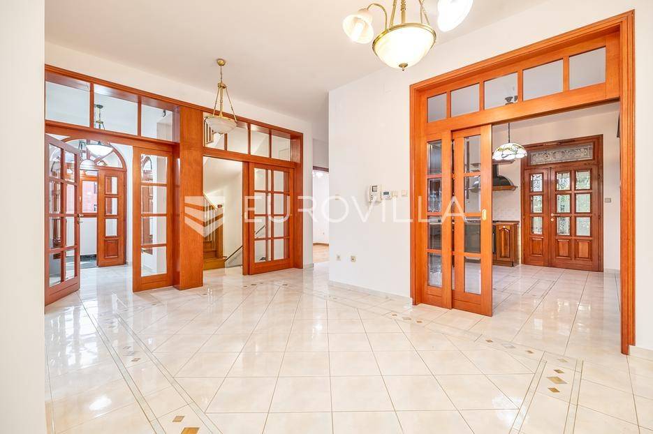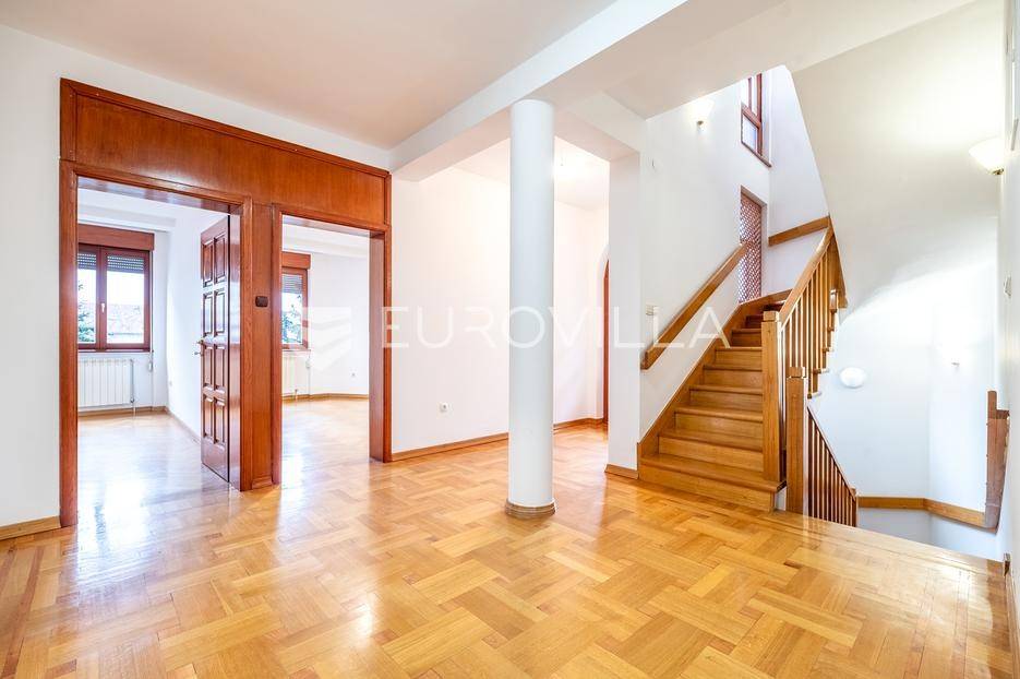 Lašćina, prekrasno uređena luksuzna obiteljska kuća površine 400 m2 razvedena na 4 etaže:Suteren: 3 prostorije, kotlovnica, kupaonica s tušem, odvojen toalet, ostava te garaža za 1 automobil.Prizemlje: ulazni hodnik, prostrani dnevni boravak s blagovaonicom, opremljena kuhinja sa zasebnim izlazom u podrum, spavaća soba te kupaonica s kadom.Prvi kat: 3 spavaće sobe, garderoba, 2 kupaonice te balkon.Drugi kat: prostrani dnevni boravak s bibliotekom, 3 spavaće sobe, kupaonica s kadom te 2 balkona.Izvan kuće se nalaze 2 uređene ostave te ograđeno dvorište s parkingom za više vozila. Mogućnost stambenog ili poslovnog najma. Odlična lokacija u mirnoj ulici, u blizini parka Maksimir, javnog prijevoza, trgovina, vrtića, škola te svih potrebnih sadržaja.Ostale informacije na upit.... Više na eurovilla.hr, ID: 636196