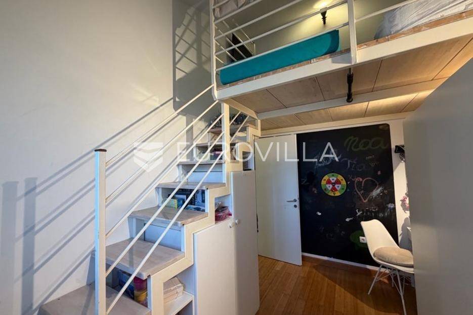 Prodaje se dvoetažni stan od 89 m2 koji pruža osjećaj komfora kuće, ali uz praktičnost stanovanja u zgradi. Prostor je osmišljen tako da je funkcionalan, ugodan i jednostavan za svakodnevni život, a zahvaljujući orijentaciji istok–zapad tijekom cijelog dana ispunjen je prirodnim svjetlom.Stan se sastoji od dnevnog prostora koji povezuje boravak i kuhinju, dvije spavaće sobe, i to glavna soba ima ugradbeni ormar izrađen po mjeri, dok druga nudi dodatnu galeriju koja može poslužiti kao radni kutak, prostor za čitanje ili dodatni ležaj. Stan ima kupaonicu, zaseban wc, odvojeni vešeraj i praktično spremište. Posebnu vrijednost daju lođa i terasa.Stan se prodaje potpuno namješten i opremljen, sve je održavano s pažnjom i spremno za useljenje bez dodatnih ulaganja. Na prvoj etaži ugrađeno je podno grijanje na struju te dva klima uređaja, a sve s mogućnošću upravljanja putem WiFi-a. Proveden je optički internet, a 2025. godine zamijenjena je PVC stolarija i postavljeni su komarnici.Uz stan dolaze i dodatni prostori upisani u vlasnički list koji nisu uračunati u kvadraturu: potkrovlje od 9 m2 koje može postati radna soba ili dodatna spavaća soba, parkirno mjesto s priključkom za struju te spremište u prizemlju zgrade.Dokumentacija je uredna, vlasništvo 1/1, posjeduje uporabnu dozvolu i energetski certifikat, a kupnja je moguća i putem kredita.Za sve dodatno informacije ili dogovor oko razgledavanja, stojimo Vam na raspolaganju.... Više na eurovilla.hr, ID: 641502
