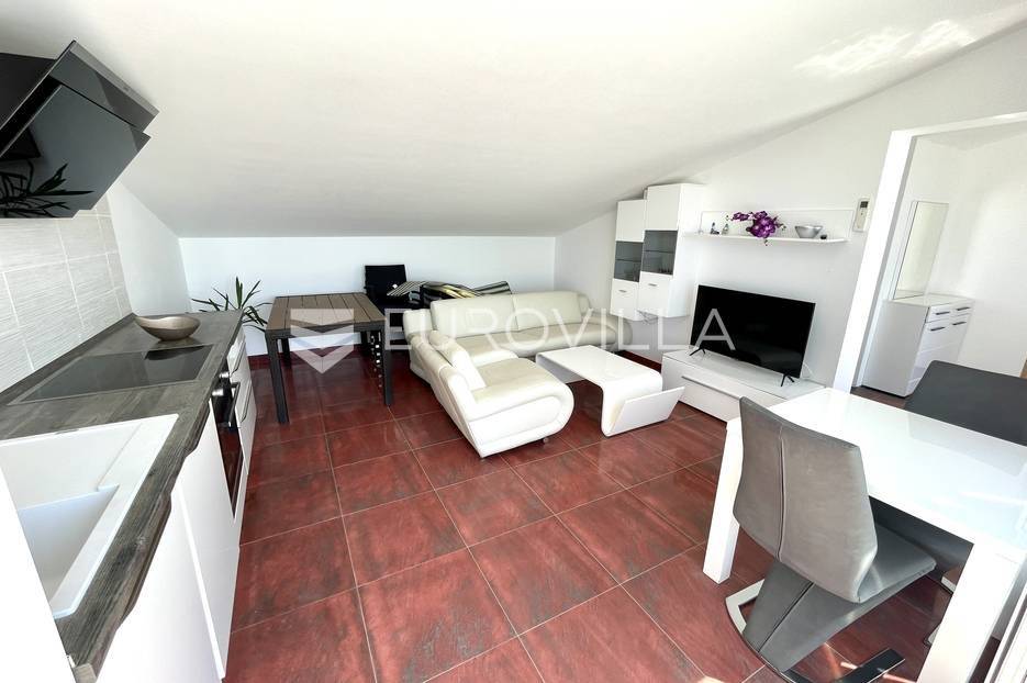 Na jednom od najsunčanijih i najljepših otoka na Jadranu, otoku Rabu prodaje se penthouse u potkrovlju apartmanske ville veličine 66 m2.Ovaj lijepo i moderno uređen stan sastoji se od ulaznog prostora, jedne spavaće sobe, kupaonice, kuhinje, blagovaonice i dnevnog boravka otvorenog tlocrta koji ima izlaz na spektakularnu terasu s koje se otvara predivan pogled na more i grad Barbat.Stan je smješten na izvrsnoj lokaciji 250 m od mora, malo izvan centra grada tako da ima privatnost i mir potreban za ugodan odmor. Pokraj kuće nalazi se parkirno mjesto.Ostale informacije na upit.... Više na eurovilla.hr, ID: 650555