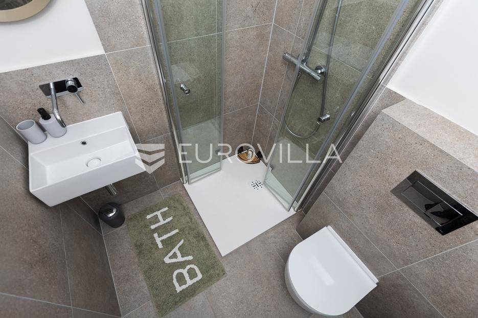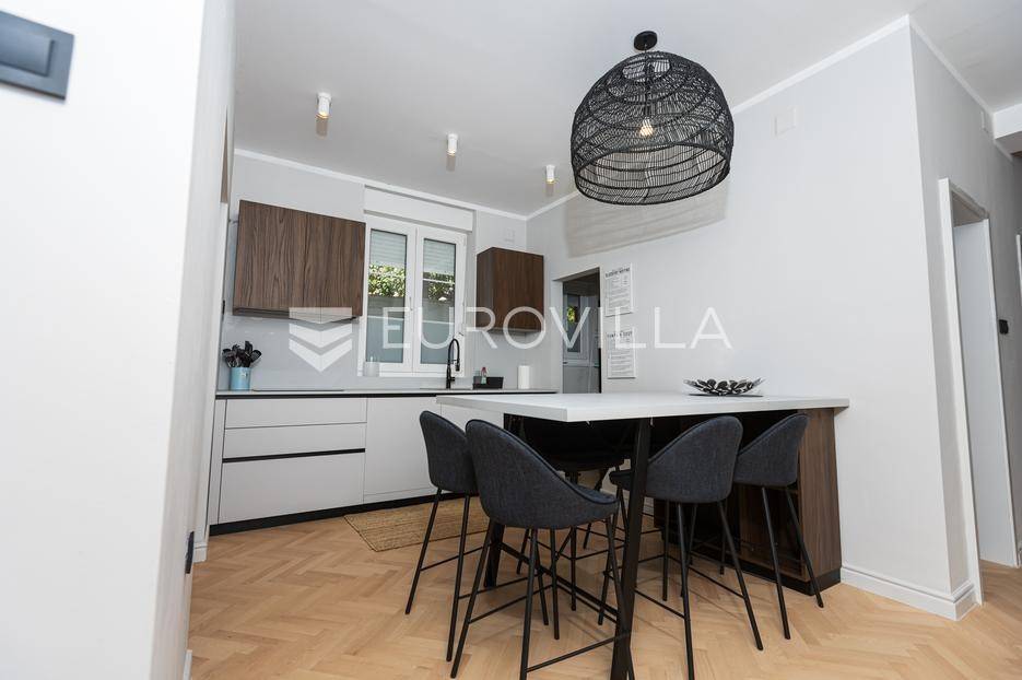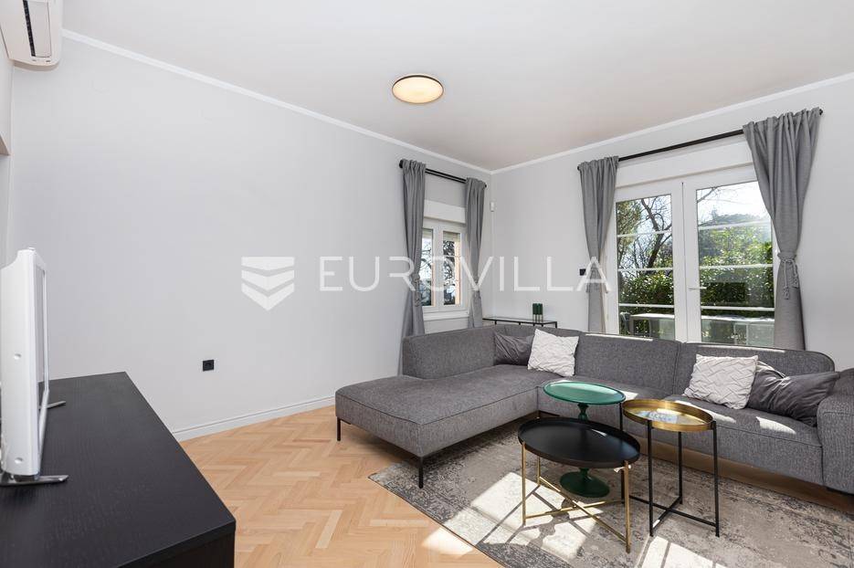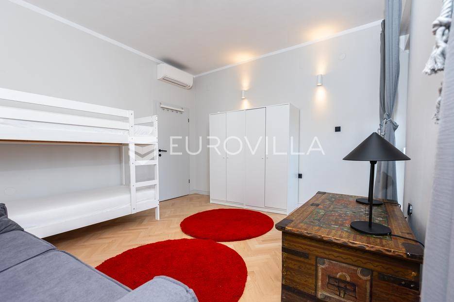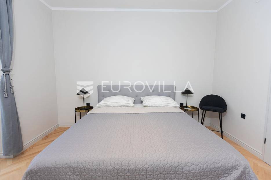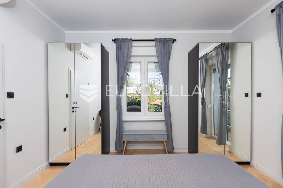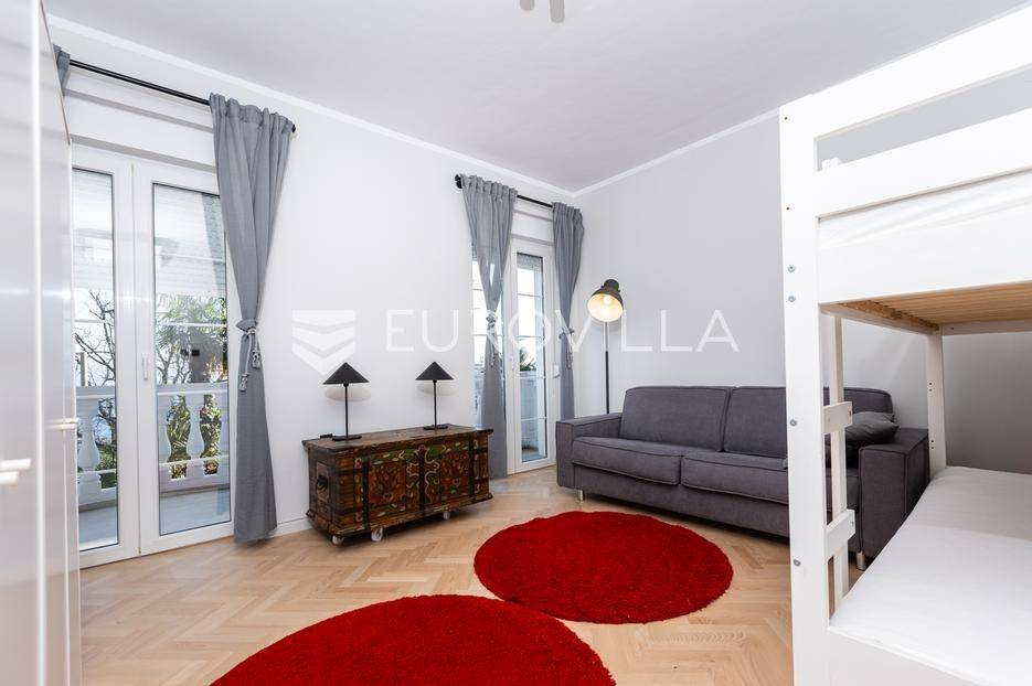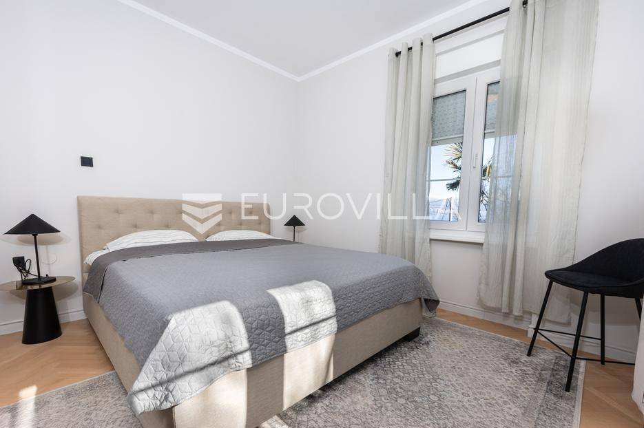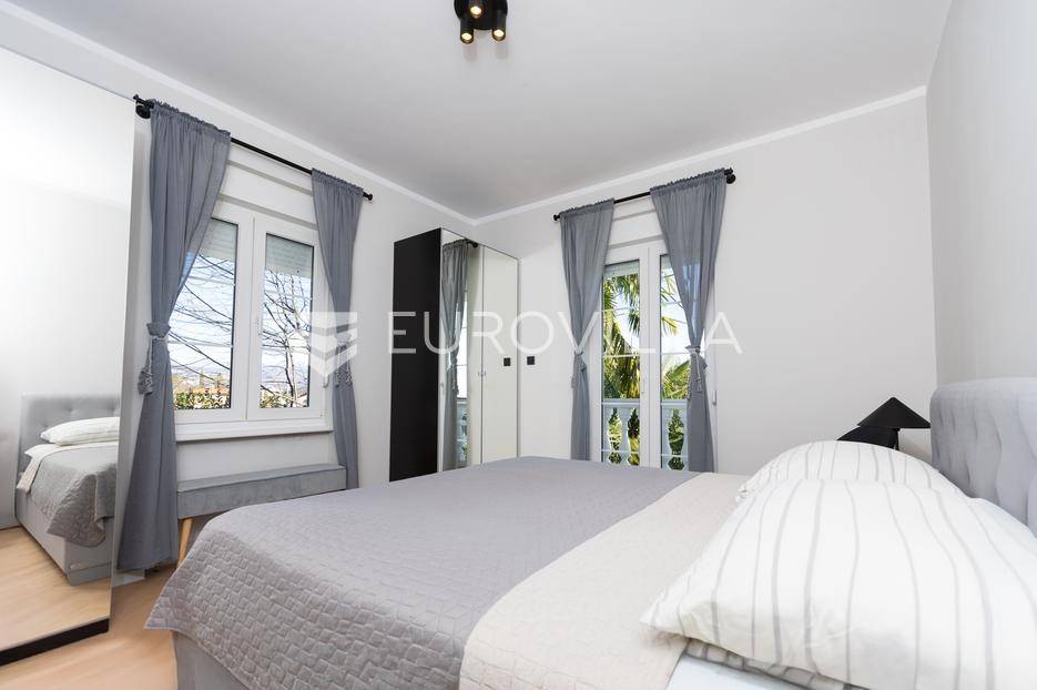 Opatija, Centar, luksuzan četverosoban stan 110 m2 s pogledom na more.Iznajmljuje se elegantan i potpuno opremljen stan u povjesnoj vili smještenoj u samom srcu Opatije, na svega 60 metara od mora. Stan je površine 110 m², nalazi se na prvom katu i pruža predivan pogled na more. Uz stan dolazi i privatno parkirno mjesto.Stan se sastoji od tri prostrane spavaće sobe, dvije moderno opremljene kupaonice, luksuzne kuhinje s blagovaonicom i spremištem, prostranog dnevnog boravka te balkona i terase, idealnih za uživanje na svježem zraku.Nedavno je potpuno renoviran te opremljen vrhunskim materijalima i namještajem; od novih instalacija, glazura, parketa i pločica do luksuznih madraca i pažljivo odabrane kuhinje.Cjelokupna oprema odražava vrhunsku kvalitetu i pažnju prema detaljima. Klime u svim prostorijama su renomiranog brenda Daikin, kuhinja je talijanskog dizajna Doimo, dok bijela tehnika dolazi od marke Bosch. Pločice i sanitarije talijanske proizvodnje dodatno ističu visoku razinu estetike i funkcionalnosti.Sigurnost je osigurana protuprovalnim vratima i alarmnim sustavom, čime ovaj stan pruža mir i bezbrižnost. Ova nekretnina spaja eleganciju, udobnost i praktičnost, pružajući idealan prostor za miran život uz luksuzan doživljaj.Za sve dodatne informacije slobodno nas kontaktirajte!... Više na eurovilla.hr, ID: 723458