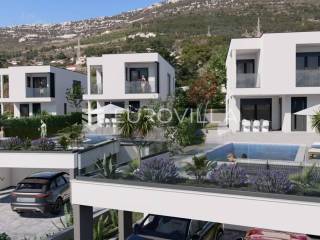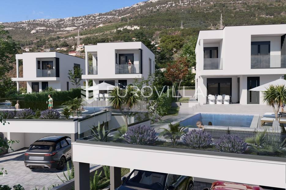 Kaštela, urbana vila u izgradnji na mirnoj lokaciji, s panoramskim pogledom na kaštelanski zaljev.Kuća se sastoji se od dvije etaže; prizemlja i prvog kata.Na prizemlju se nalazi dnevni dio koji uključuje dnevni boravak, kuhinju i blagovaonicu s izlazom na natkrivenu terasu te od ostave i kupaonice, ispred je terasa s pristupom iz dnevnog boravka s koje se spušta u dvorište s bazenom.Prvi kat sastoji se od tri spavaće sobe s kupaonicama i izlazima na lođe, dok bračna spavaća soba ima i garderobu. Na ovoj etaži nalazi se još jedna prostorija predviđena za ostavu.Vila će imati parking za četiri automobila, dva natkrivena i dva nenatkrivena.Oprema: Talijanska keramika prve klase 120x60, podno grijanje u svim kupaonicama, električne rolete, aluminijska bravarija, Hansgrohe sanitarije, klima uređaji u svim prostorijama.Planirani dovršetak radova predviđen je za kraj 2024.godine.Za dodatne informacije stojim vam na raspolaganju na navedenim kontaktima.... Više na eurovilla.hr, ID: 752635