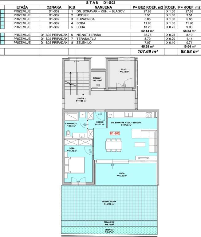Omiška rivijera, jednosoban stan s prostranom terasom u modernoj novogradnji u blizini mora.STAN S2 smješten je u prizemlju zgrade i ima ukupno 48.94 m2 zatvorene stambene površine. Sastoji se od hodnika, kupaonice, dnevnog boravka i kuhinje s blagovaonicom te jedne spavaće sobe. Iz dnevnog boravka i spavaće sobe izlazi se na lođu površine 13,.20 m2, koja se nastavlja na nenatkrivenu terasu od 38,48 m2 te dio pripadajuće zelene površine od 7.07 m2.Stan je južno orijentiran, što osigurava obilje prirodnog svjetla tijekom cijelog dana i ugodnu atmosferu boravka.Uz stan je moguća kupnja garažnog ili vanjskog parkirnog mjesta, kao i ostave.Oprema: podno grijanje u dnevnom boravku i kupaonici, klima uređaj u spavaćoj sobi i dnevnim prostorijama, električne rolete, PVC stolarija s troslojnim staklom, klizne aluminijske stijene, staklena ograda, kvalitetna keramika i sanitarna oprema.Kupac ne plaća porez na promet nekretnina za stanove iz ovog projekta.Planirani završetak gradnje je krajem 2027. godine.Za sve ostale informacije stojimo Vam na raspolaganju.... Više na eurovilla.hr, ID: 771316