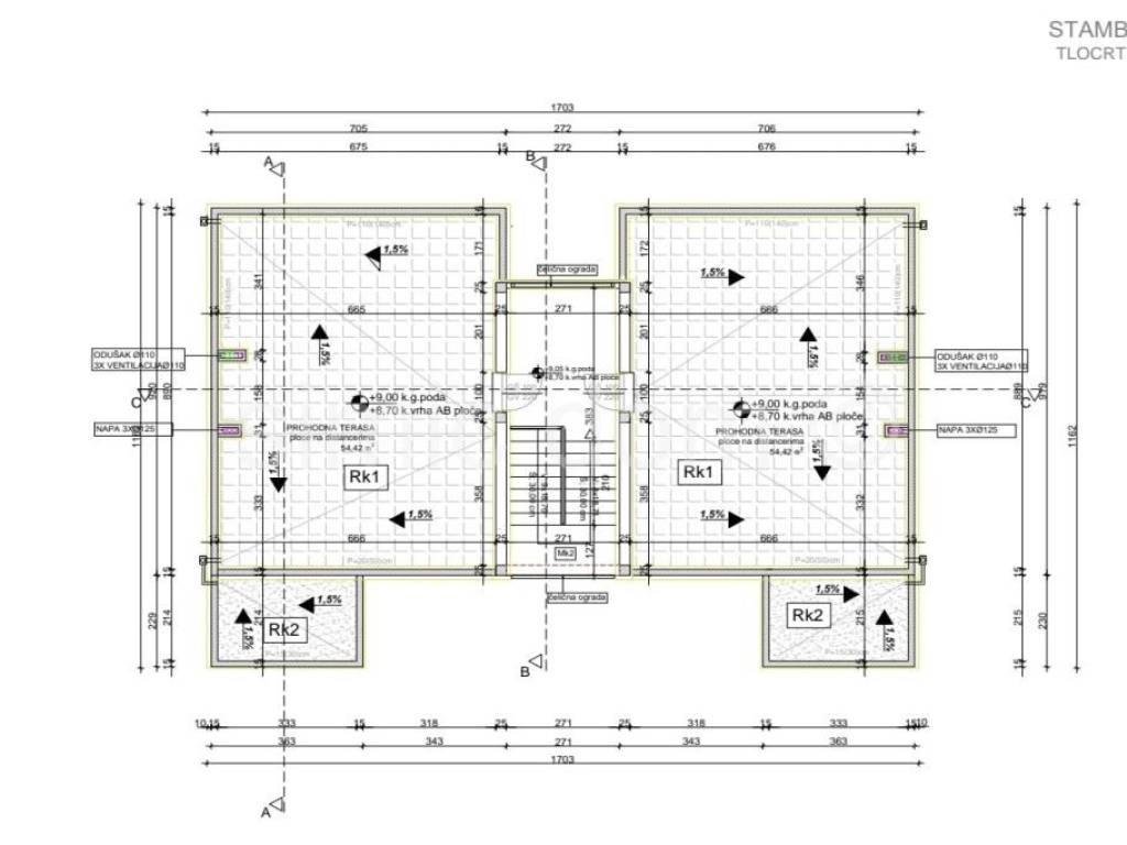 For sale is a new apartment located in a smaller building near Trogir, in the Plano area. Apartment S6 is located on the second floor and has a total internal area of 53.25 m2 and an additional 54 m2 of roof terrace, and two outdoor parking spaces are included in the price. With all accessories included, the apartment has a total net area of 76.25 m2. It consists of a hallway, two bedrooms, a bathroom, and a kitchen with a dining room and living room that opens onto a terrace, and a roof terrace with panoramic views. The apartments will be well equipped: underfloor heating will be installed throughout the apartment, external and internal insulation, mosquito nets, electric shutters, an air conditioning system, with the buyer being able to participate in the selection of ceramics and bathroom equipment. The planned completion of the building is spring 2027. The location of the building is excellent, in a quiet street, while the nearest amenities such as shops, cafes and pharmacies are only a 2-minute walk away, and the center of Trogir is about 4.5 km away.