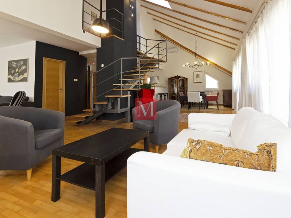 Beautiful 2-bedroom duplex apartment on a quiet location, located in greenery near British Square. It consists of an entrance area, open space kitchen with dining room and living room, 2 bedrooms, wardrobe, laundry room and 3 bathrooms. The apartment also comes with 1 parking space in the yard. The apartment is rented fully furnished, long-term and with a mandatory deposit. Agency fee: 1 month rent + VAT.