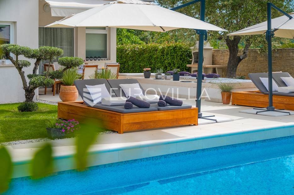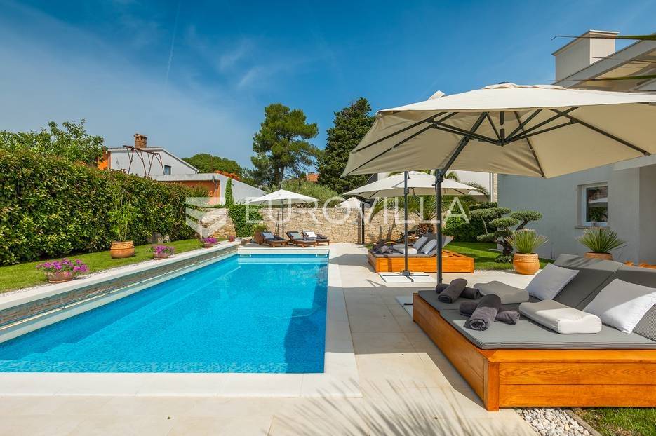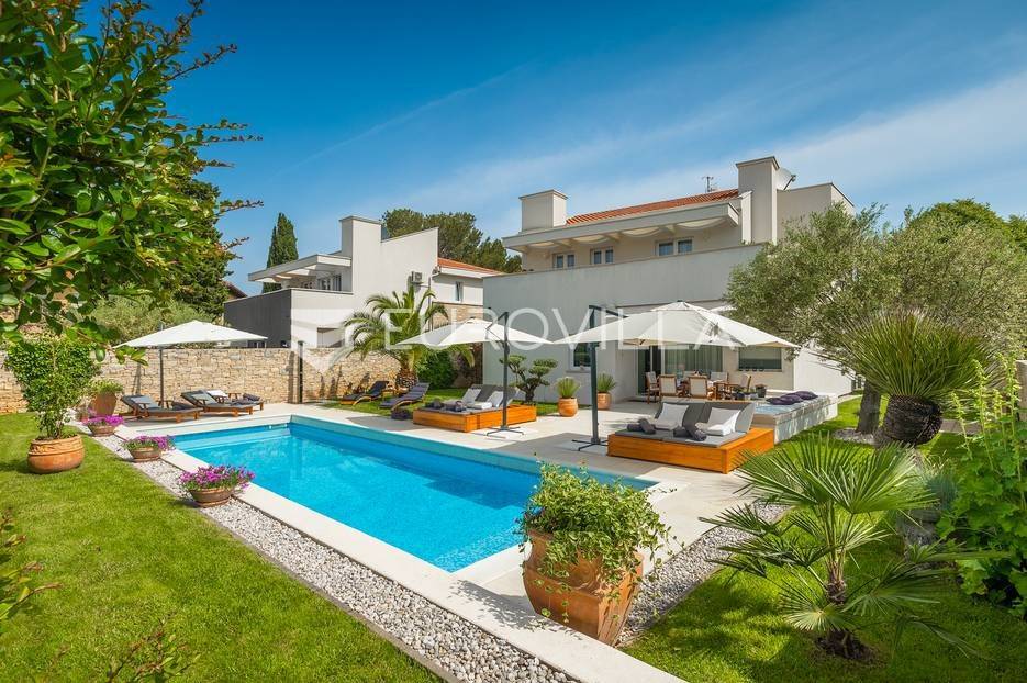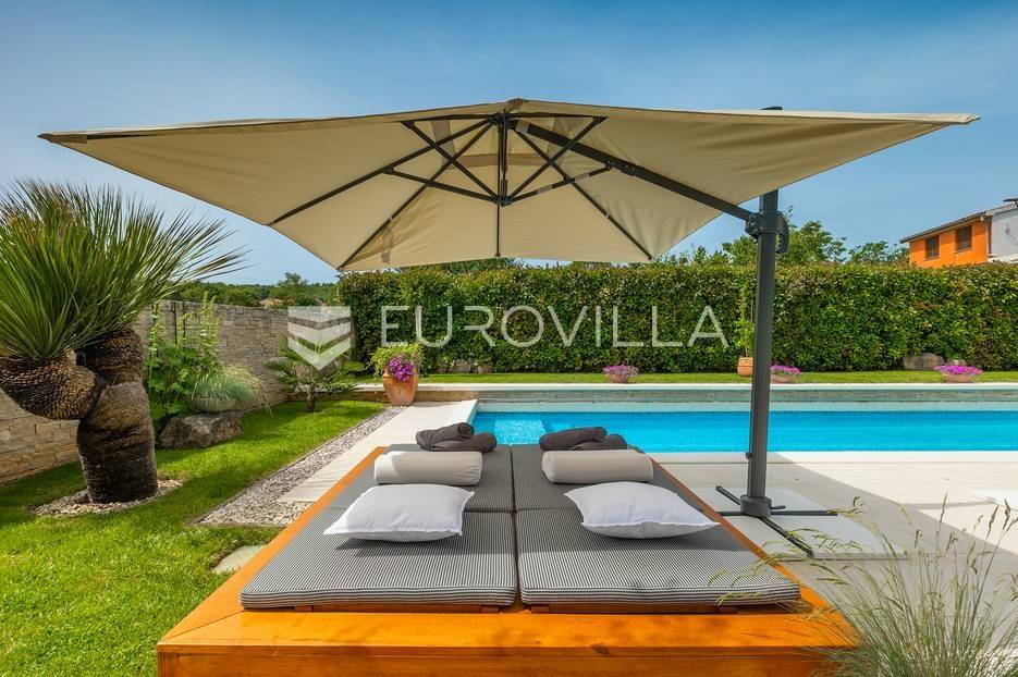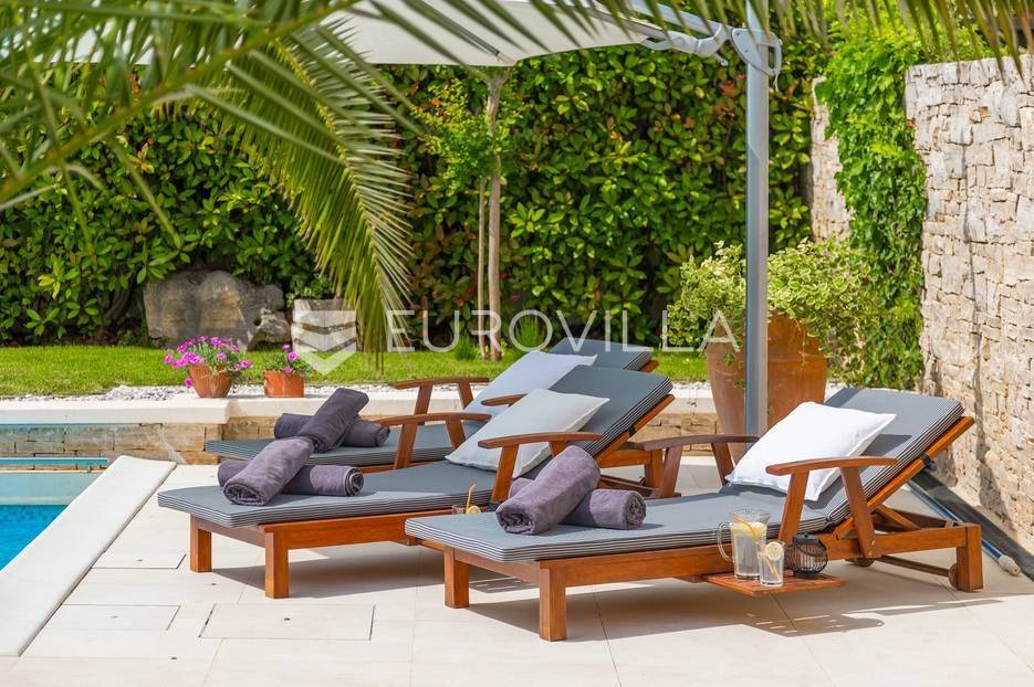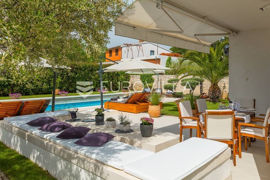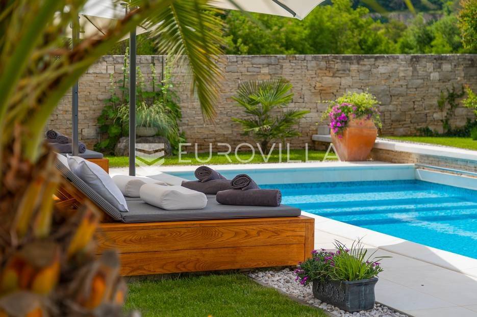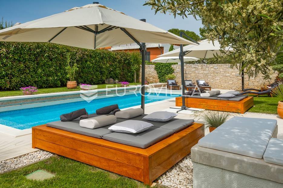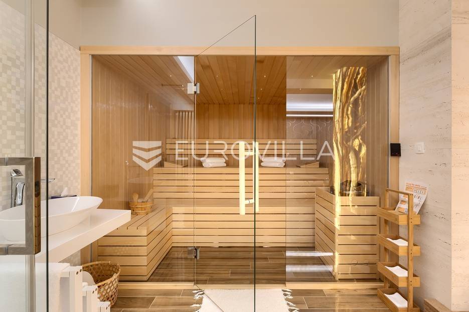 Na prodaji je prekrasna samostojeća villa u Rovinjskom selu koja se prostire na neto 224 m2 bez uključenja površina terasa na okućnici od 667 m2. Proteže se na tri etaže, suteren, prizemlje te prvi kat.U suterenu ville nalazi se prostrani wellness sa saunom i relax zonom. Wellness je ukrašen oniksom koji potiče regeneraciju.Prizemlje ville se sastoji od ulaznog hodnika, wc-a za goste/vešeraj, open space kuhinja s blagovaonom te šankom i dnevnim boravkom, spavaća soba s vlastitom kupaonom, terasa te izlaz na drugu terasu s koje se pristupa na bazen od 48 m2. Uz bazen je uređeno i sunčalište i vanjski tuš. Vrt je uređen, održavan te sustavom za navodnjavanje. U vrtu se također nalazi i roštilj.Na prvom katu se nalaze dvije spavaće sobe s vlastitim kupaonicama te prostrana terasa koja objedinjuje sobe.Grijanje ville je podno električno, klimatizirana je također. Prodaje se u namještenom stanju. Električne roletne. Kompletan sistem ozvučenja ville. Privatan parking za 2 automobila te video nadzor.Villa je u vlasništvu firme što je dodatni benefit budućem kupcu. Koristi se u turističke svrhe, ima 5* te je popunjena kroz cijelu turističku sezonu, a može se zbog svojih karakteristika iznajmljivati kroz cijelu godinu.Za više dodatnih informacija Vam stojimo na raspolaganju.... Više na eurovilla.hr, ID: 805994