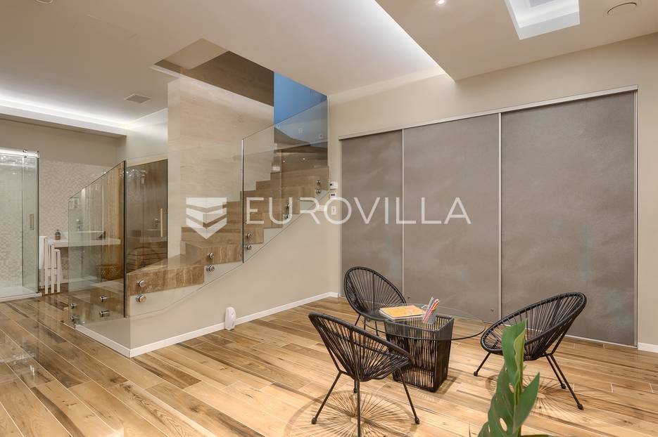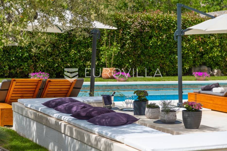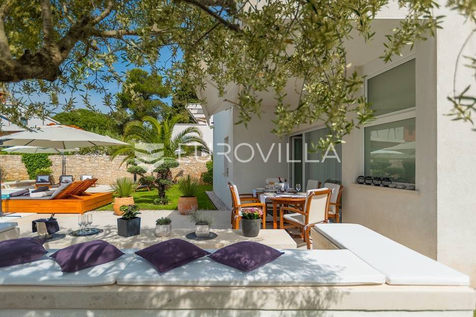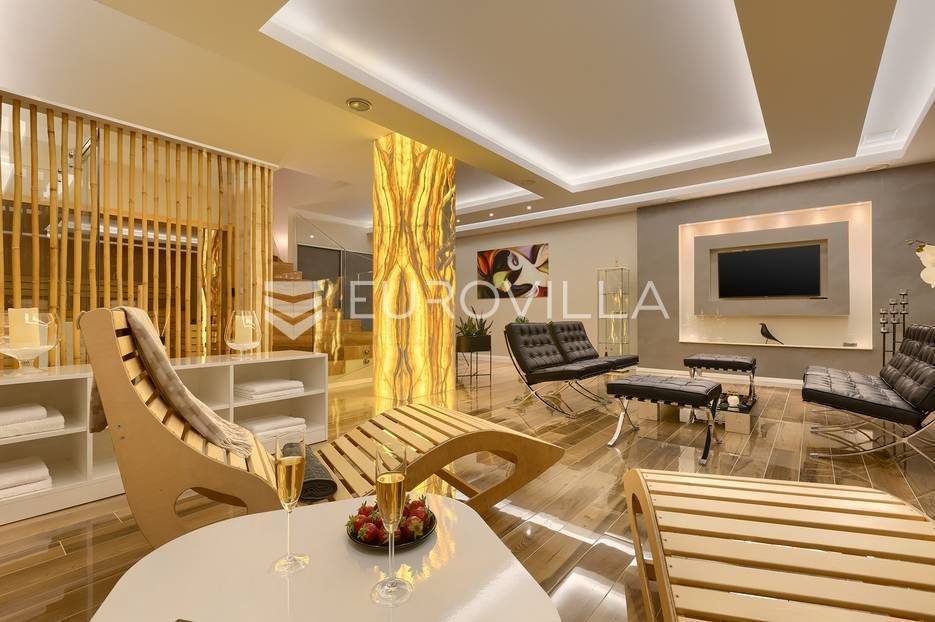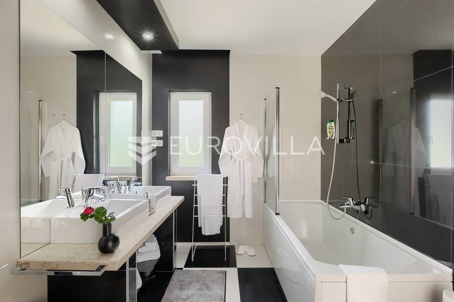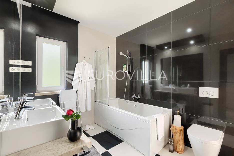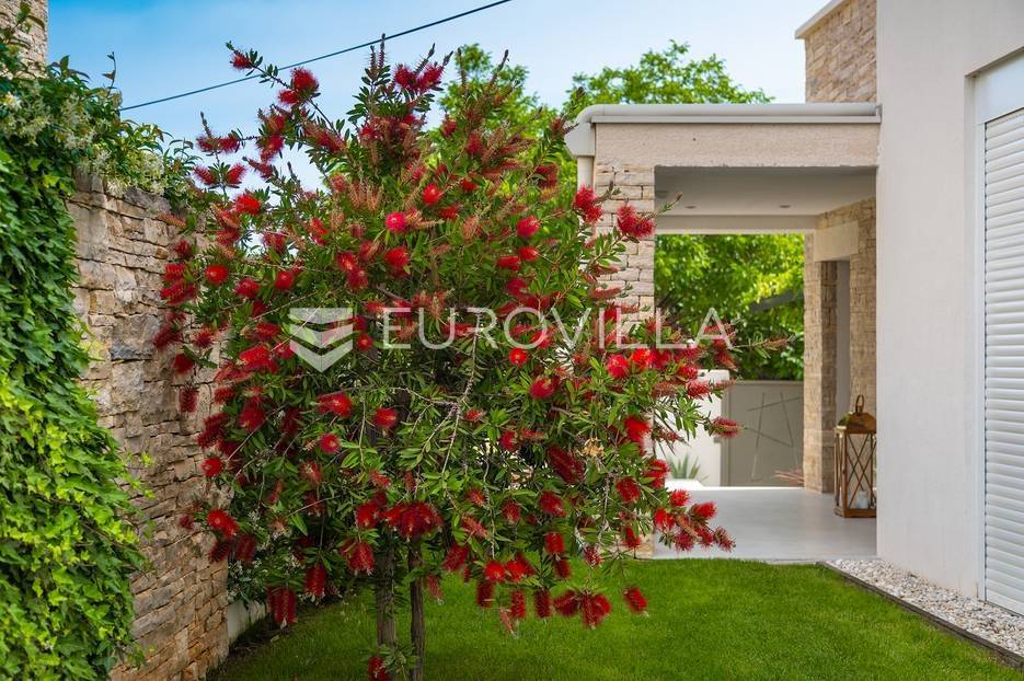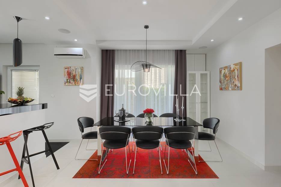 Na prodaji je prekrasna samostojeća villa u Rovinjskom selu koja se prostire na neto 224 m2 bez uključenja površina terasa na okućnici od 667 m2. Proteže se na tri etaže, suteren, prizemlje te prvi kat.U suterenu ville nalazi se prostrani wellness sa saunom i relax zonom. Wellness je ukrašen oniksom koji potiče regeneraciju.Prizemlje ville se sastoji od ulaznog hodnika, wc-a za goste/vešeraj, open space kuhinja s blagovaonom te šankom i dnevnim boravkom, spavaća soba s vlastitom kupaonom, terasa te izlaz na drugu terasu s koje se pristupa na bazen od 48 m2. Uz bazen je uređeno i sunčalište i vanjski tuš. Vrt je uređen, održavan te sustavom za navodnjavanje. U vrtu se također nalazi i roštilj.Na prvom katu se nalaze dvije spavaće sobe s vlastitim kupaonicama te prostrana terasa koja objedinjuje sobe.Grijanje ville je podno električno, klimatizirana je također. Prodaje se u namještenom stanju. Električne roletne. Kompletan sistem ozvučenja ville. Privatan parking za 2 automobila te video nadzor.Villa je u vlasništvu firme što je dodatni benefit budućem kupcu. Koristi se u turističke svrhe, ima 5* te je popunjena kroz cijelu turističku sezonu, a može se zbog svojih karakteristika iznajmljivati kroz cijelu godinu.Za više dodatnih informacija Vam stojimo na raspolaganju.... Više na eurovilla.hr, ID: 805994