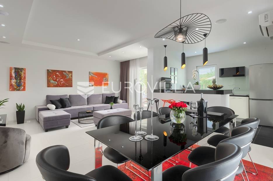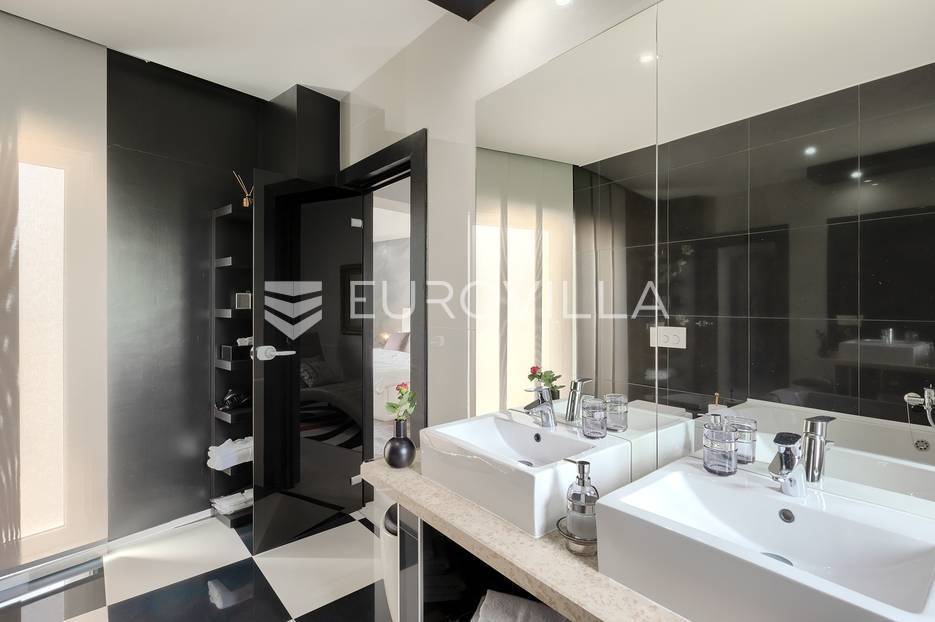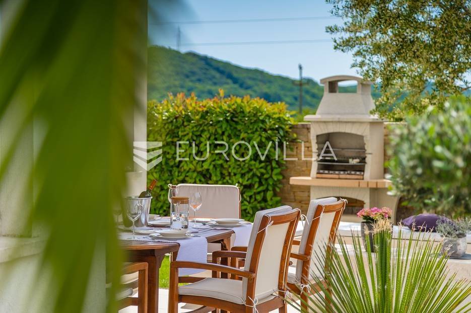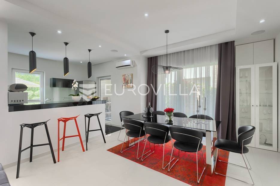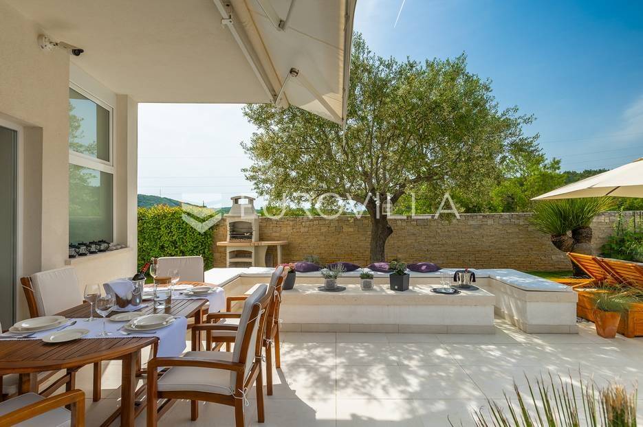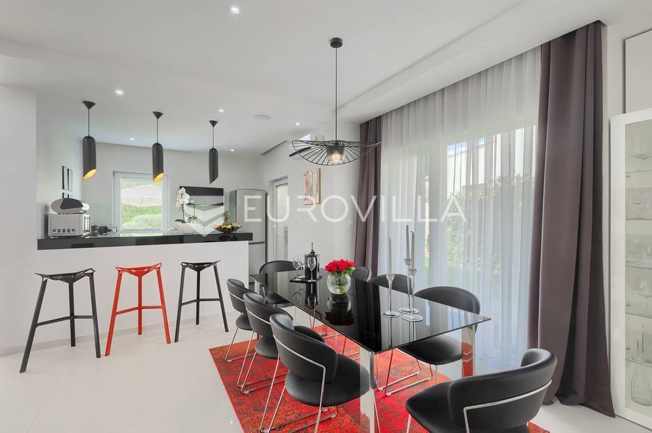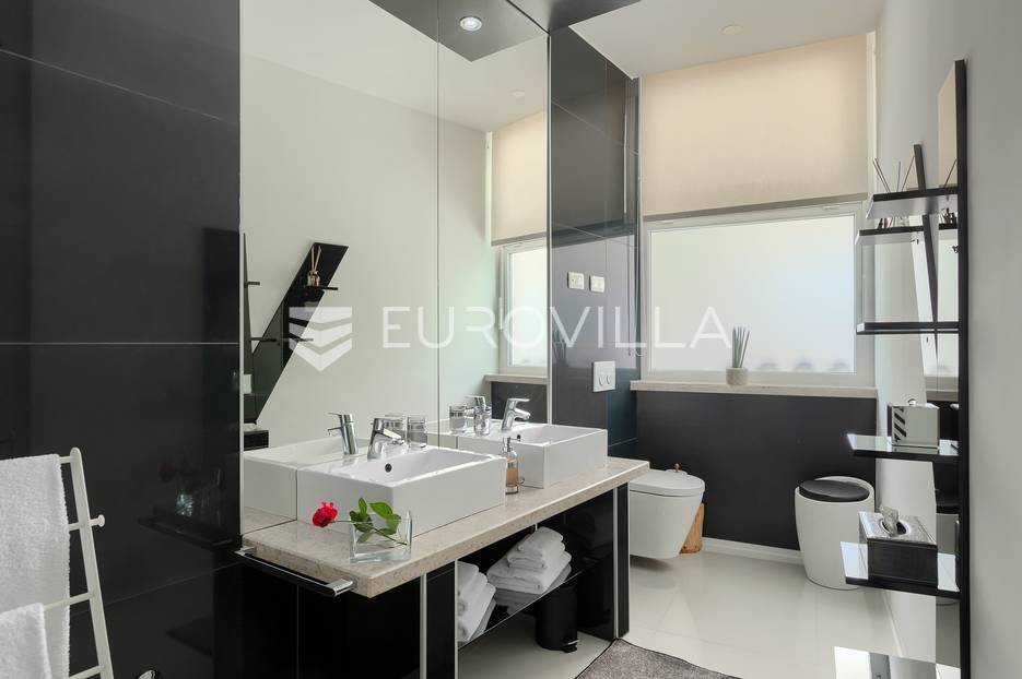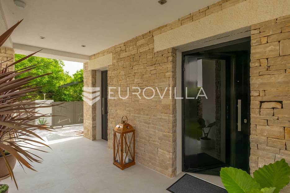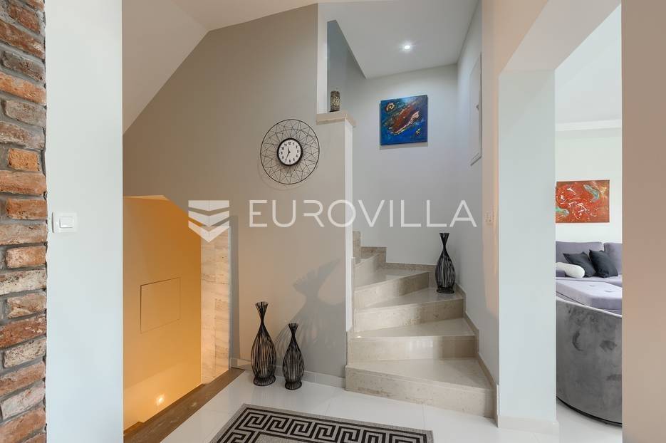 Na prodaji je prekrasna samostojeća villa u Rovinjskom selu koja se prostire na neto 224 m2 bez uključenja površina terasa na okućnici od 667 m2. Proteže se na tri etaže, suteren, prizemlje te prvi kat.U suterenu ville nalazi se prostrani wellness sa saunom i relax zonom. Wellness je ukrašen oniksom koji potiče regeneraciju.Prizemlje ville se sastoji od ulaznog hodnika, wc-a za goste/vešeraj, open space kuhinja s blagovaonom te šankom i dnevnim boravkom, spavaća soba s vlastitom kupaonom, terasa te izlaz na drugu terasu s koje se pristupa na bazen od 48 m2. Uz bazen je uređeno i sunčalište i vanjski tuš. Vrt je uređen, održavan te sustavom za navodnjavanje. U vrtu se također nalazi i roštilj.Na prvom katu se nalaze dvije spavaće sobe s vlastitim kupaonicama te prostrana terasa koja objedinjuje sobe.Grijanje ville je podno električno, klimatizirana je također. Prodaje se u namještenom stanju. Električne roletne. Kompletan sistem ozvučenja ville. Privatan parking za 2 automobila te video nadzor.Villa je u vlasništvu firme što je dodatni benefit budućem kupcu. Koristi se u turističke svrhe, ima 5* te je popunjena kroz cijelu turističku sezonu, a može se zbog svojih karakteristika iznajmljivati kroz cijelu godinu.Za više dodatnih informacija Vam stojimo na raspolaganju.... Više na eurovilla.hr, ID: 805994