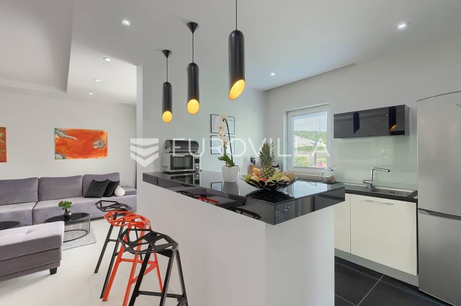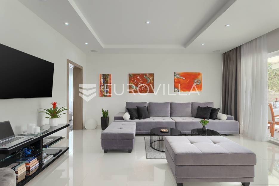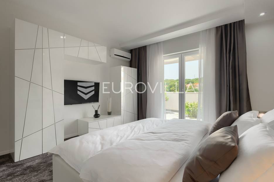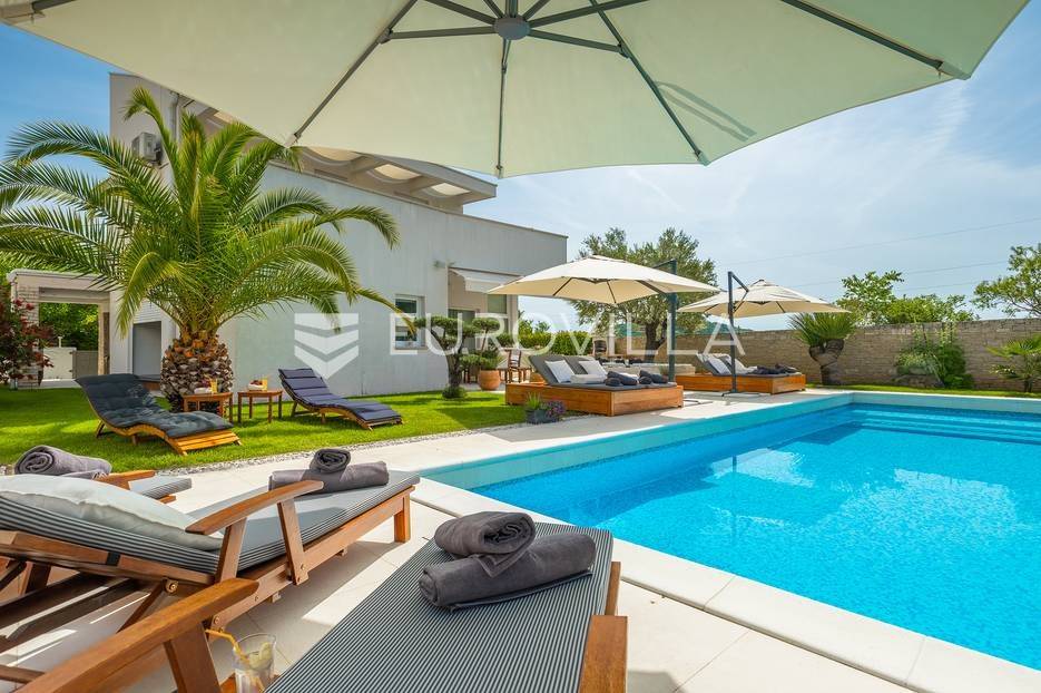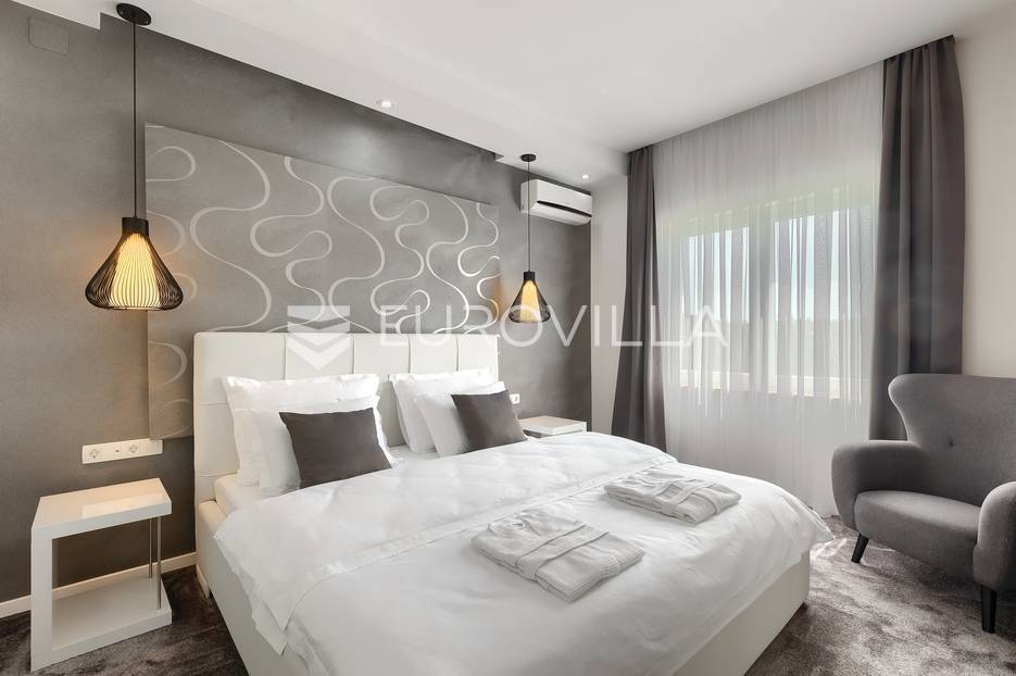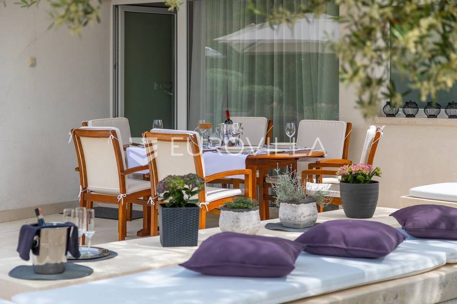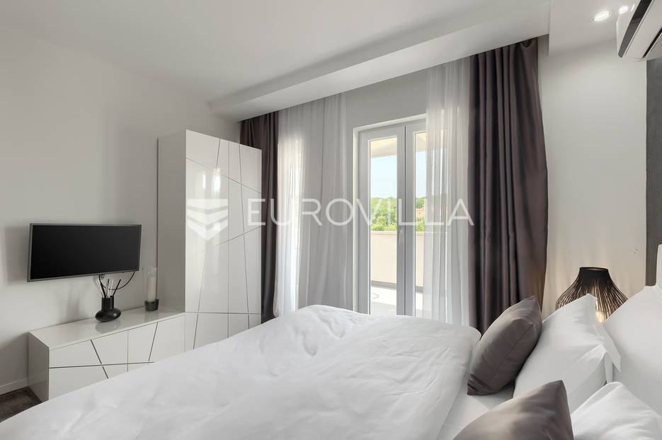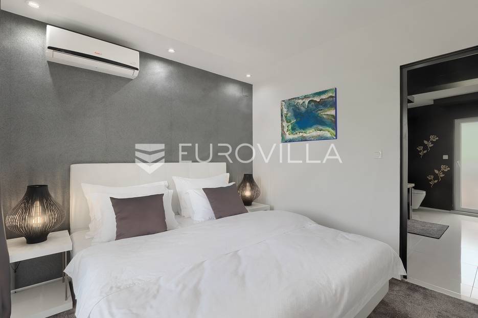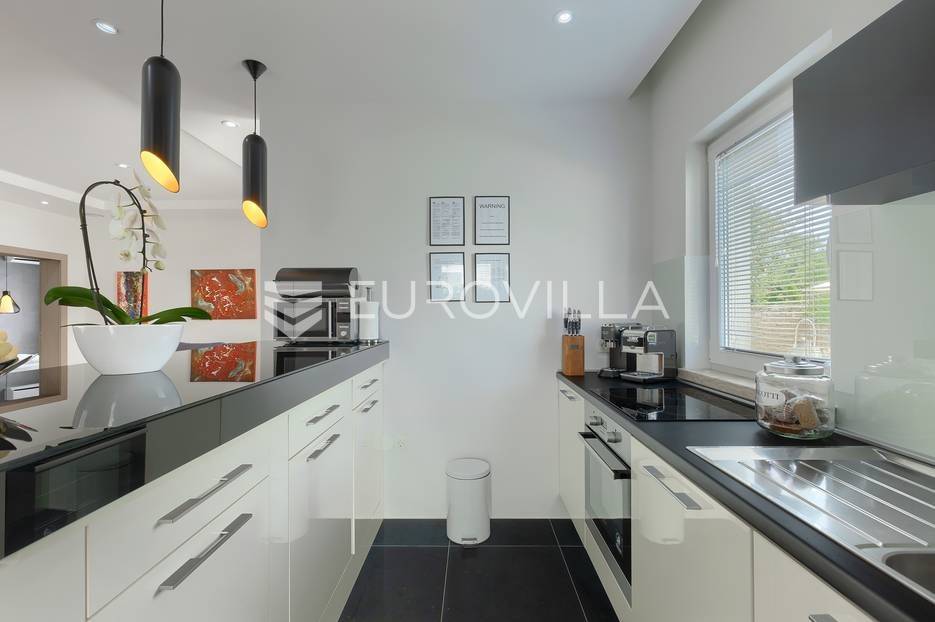 Na prodaji je prekrasna samostojeća villa u Rovinjskom selu koja se prostire na neto 224 m2 bez uključenja površina terasa na okućnici od 667 m2. Proteže se na tri etaže, suteren, prizemlje te prvi kat.U suterenu ville nalazi se prostrani wellness sa saunom i relax zonom. Wellness je ukrašen oniksom koji potiče regeneraciju.Prizemlje ville se sastoji od ulaznog hodnika, wc-a za goste/vešeraj, open space kuhinja s blagovaonom te šankom i dnevnim boravkom, spavaća soba s vlastitom kupaonom, terasa te izlaz na drugu terasu s koje se pristupa na bazen od 48 m2. Uz bazen je uređeno i sunčalište i vanjski tuš. Vrt je uređen, održavan te sustavom za navodnjavanje. U vrtu se također nalazi i roštilj.Na prvom katu se nalaze dvije spavaće sobe s vlastitim kupaonicama te prostrana terasa koja objedinjuje sobe.Grijanje ville je podno električno, klimatizirana je također. Prodaje se u namještenom stanju. Električne roletne. Kompletan sistem ozvučenja ville. Privatan parking za 2 automobila te video nadzor.Villa je u vlasništvu firme što je dodatni benefit budućem kupcu. Koristi se u turističke svrhe, ima 5* te je popunjena kroz cijelu turističku sezonu, a može se zbog svojih karakteristika iznajmljivati kroz cijelu godinu.Za više dodatnih informacija Vam stojimo na raspolaganju.... Više na eurovilla.hr, ID: 805994