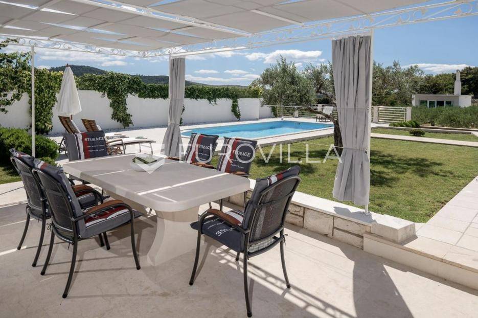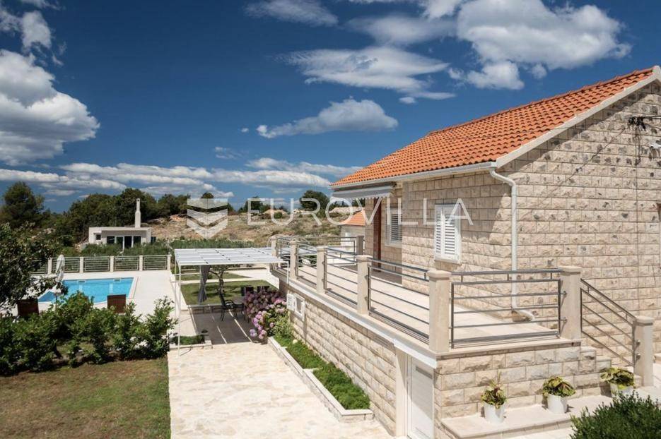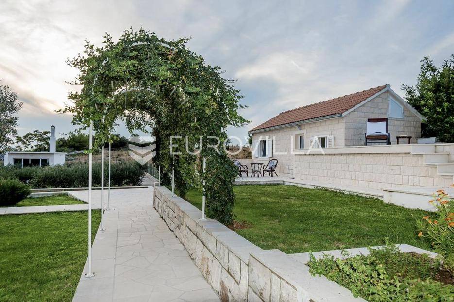 Otok Brač, Donji Humac, izrazito mirna lokacija okružena zelenilom, udaljena od mora 8km, odnosno mjesta Supetar.Na zemljištu od 1780m2 nalaze se tri objekta:Prva kuća nudi prostranu atmosferu s velikim dnevnim boravkom, blagovaonicom i kuhinjom. Na katu se nalaze dvije sobe i dvije kupaonice, pružajući privatnost i udobnost. Ova kuća je idealna za obiteljski život.Druga kuća predstavlja praktičan apartman s kuhinjom, blagovaonicom, dnevnim boravkom, kupaonicom i krevetom. Ovaj apartman može poslužiti kao samostalna garsonjera, savršena za goste ili članove obitelji koji žele vlastiti prostor.Treći objekt, zatvorena ljetna kuhinja, omogućuje uživanje u prirodi i svježem zraku tijekom toplijih mjeseci.Nekretnini također pripada i bazen s prostorom za sunčanje i blagovanje koje pridonosi cjelokupnom doživljaju. Ovo je savršeno mjesto za opuštanje, uživanje u suncu i osvježenju tijekom toplih ljetnih dana.Za sve dodatne informacije stojim Vam na raspolaganju... Više na eurovilla.hr, ID: 809985