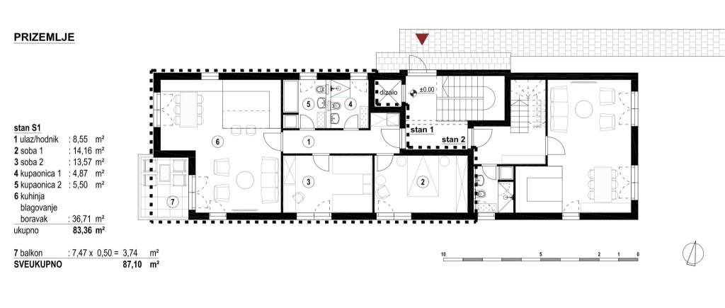 Zagreb, Srebrnjak, luksuzan trosoban stan (S1) smješten u prizemlju ekskluzivne novogradnje na idealnoj lokaciji.Sastoji se od ulaznog hodnika, prostranog dnevnog boravka s kuhinjom, blagovaonicom te izlazom na balkon, dvije spavaće sobe i dvije kupaonice ukupne površine 87,10 m2. Uz stan je uključeno jedno garažno parkirno mjesto (13.50 m2), jedno vanjsko parkirno mjesto (13,5 m2) te spremište (6,82 m2) koji su u cijeni.S obzirom da je početak gradnje predviđen za ljeto 2026.godine moguće su manje izmjene u tlocrtu.Luksuzna novogradnja s vrhunskom opremom (armirano betonska konstrukcija, ploča mineralne vune minimalne debljine 15 cm, troslojna stakla, alu stolarija, hrastov parket 1.klase po izboru, sanitarije 1.klase, dizalo). Sustav grijanja je putem dizalice topline, podno grijanje te klima uređaj u svakoj prostoriji.Planirano useljenje 09/2027Za dodatna pitanja stojimo na raspolaganju.... Više na eurovilla.hr, ID: 853122