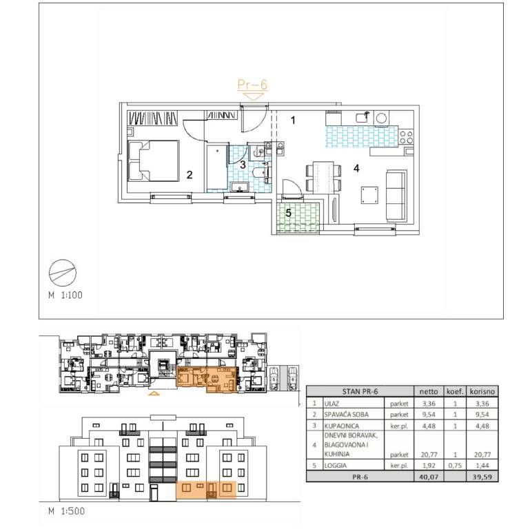 Dvosoban stan površine 39,59 m2 smješten u prizemlju.Stan PR-6 sastoji se od ulaza, 1 spavaće sobe, kupaonice, dnevnog boravka, kuhinje s blagovaonicom te loggije.Projekt moderne stambene gradnje koji obuhvaća 22 stambene jedinice raspoređene u funkcionalno organiziranoj građevini, uz 36 garažnih mjesta u podzemnoj etaži i dodatnih 8 vanjskih parkirnih mjesta na razini terena. Kolni i pješački pristup omogućen je izravno s javne prometne površine na južnoj strani parcele, a promet u mirovanju riješen je u skladu s važećim urbanističkim planom, čime je osigurana jednostavna dostupnost i kvalitetna organizacija prostora.Uz kupnju stana obavezna je kupnja garažnog parkirnog mjesta te vanjskog parkirnog mjesta.Građevina je projektirana kao armiranobetonska konstrukcija, s nosivim zidovima i gredama međusobno povezanim u cjelovit sustav te punim armiranobetonskim stropnim i ravnim krovnim pločama. Vertikalne elemente čine armiranobetonski zidovi debljine 20 cm kroz sve etaže, dok horizontalni sustav čine armiranobetonske ploče iste debljine. Takav konstruktivni koncept osigurava stabilnost, trajnost i sigurnost objekta.Pročelje će biti izvedeno u ETICS sustavu s toplinskom izolacijom od EPS-a i mineralne vune debljine 15 cm, ovisno o poziciji i zahtjevima zaštite od požara, uz završnu obradu u boji i teksturi prema projektu. Vanjska stolarija predviđena je kao PVC, uz električno upravljane rolete, čime se dodatno doprinosi energetskoj učinkovitosti i komforu stanovanja. Ravni krov projektiran je kao neprohodan, s tehničkim slojevima definiranim elaboratom fizike zgrade.Unutarnji prostori osmišljeni su s naglaskom na funkcionalnost i dugotrajnost materijala. Sustav grijanja izveden je kao plinsko etažno podno grijanje, koje omogućuje ravnomjernu raspodjelu topline i optimalnu iskoristivost prostora bez radijatora. Za hlađenje su predviđeni klima uređaji proizvođača Bosch.Podovi se izvode kao plivajući sustav s toplinskom i zvučnom izolacijom te cementnim estrihom. U dnevnim boravcima, blagovaonicama, hodnicima i spavaćim sobama predviđen je troslojni hrastov parket, dok su u sanitarnim prostorima, kuhinjama i na vanjskim površinama planirane keramičke pločice. Kupcima će biti ponuđene tri varijante keramike u vrijednosti do 35 EUR/m², a sav dodatni odabir i eventualne izmjene moguće su putem tvrtke F.I.C. d.o.o., koja osigurava salonski odabir materijala i ugradnju.Unutarnja sobna vrata predviđena su od proizvođača RV Križevci, dok su ulazna vrata u stanove protuprovalna vrata proizvođača Kolnoa, opremljena sustavom zaključavanja Mul-T-Lock, čime je osigurana viša razina sigurnosti.Ovaj projekt u Velikoj Gorici predstavlja priliku za kupnju stana u novogradnji koja objedinjuje provjerenu konstrukcijsku kvalitetu, suvremene sustave grijanja i hlađenja te mogućnost prilagodbe završnih materijala prema željama kupca, u urbanoj zoni s dobrom prometnom povezanošću i razvijenom infrastrukturom.Useljenje: 05/2027... Više na eurovilla.hr, ID: 837443