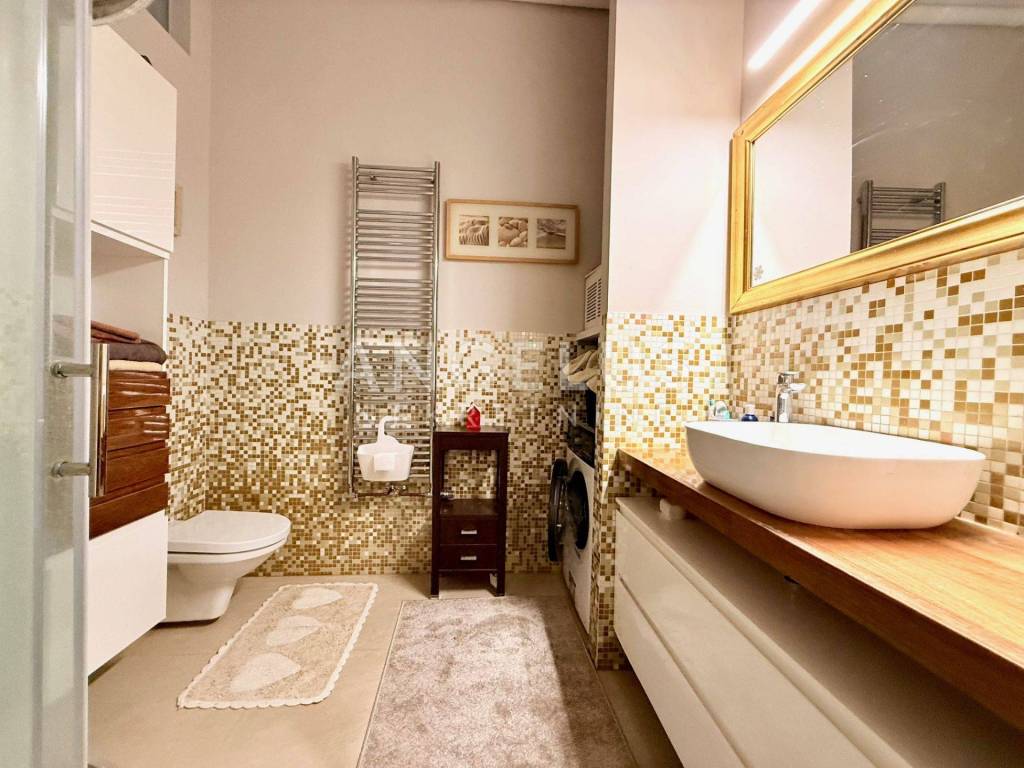 The apartment is located on the 1st floor of a building without the elevator, and consists of: entrance hall, 2 bedrooms (one with a wardrobe), living room, bathroom, kitchen and dining area. Gas central heating, air conditioning, underfloor heating in the bathroom, hall and kitchen. Exterior PVC joinery.