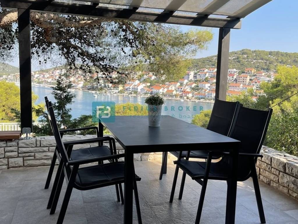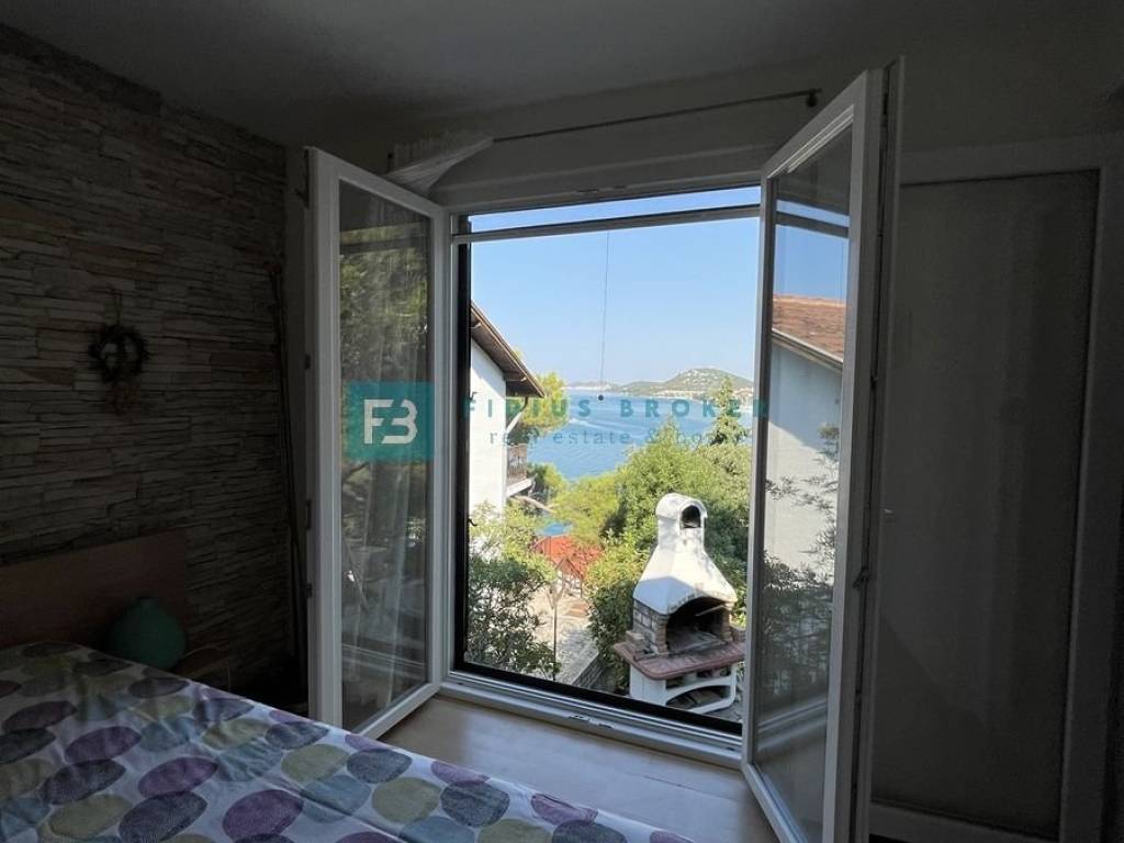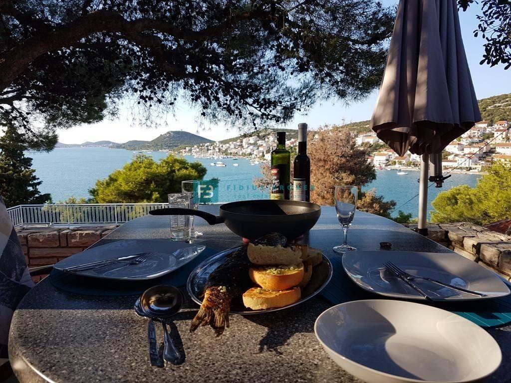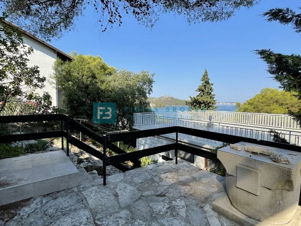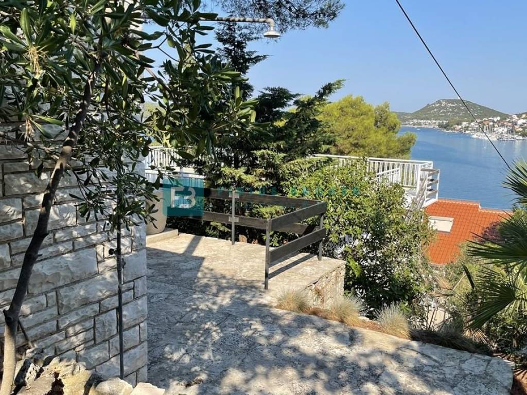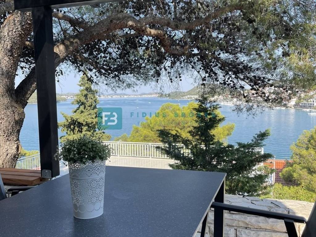 TISNO - For sale a unique house in an exceptional location in Tisno, situated on a quiet hill surrounded by pine forests and Mediterranean greenery. This special property delights with a beautiful, open view of the bay and the town of Tisno, providing a complete sense of privacy and a relaxing atmosphere.