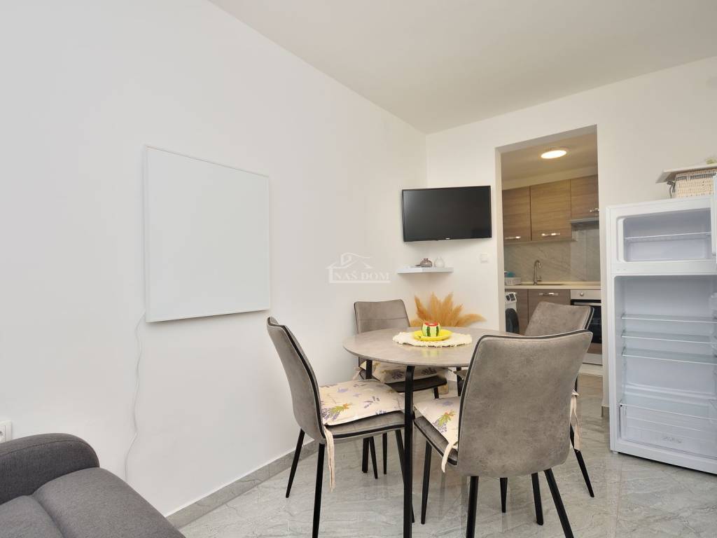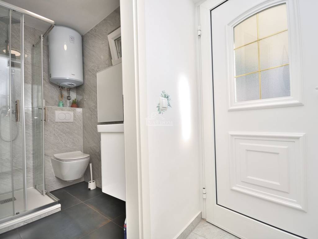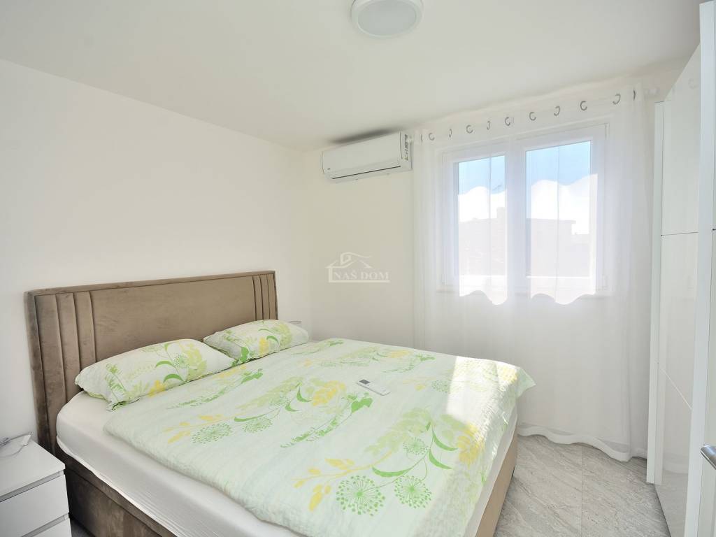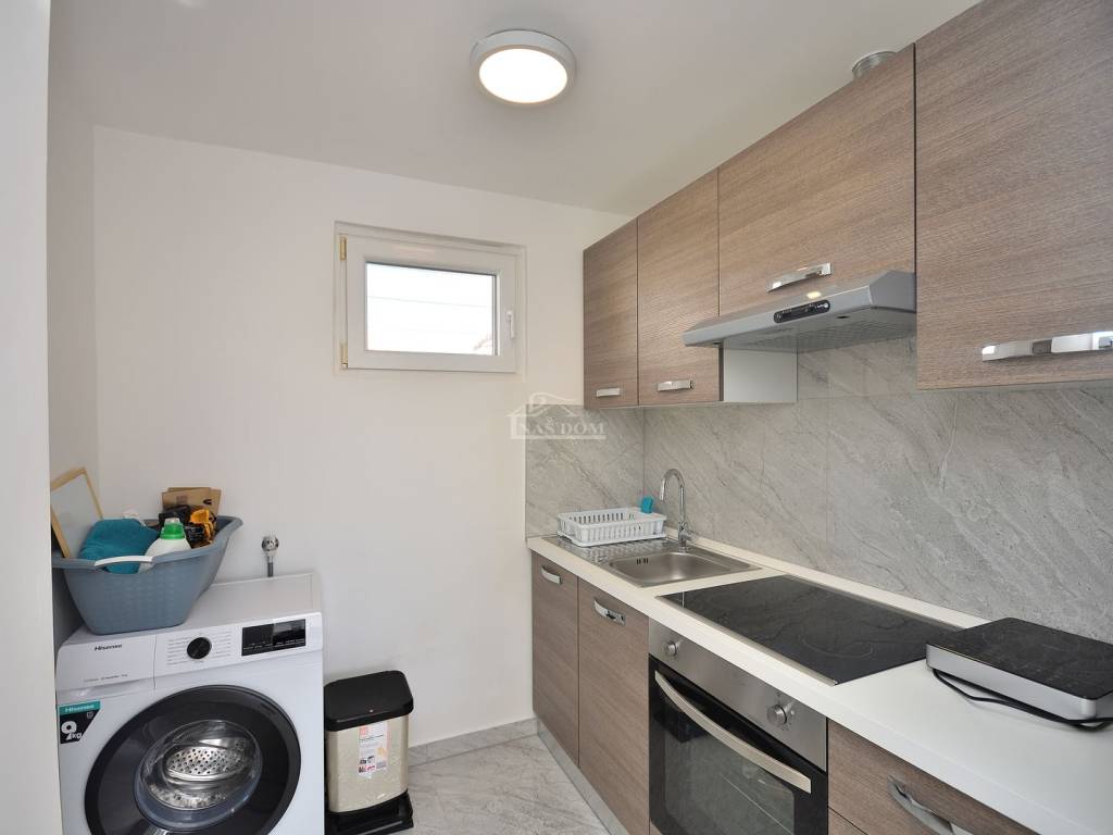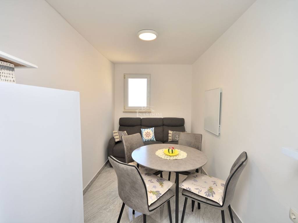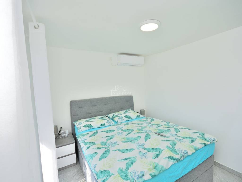 Stan se prodaje potpuno namješten novim namještajem i opremljen. Kuća se nalazi u slijepoj ulici, što osigurava mir i privatnost, udaljen od najbliže plaže 150m a od centra mjesta 1500 m.