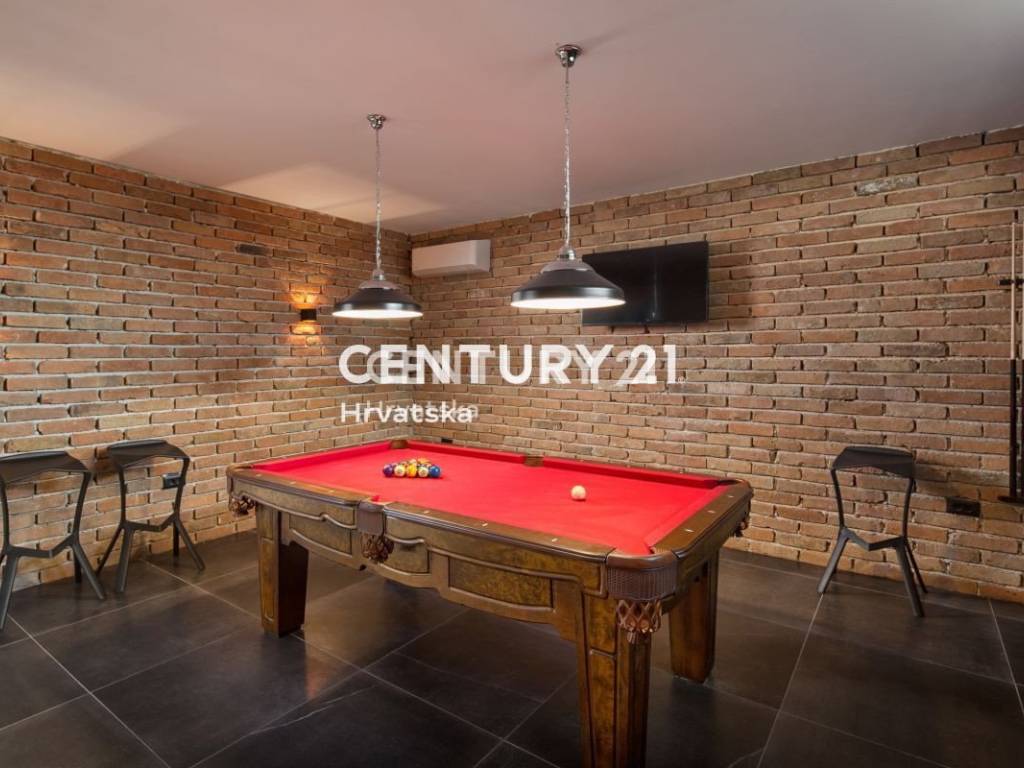 It features a large swimming pool, a billiard and social room, a jacuzzi, and a home cinema room.