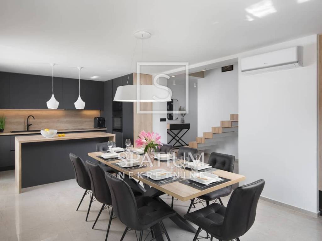 In close proximity is the picturesque old town of Labin, known for its rich history, art galleries, and excellent gastronomy, while Rabac with its crystal-clear beaches and seaside promenades is only a few minutes’ drive away. This location offers the perfect balance between peace and privacy while being close to all essential amenities – restaurants, shops, schools, and sports facilities. The combination of green hills and the blue Adriatic Sea creates a unique environment suitable for year-round living and exceptional tourist potential.