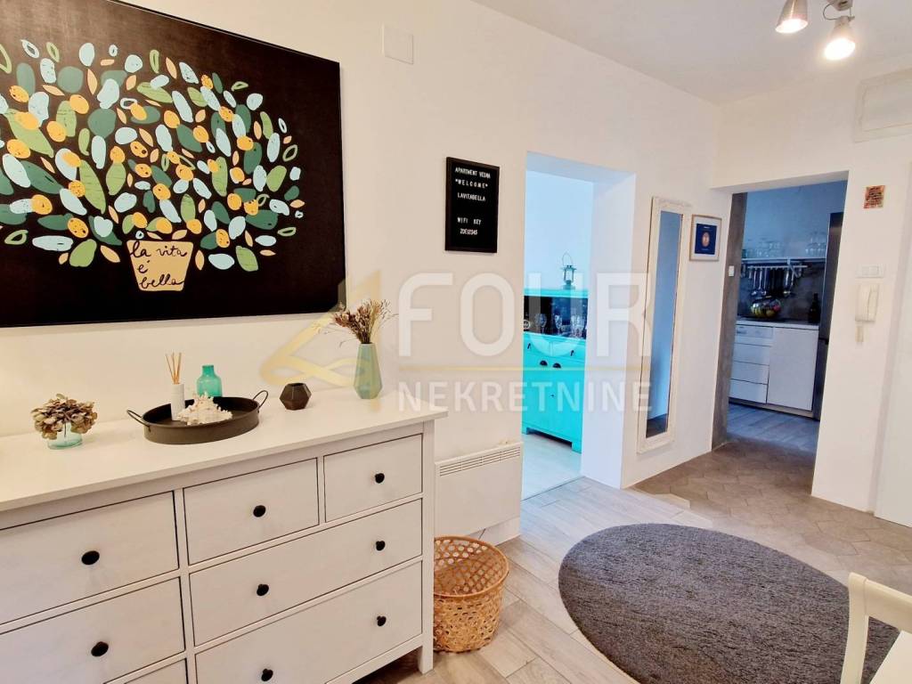 Spacious and fully adapted apartment for sale on the third floor of a well-maintained building in a quiet part of Pula, just a few minutes walk from the city center and approximately 1,500 meters from the sea.