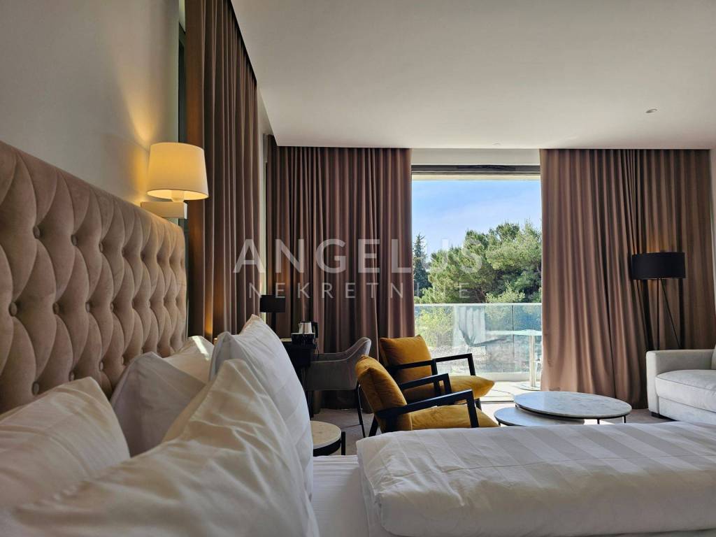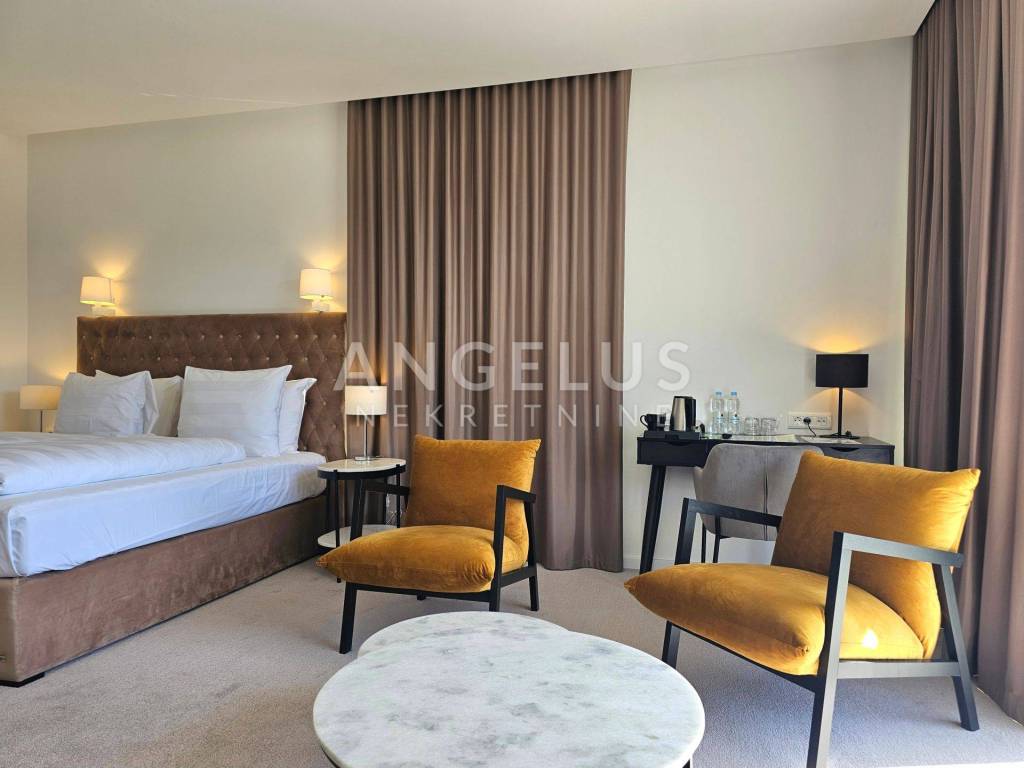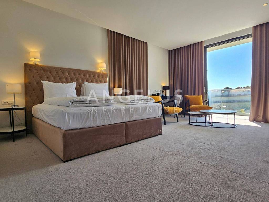 The hotel consists of 9 luxuriously designed and luxurious rooms, a reception, a restaurant, a kitchen, an outdoor terrace and an underground garage. The timeless elegance of the hotel is enhanced by a unique style, where original details evoke the local tradition of charm and the modern concept of hospitality. The spacious rooms are equipped with high-quality natural materials and decorated with carefully selected pieces of top-quality furniture, and remote control of air conditioning, lighting and smart TV is available. The bathrooms in the rooms have underfloor heating, are lined with high-quality ceramics and have electronic temperature regulation. Free wireless internet and a direct-dial telephone ensure fast connection. On the ground floor of the hotel there is a Lobby that covers 100 m2, equipped with seating furniture and tables for serving breakfast, lunch and dinner. The Lobby is completely glazed, offering a beautiful view of the outdoor terrace, where the swimming pool is located. The warm and relaxing atmosphere of the restaurant on the outdoor terrace is open to all gastronomy lovers, offering a unique gastronomic experience of enjoying Mediterranean dishes and local wines and represents a great added value of the hotel in terms of multiplying income.