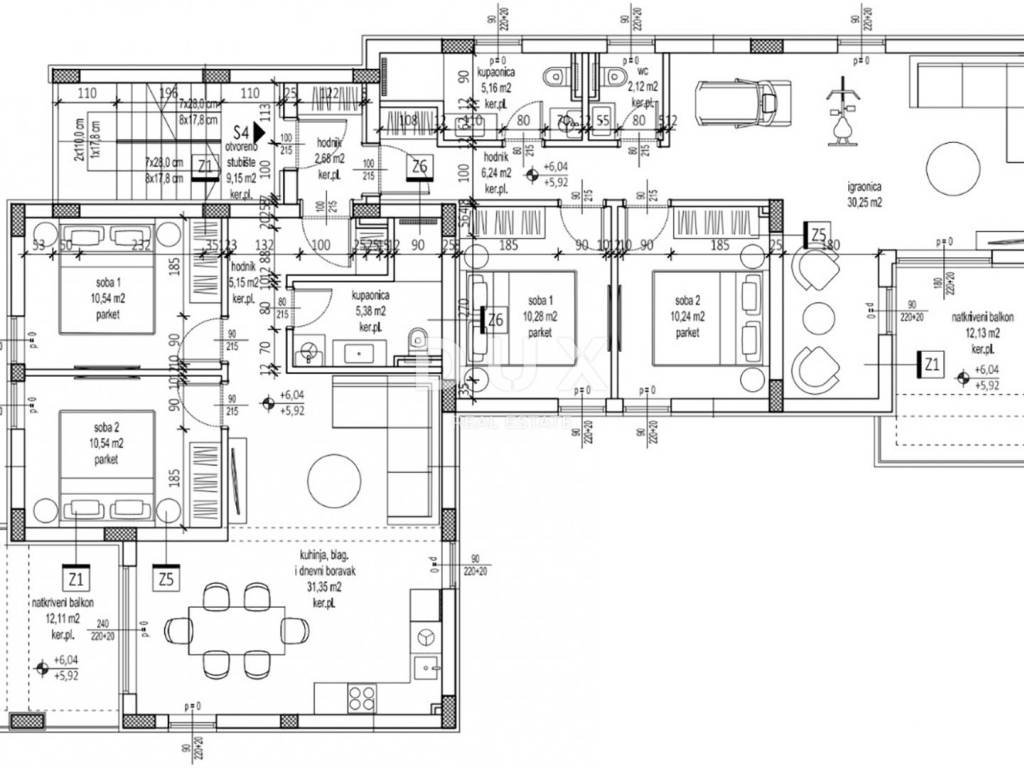 For sale are 4 top-quality apartments, each with 2 parking spaces, one of which is covered.