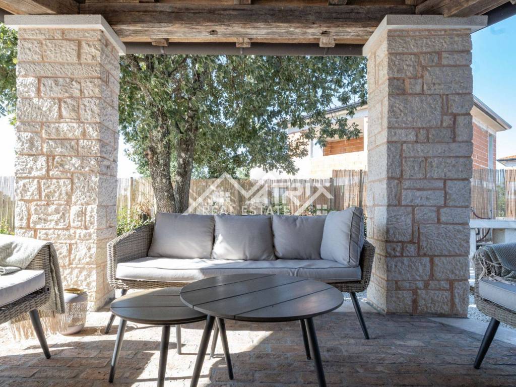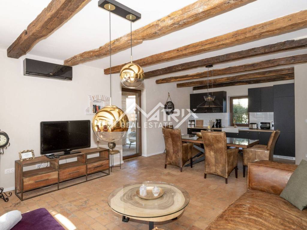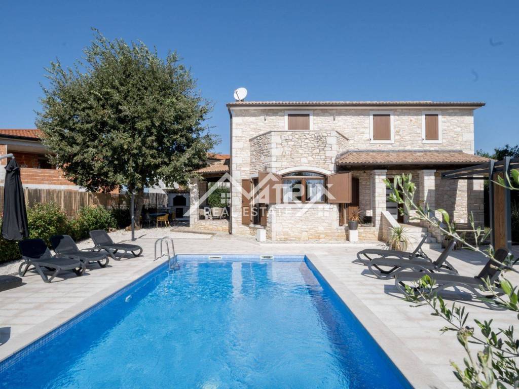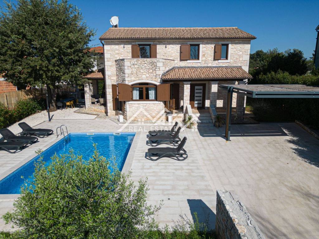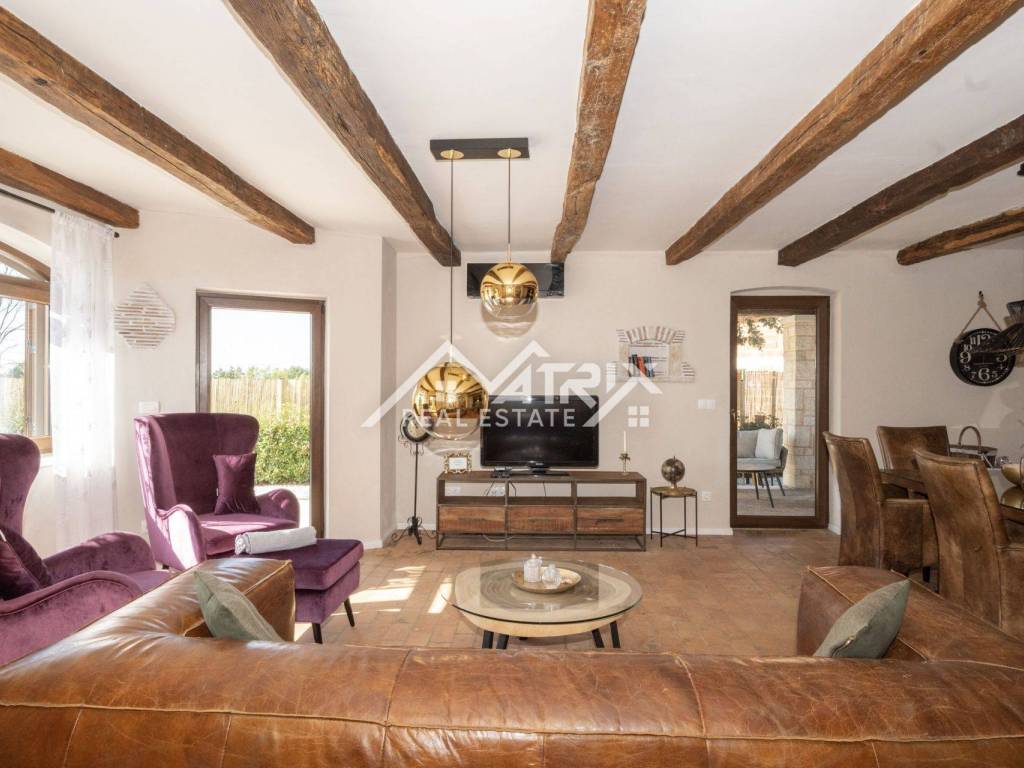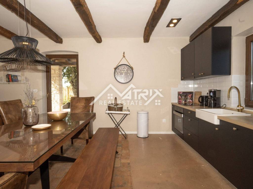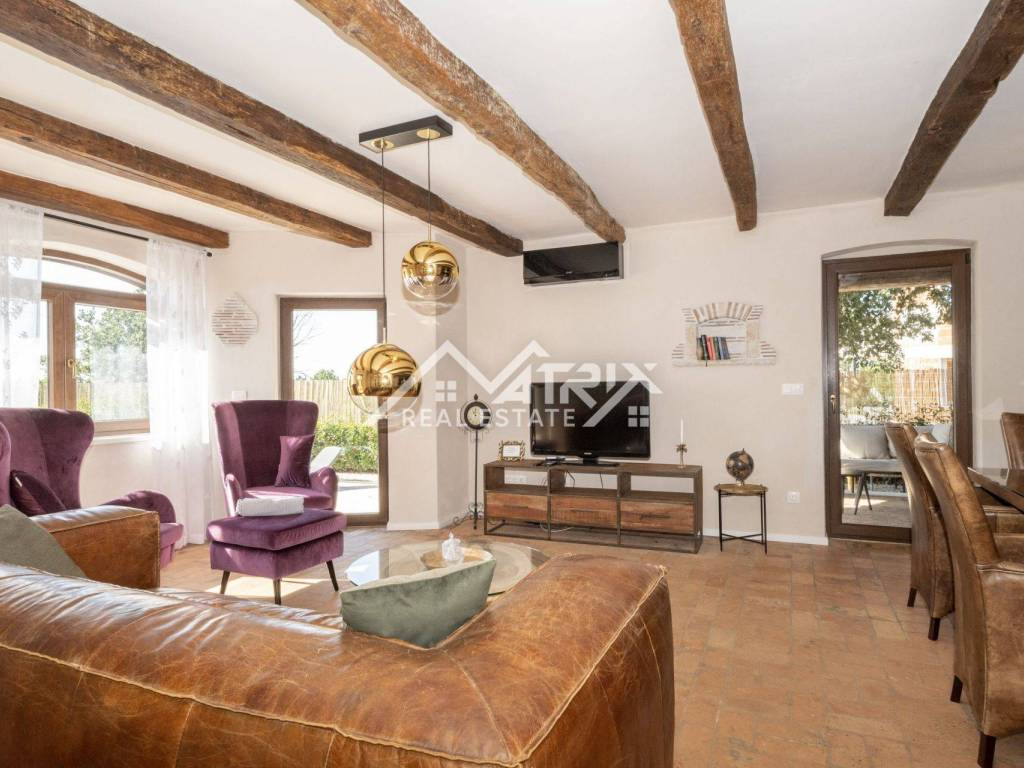 This charming stone villa is for sale. Located in a quiet settlement not far from a small Istrian town, only 12 km from the sea and 15 minutes from the city of Poreč.