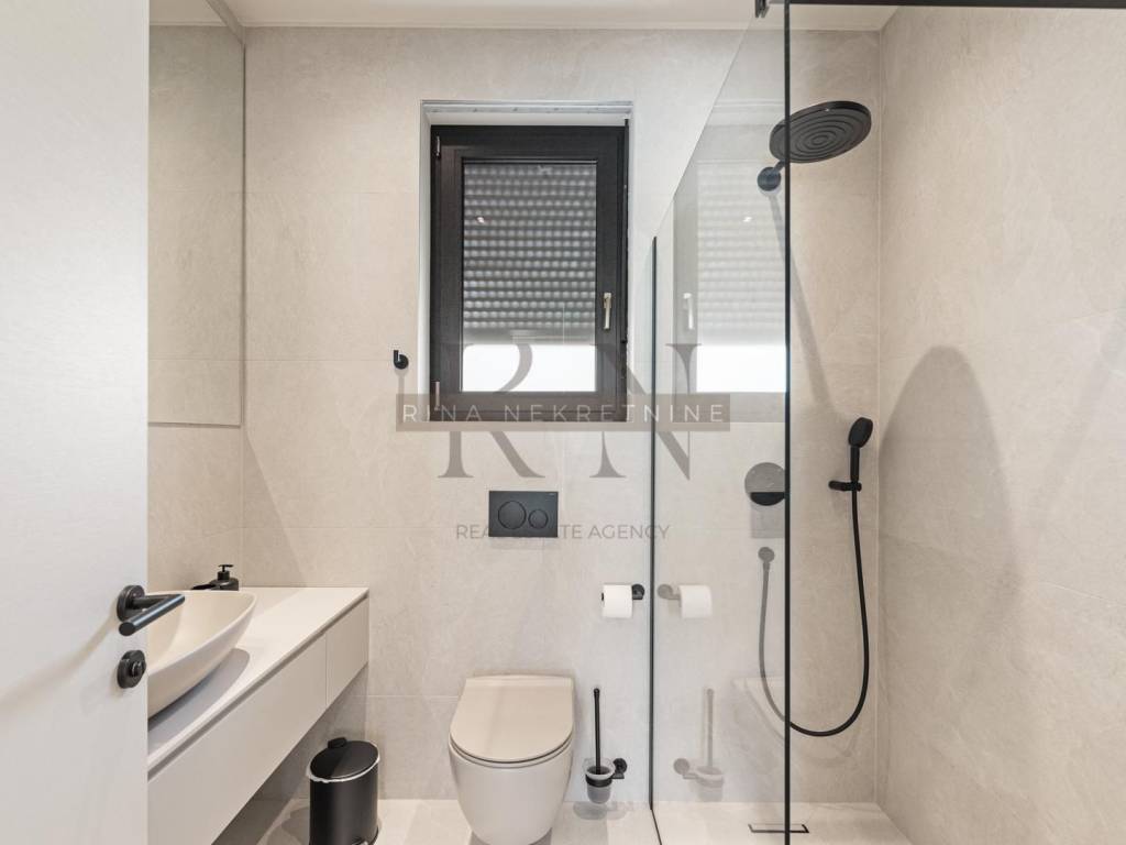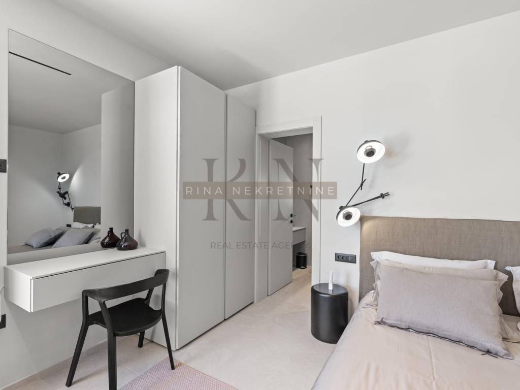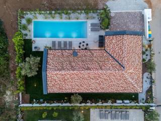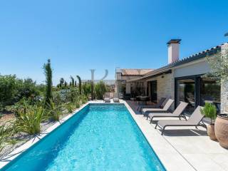 For sale is an exclusive ground floor villa with a modern design in a perfect combination of Istrian stone and baked brick, located in a quiet village and surrounded by modern villas, just a few minutes drive from the center of Poreč and near the sea. With an area of 137 m² + a 44m2 swimming pool, with a garden of 500 m², this property represents a combination of luxury, top-quality equipment and complete privacy. Exceptional quality of construction and interior. One of the highlights of the villa are the high ceilings and a glass wall overlooking an extremely old olive tree.