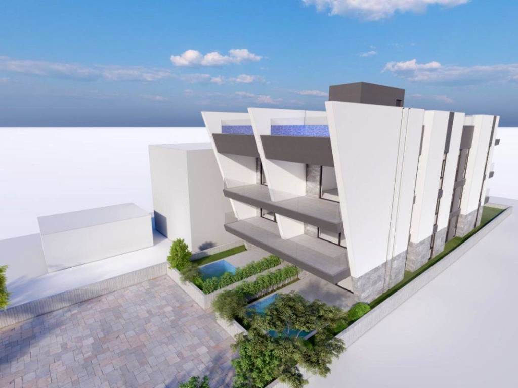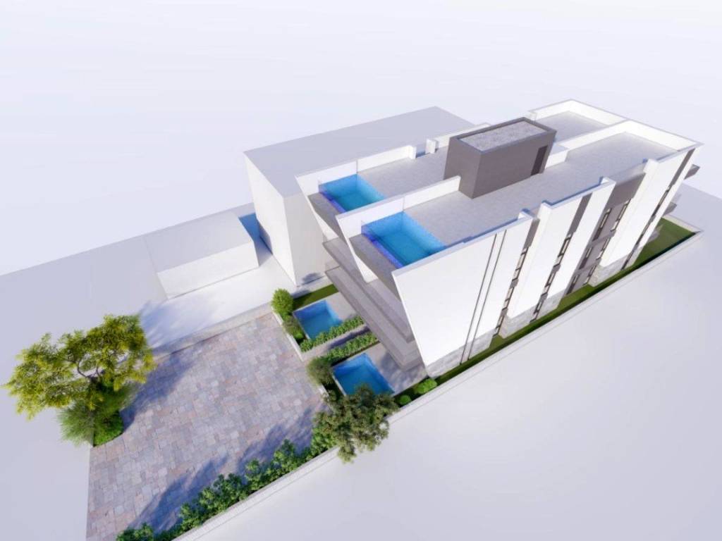 The apartment with a net area of 120.43 m consists of three bedrooms, three modern bathrooms, a spacious living room with a kitchen and dining room in an open concept, a hallway with a wardrobe and a storage room. The living area opens onto a covered terrace and a private garden of 105 m with a 12 m swimming pool. The apartment also has one outdoor parking space of 12.5 m. The total gross area of the property is 240.52 m.