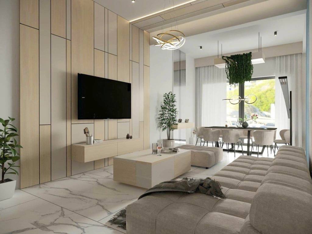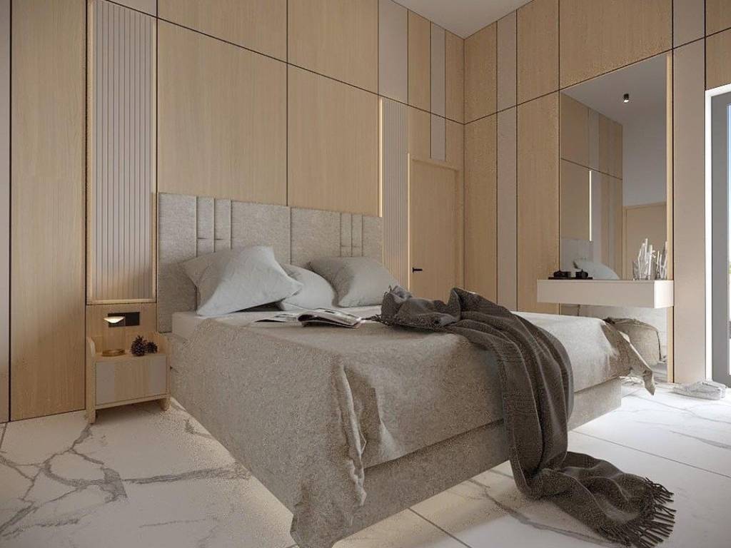 The net living area of the penthouse in the new building is 195 m2 with accessories, and consists of a kitchen, dining room and living room from common rooms, as well as three bedrooms and three bathrooms. Direct access from the living room to the terrace with a swimming pool provides the living space with full sunlight and an excellent feeling of connection between the interior and the exterior, all with an open view of the sea.