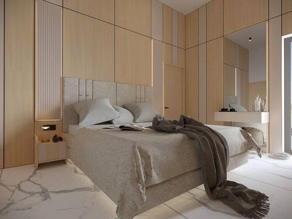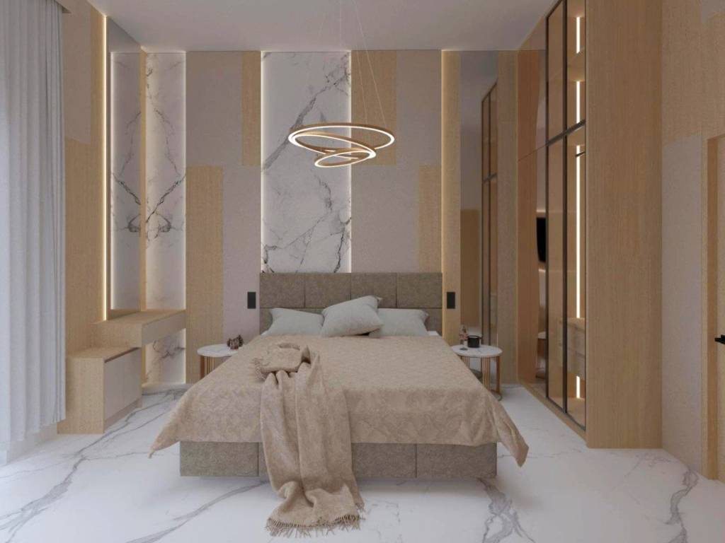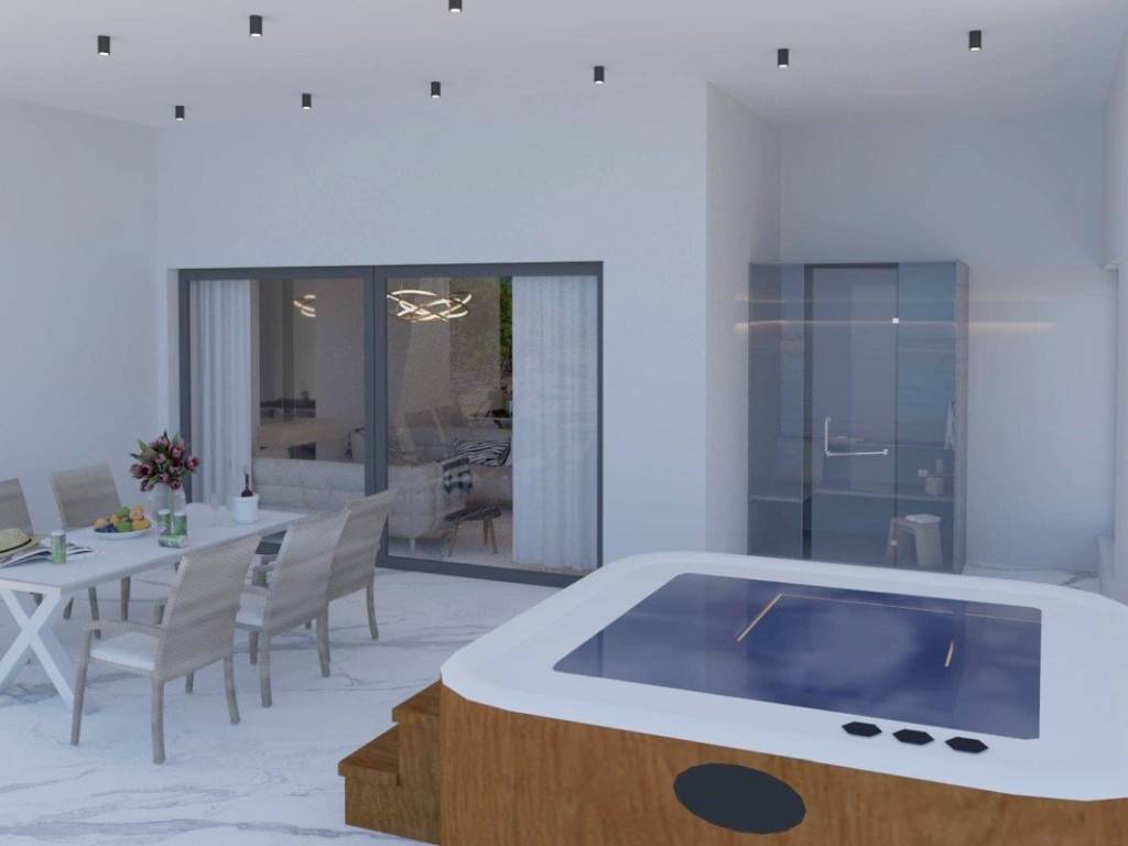 Apartment S4 is located on the first floor and consists of three bedrooms, the main one of which has its own bathroom. In addition, the apartment has an additional guest bathroom and a separate toilet. The living room with kitchen and dining room forms an open and bright space, with access to a large terrace with a private pool, measuring 30.1 m. The total net area of the apartment with its belongings is 153.02 m, while the gross living area is 194.28 m.