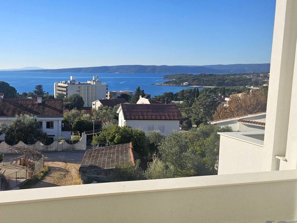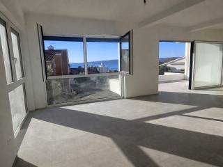 On the first floor there is an entrance hall, bathroom, storage room, kitchen with dining room and living room with access to a covered terrace. Internal stairs lead to the second floor where there are three bedrooms and two bathrooms. One bedroom has its own bathroom and access to a covered terrace with sea view.