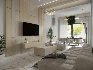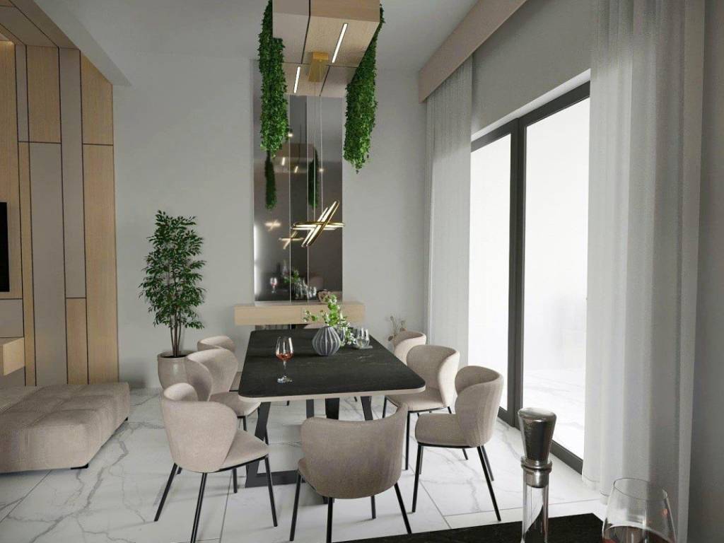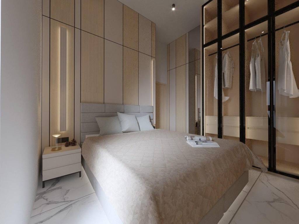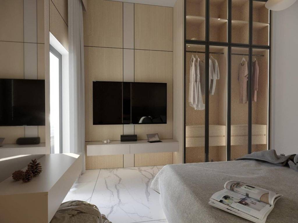 Penthouse S5 is located on the second floor, and its carefully designed layout includes three spacious bedrooms, two of which have their own bathrooms, an additional guest bathroom, and a large living room with an open-plan kitchen and dining area. The living room opens onto a spacious covered terrace of 39.3 m. An internal staircase leads to a roof terrace of 155.6 m, where there is a private pool the perfect space to enjoy panoramic sea views.