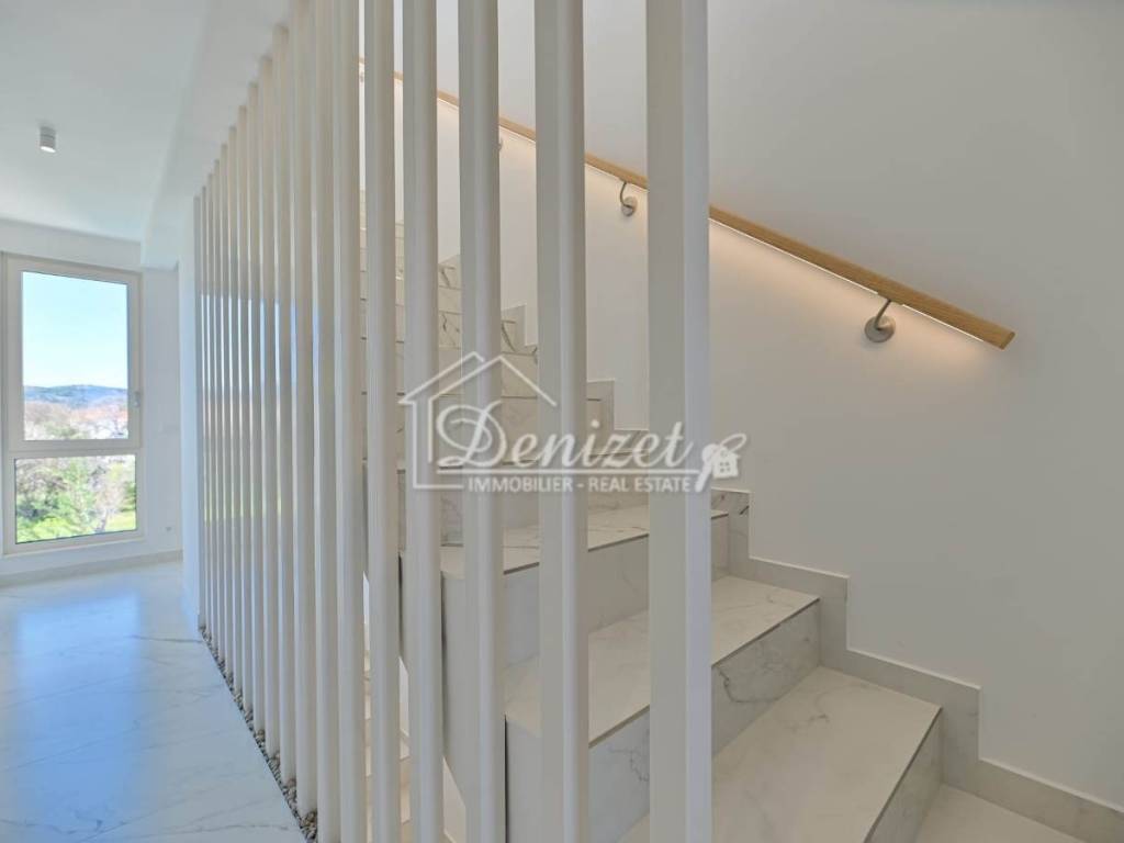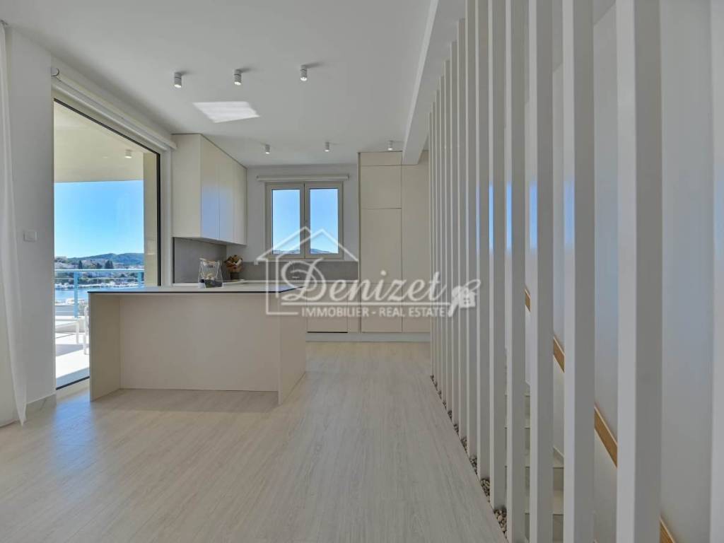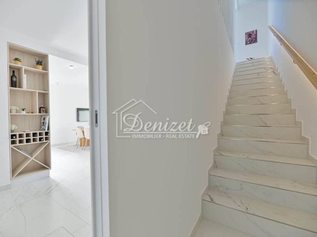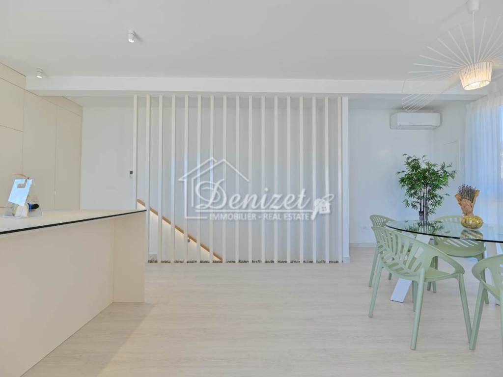 - Le deuxième étage offre un grand salon à concept ouvert avec cuisine et salle à manger. Cet espace donne accès à une terrasse couverte de 12,52 m² avec une magnifique vue sur la mer, idéale pour se détendre et profiter de l’ambiance méditerranéenne.