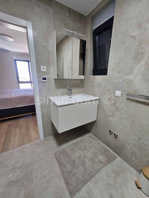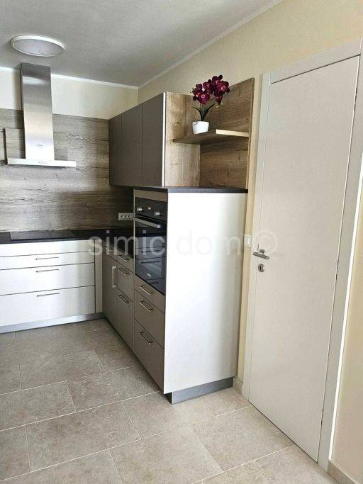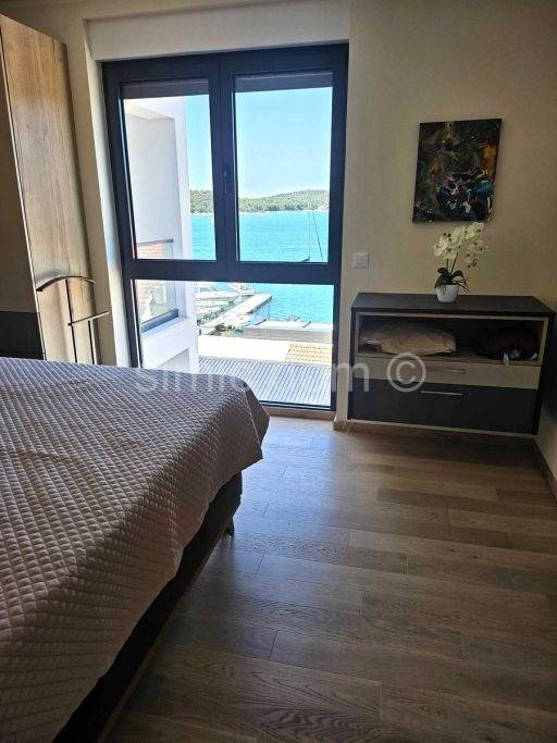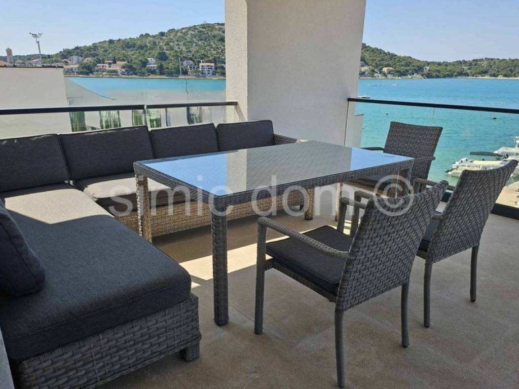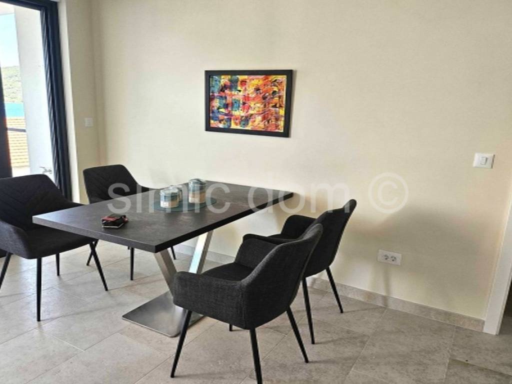 We mediate in the sale of a beautiful and spacious penthouse apartment located in a new building in Tisno, just 50m from the sea. The apartment is located on the second floor of the building and has an internal area of 90.90 m2 and an additional 23.46 m2 of covered terrace, and it also has a parking space and a part of the garden of 19.34 m2. With the coefficients of all property accessories included, it has a total net area of 107 m2. The apartment consists of a hallway, utility room, three bedrooms, two bathrooms and an additional toilet, kitchen, dining room and living room, which opens onto a spacious terrace with a fantastic view. The apartment is fully equipped and furnished, and is especially adorned with an unobstructed view of the beautiful Murter and the surrounding islands. The apartment is equipped with stone floors in the kitchen with dining room, all aluminum windows are with tinted glass, electric shutters and mosquito nets, oak parquet in the bedrooms; all rooms, including the kitchen, are equipped with custom-made cabinets. All other amenities, beach, cafes, restaurants are located in the immediate vicinity. This is a great property for owners who want a spacious apartment and who want to enjoy an unobstructed view close to all the amenities of the charming town of Tisno. Ownership is in order.
