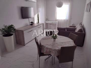 In Srdoči, a beautiful and sunny one-bedroom apartment of 50 m² is available for rent. The apartment is fully furnished and consists of a living room, bedroom, kitchen, bathroom, loggia, basement storage room, and a covered parking space for a car.