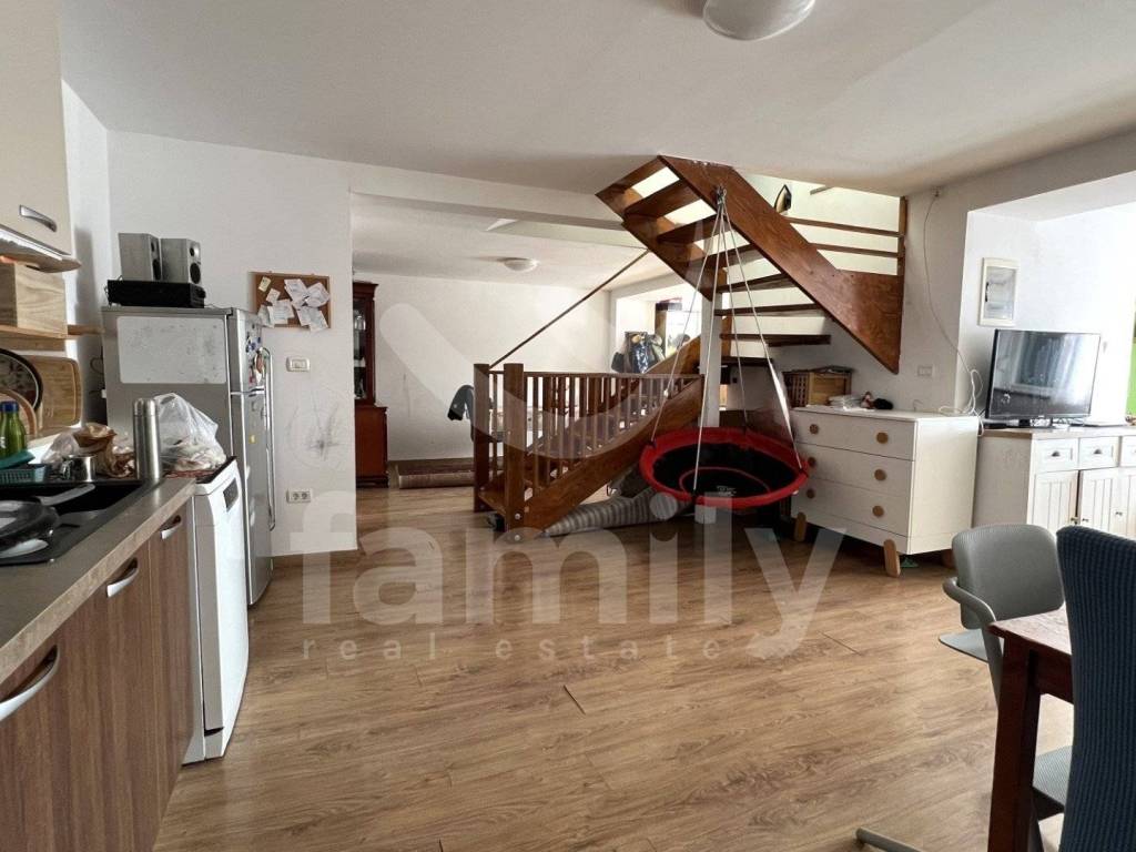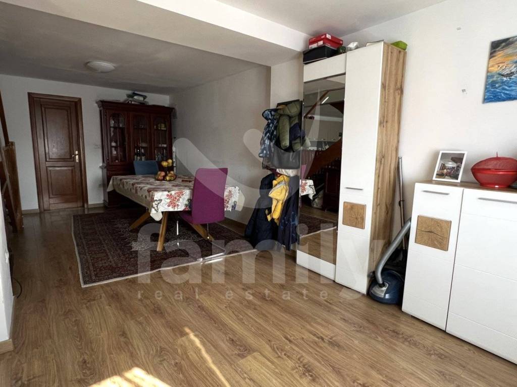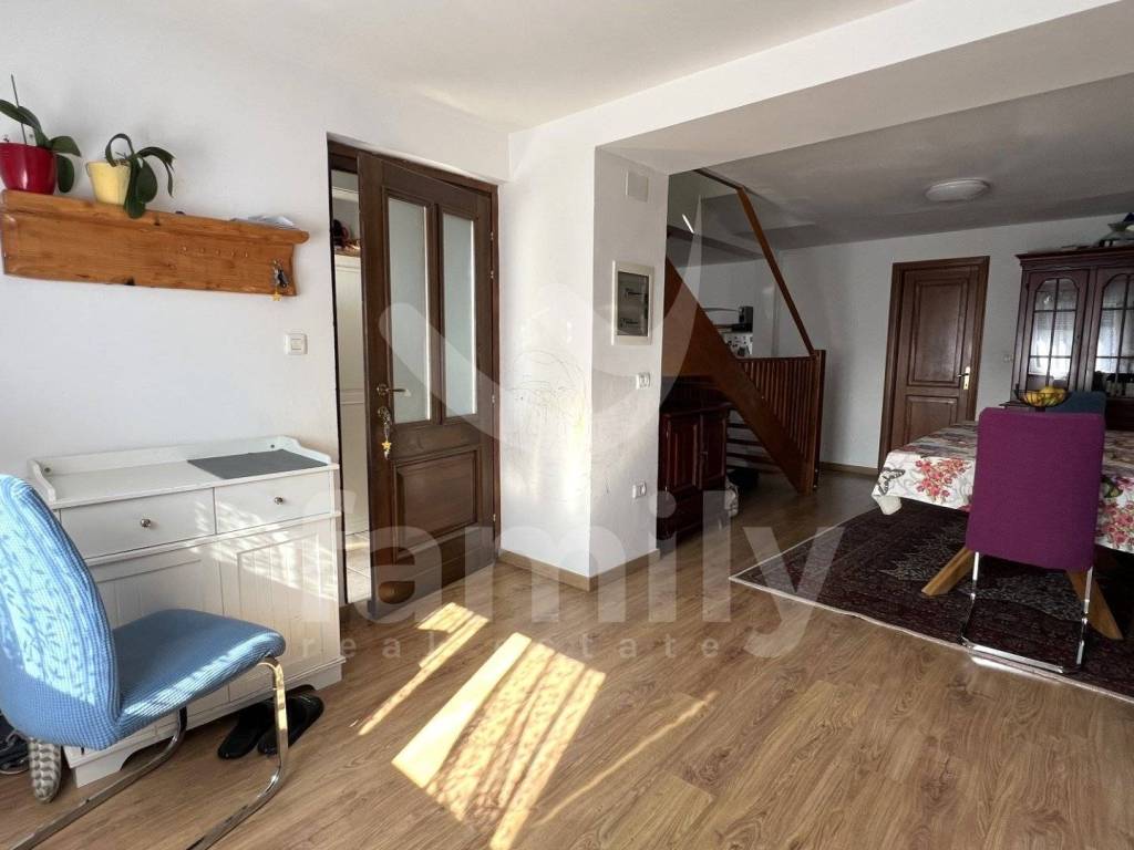 It is a terraced house with a total living area of 105 m2 and is functionally divided into several residential units. On the ground floor there are two separate smaller apartments, each equipped with a kitchen, dining room, living room and bathroom, which makes them ideal for tourist rental or guest accommodation. External stairs lead to the first floor where there is a more spacious apartment consisting of a kitchen, dining room, bright living room and bathroom. From the apartment, internal stairs lead to the attic where there are two comfortable bedrooms and an additional toilet. The floors in the house are covered with a combination of ceramics and laminate. Wooden and PVC joinery has been installed, while the heating on the first floor is regulated by a wood-burning stove.