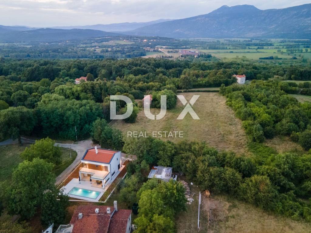 Not far from the town of Labin, a contemporary designed house with a swimming pool is for sale.