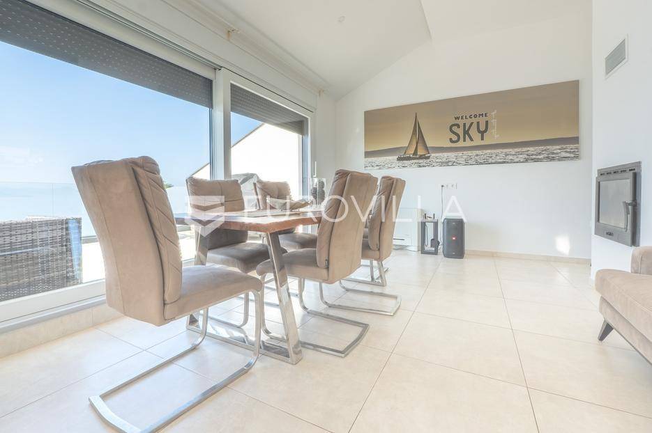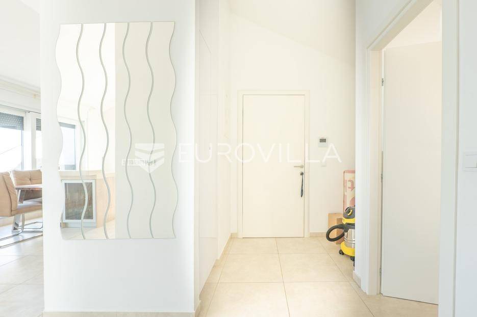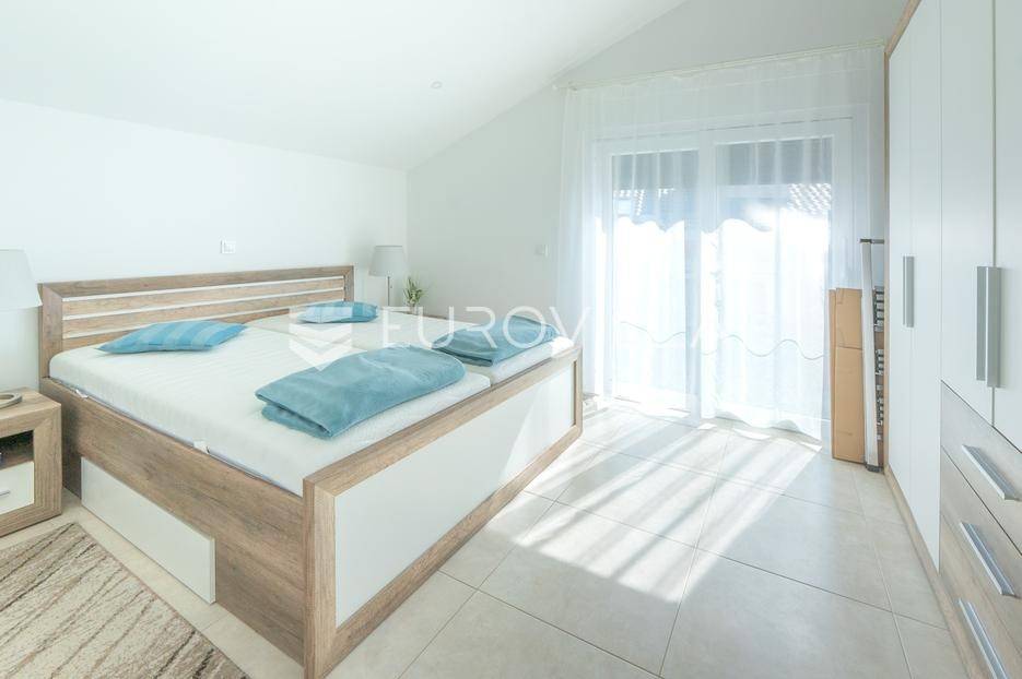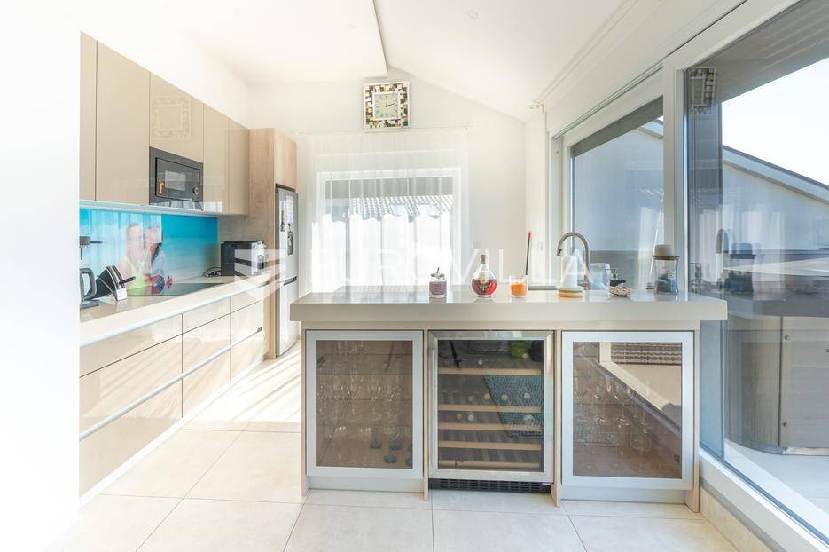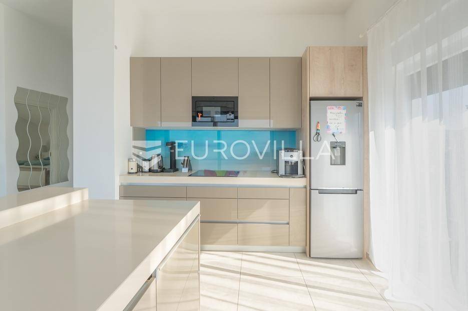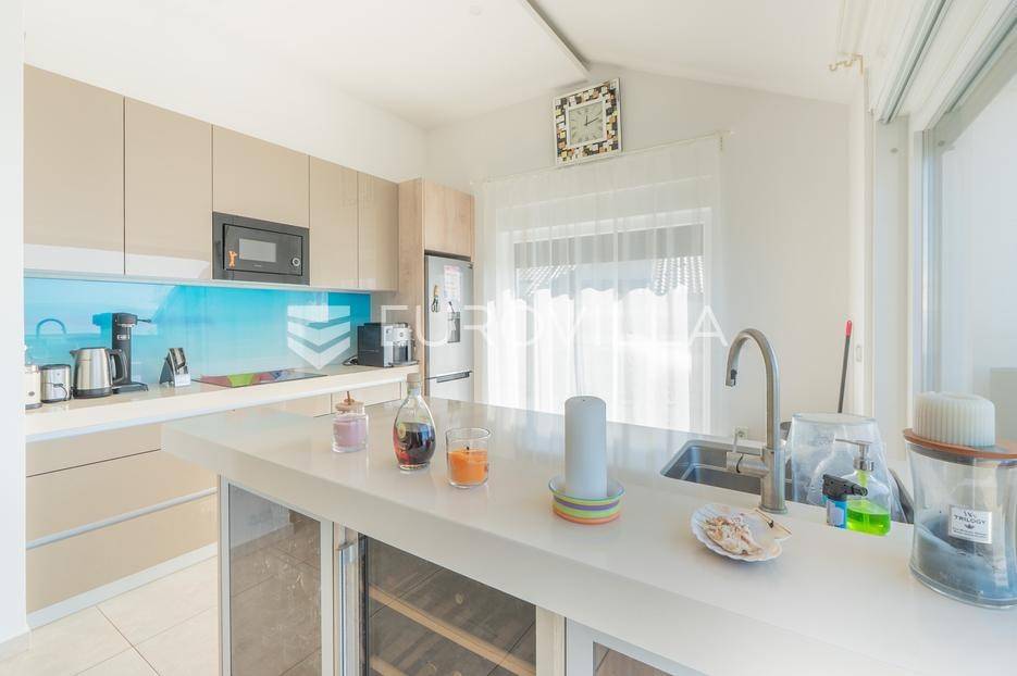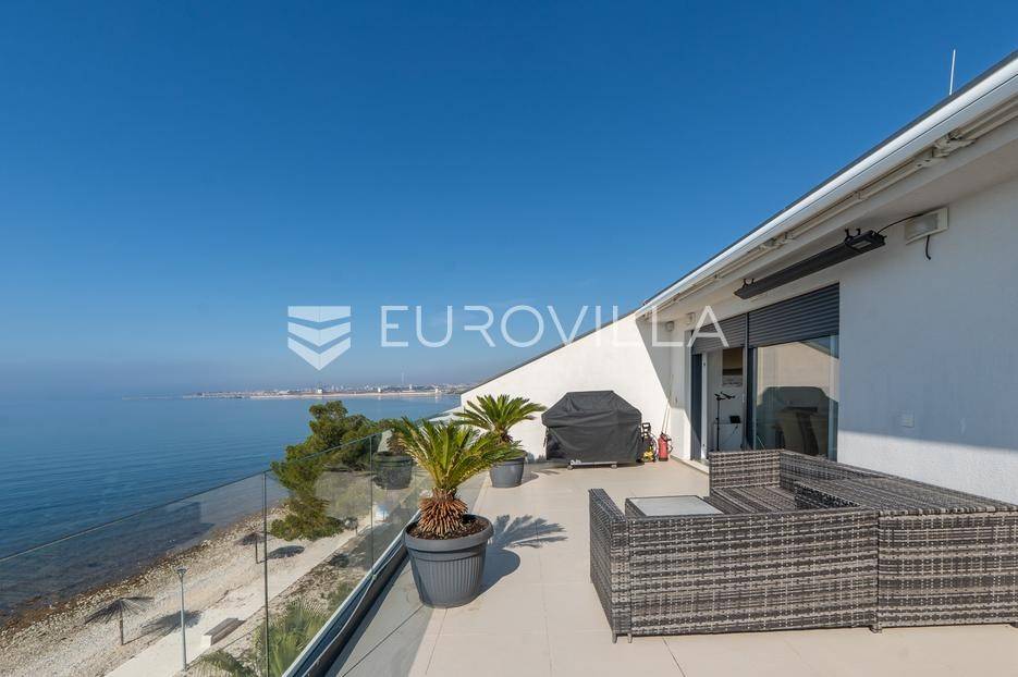 Zadar, Bibinje, u prvom redu uz more i svega nekoliko koraka od uređene plaže, nalazi se prostrani i moderan penthouse koji pruža rijetku kombinaciju privatnosti, komfora i vrhunske lokacije. Smješten u mirnom dijelu mjesta, ovaj stan idealan je za ugodan obiteljski život, luksuzan odmor ili kao izvrsna investicija za turistički najam u blizini Zadra.Stan ima neto korisnu površinu od 86 m², a raspored je iznimno funkcionalan i prilagođen svakodnevnom životu. Sastoji se od prostranog dnevnog boravka povezanog s blagovaonicom, kuhinje, dvije spavaće sobe, dvije kupaonice, garderobe te hodnika. Prostor je ispunjen prirodnim svjetlom, a otvoreni dnevni dio omogućuje ugodan boravak i druženje.Posebna vrijednost ove nekretnine su prostrane vanjske površine i dodatni sadržaji koji značajno povećavaju ukupnu funkcionalnost stana. Stanu pripadaju loggia površine 2,47 m², terasa od 8,45 m² te velika terasa od čak 37,50 m² koja pruža dovoljno prostora za opuštanje, druženja ili uživanje na otvorenom uz morski zrak. Uz to, stan ima i dodatne prostorije: teretanu od 24,47 m², dodatnu kuhinju, kupaonicu, te spremište 12,60 m². U vlasništvu je i parkirno mjesto.Ukupna površina stana s pripadajućim prostorima iznosi 153,90 m², što uključuje stambeni dio, terase, dodatne prostore i parkirno mjesto.Lokacija je jedna od najvećih prednosti ove nekretnine. Bibinje je poznato po uređenim plažama, kristalno čistom moru i opuštenom mediteranskom načinu života, a istovremeno nudi sve potrebne sadržaje – trgovine, restorane, školu, marinu i šetnice – sve na pješačkoj udaljenosti. Blizina Zadra dodatno povećava atraktivnost ove lokacije.Ovaj penthouse predstavlja odličnu priliku za kupce koji traže nekretninu uz more s velikim vanjskim prostorom, dodatnim sadržajima i vrhunskom lokacijom.Za više informacija i dogovor oko razgledavanja slobodno se javite.... Više na eurovilla.hr, ID: 730512
