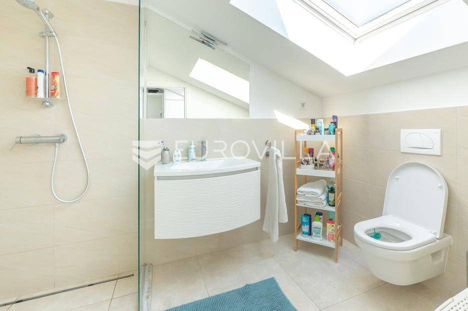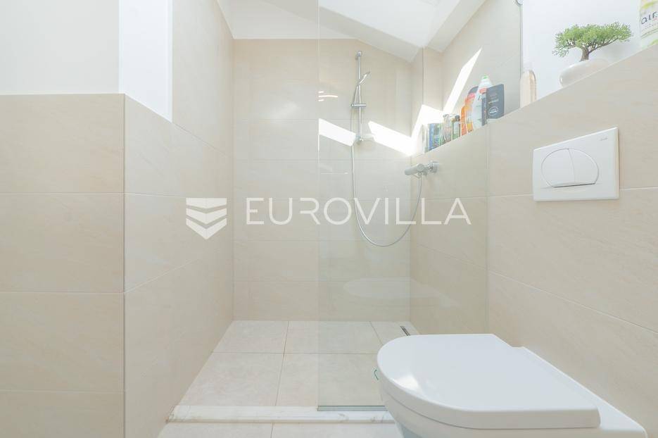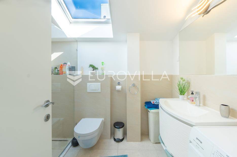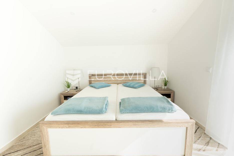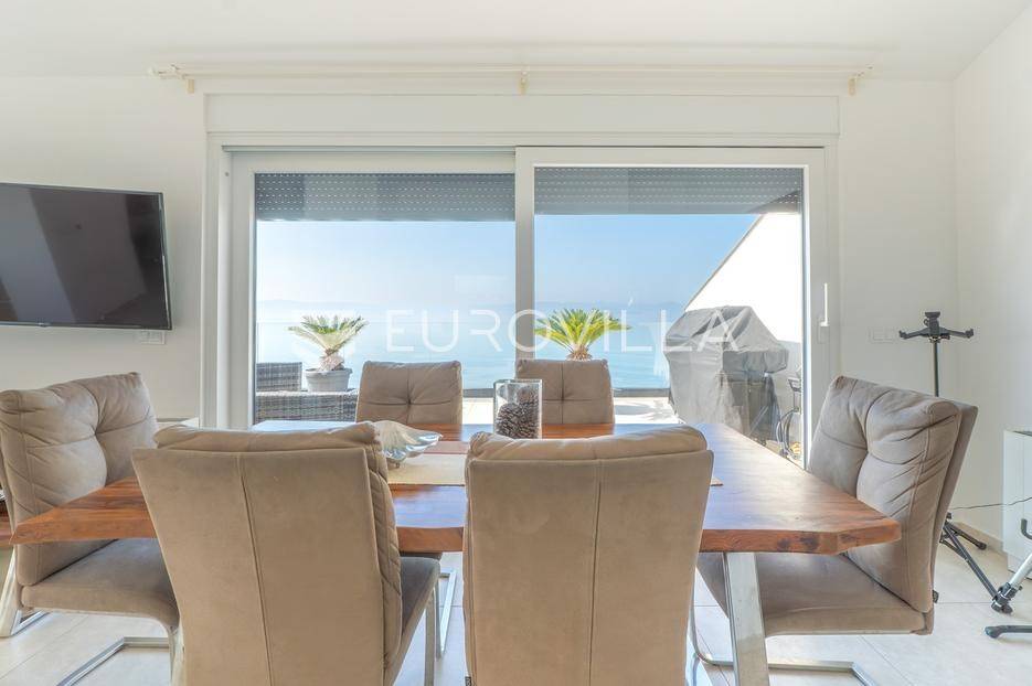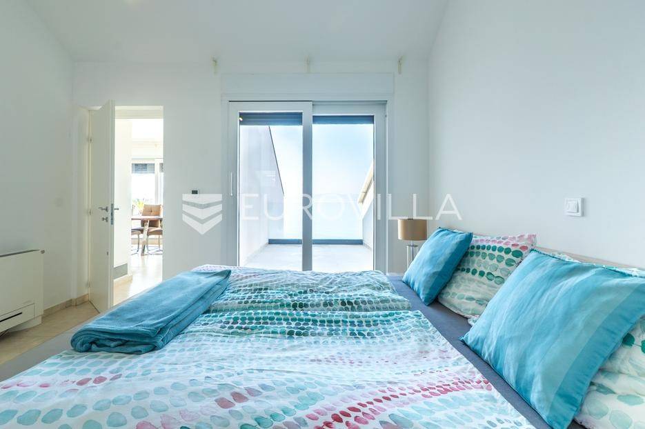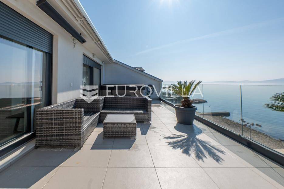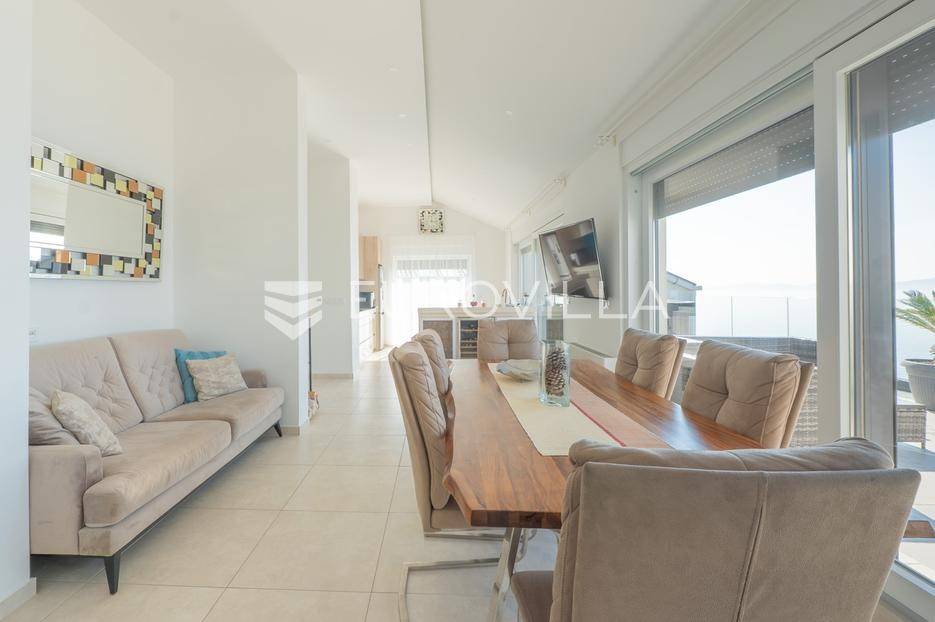 Zadar, Bibinje, u prvom redu uz more i svega nekoliko koraka od uređene plaže, nalazi se prostrani i moderan penthouse koji pruža rijetku kombinaciju privatnosti, komfora i vrhunske lokacije. Smješten u mirnom dijelu mjesta, ovaj stan idealan je za ugodan obiteljski život, luksuzan odmor ili kao izvrsna investicija za turistički najam u blizini Zadra.Stan ima neto korisnu površinu od 86 m², a raspored je iznimno funkcionalan i prilagođen svakodnevnom životu. Sastoji se od prostranog dnevnog boravka povezanog s blagovaonicom, kuhinje, dvije spavaće sobe, dvije kupaonice, garderobe te hodnika. Prostor je ispunjen prirodnim svjetlom, a otvoreni dnevni dio omogućuje ugodan boravak i druženje.Posebna vrijednost ove nekretnine su prostrane vanjske površine i dodatni sadržaji koji značajno povećavaju ukupnu funkcionalnost stana. Stanu pripadaju loggia površine 2,47 m², terasa od 8,45 m² te velika terasa od čak 37,50 m² koja pruža dovoljno prostora za opuštanje, druženja ili uživanje na otvorenom uz morski zrak. Uz to, stan ima i dodatne prostorije: teretanu od 24,47 m², dodatnu kuhinju, kupaonicu, te spremište 12,60 m². U vlasništvu je i parkirno mjesto.Ukupna površina stana s pripadajućim prostorima iznosi 153,90 m², što uključuje stambeni dio, terase, dodatne prostore i parkirno mjesto.Lokacija je jedna od najvećih prednosti ove nekretnine. Bibinje je poznato po uređenim plažama, kristalno čistom moru i opuštenom mediteranskom načinu života, a istovremeno nudi sve potrebne sadržaje – trgovine, restorane, školu, marinu i šetnice – sve na pješačkoj udaljenosti. Blizina Zadra dodatno povećava atraktivnost ove lokacije.Ovaj penthouse predstavlja odličnu priliku za kupce koji traže nekretninu uz more s velikim vanjskim prostorom, dodatnim sadržajima i vrhunskom lokacijom.Za više informacija i dogovor oko razgledavanja slobodno se javite.... Više na eurovilla.hr, ID: 730512
