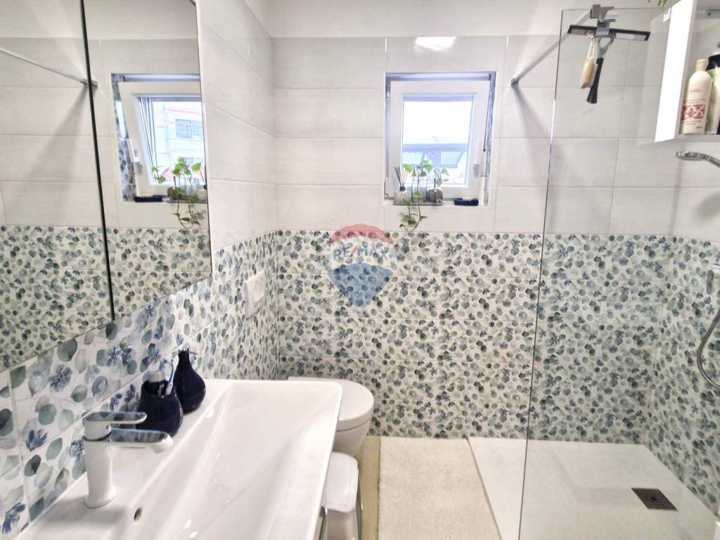 The interior of the apartment is equipped with high-end custom-made furniture, carefully selected materials, quality ceramics, and sanitary fittings. The apartment is extremely bright and airy thanks to large glass surfaces and an excellent room layout, which further contributes to comfort and functionality.