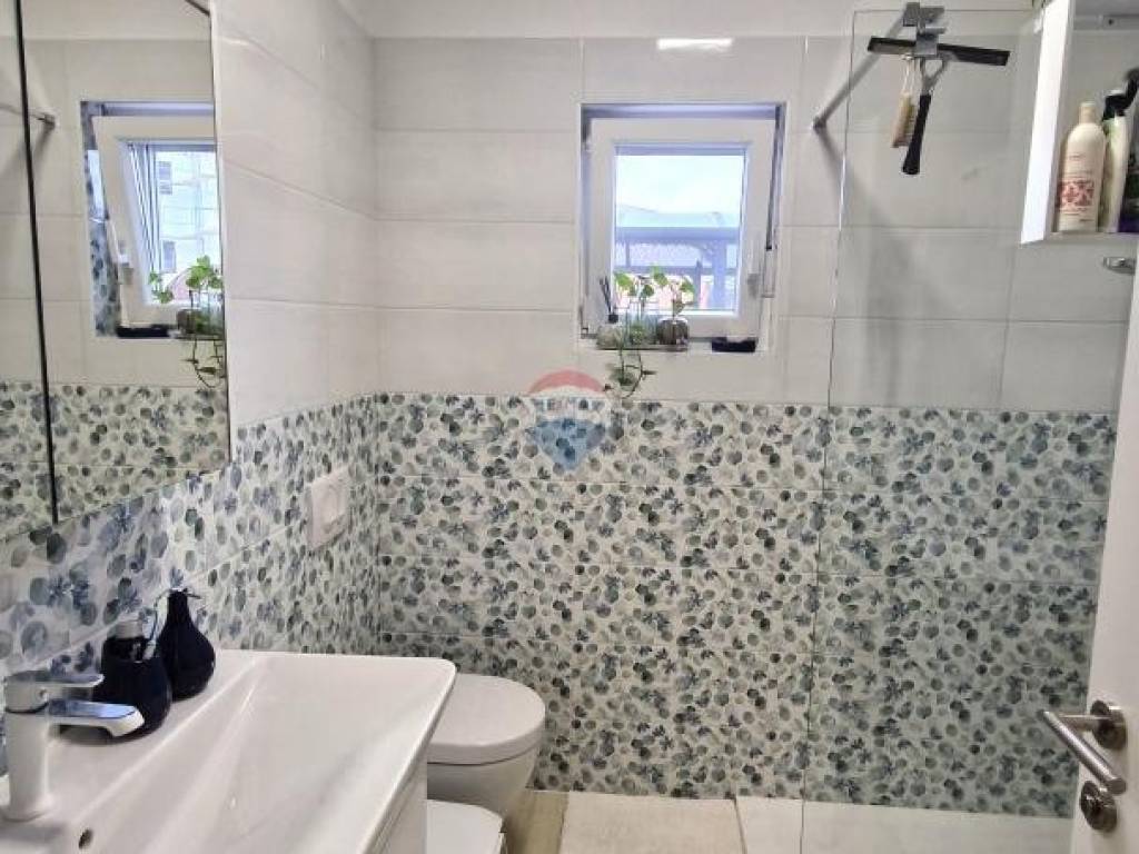 The apartment also includes a storage room located on the ground floor of the building under the staircase, a terrace, and one covered parking space. The storage room contains a heat pump that enables efficient heating and cooling throughout the year, ensuring high energy efficiency and a pleasant indoor climate in all seasons.