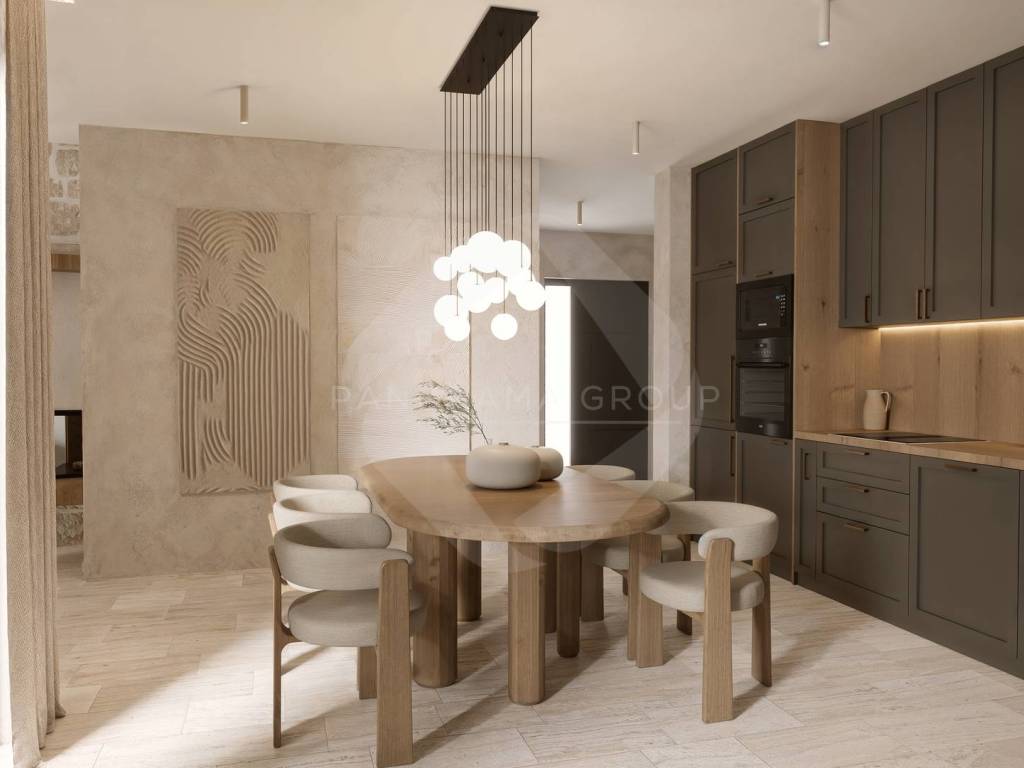 The house will be built on a plot of approximately 600 m2, while after construction, about 350 m2 of landscaped garden will remain. The outdoor area will be horticulturally decorated, with an electrolysis swimming pool and planted old olive trees that further emphasize the authentic island atmosphere.