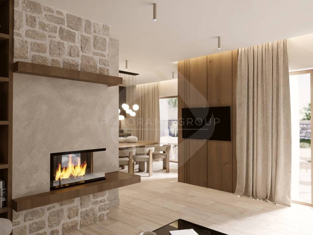 The house will be built with quality materials and equipped with modern equipment. Electric underfloor heating is planned, while parquet floors will be installed in the bedrooms. The joinery will be a combination of PVC and aluminum with shutters, and a fireplace is planned in the living room, which further contributes to the warmth and atmosphere of the home. The stone-clad facade fits perfectly into the rustic style characteristic of this part of the island.
