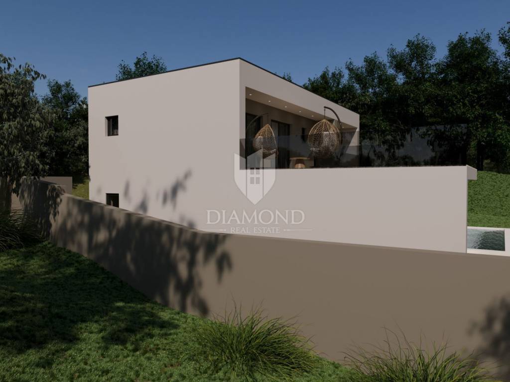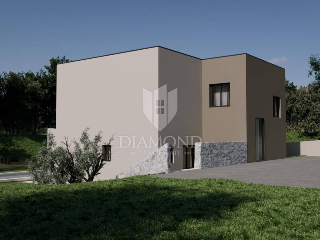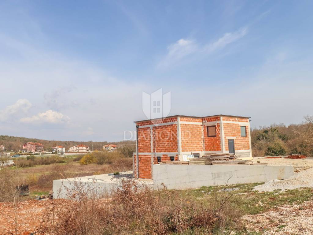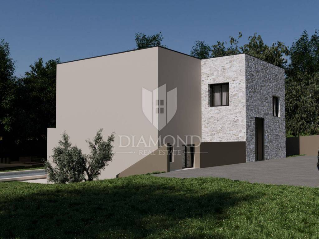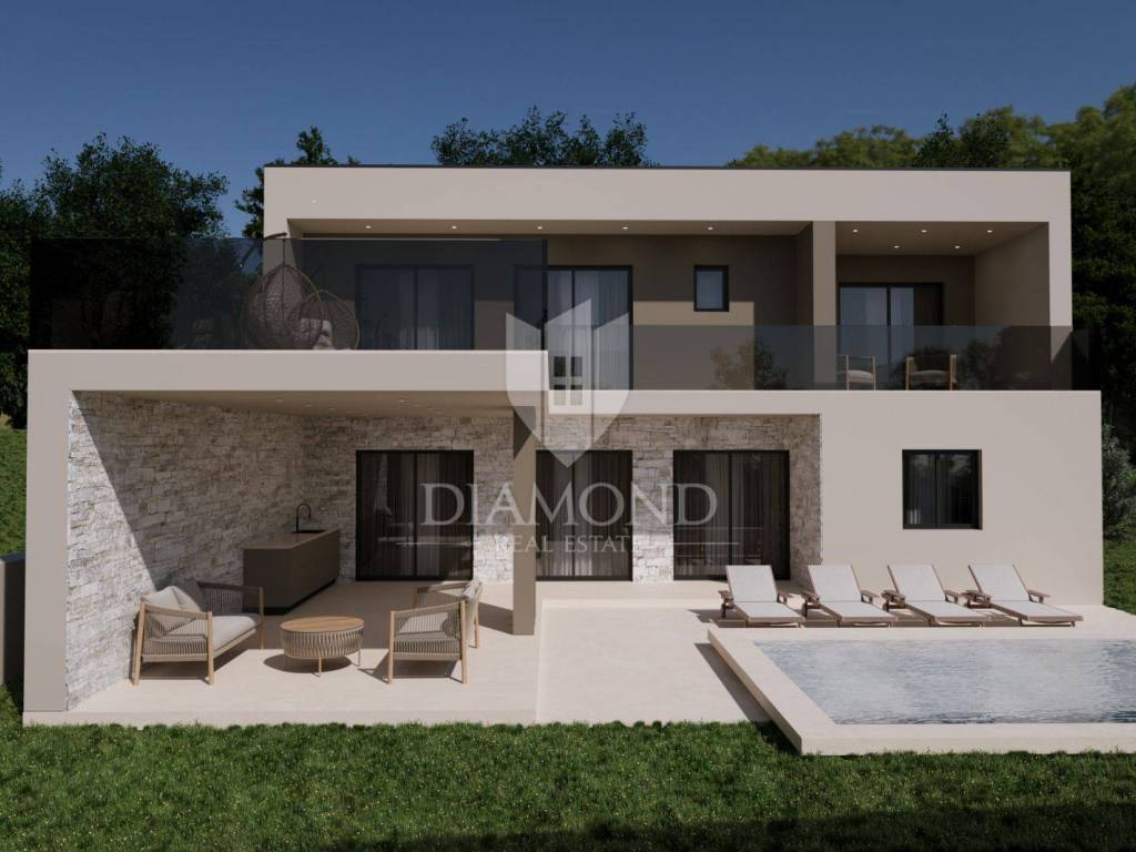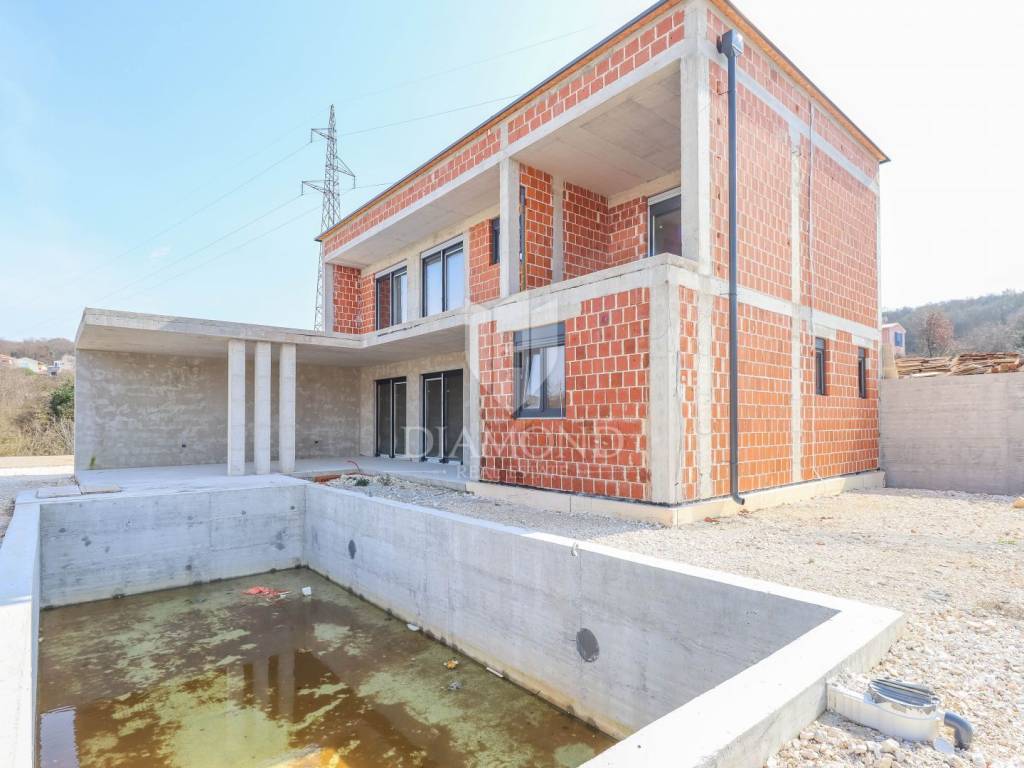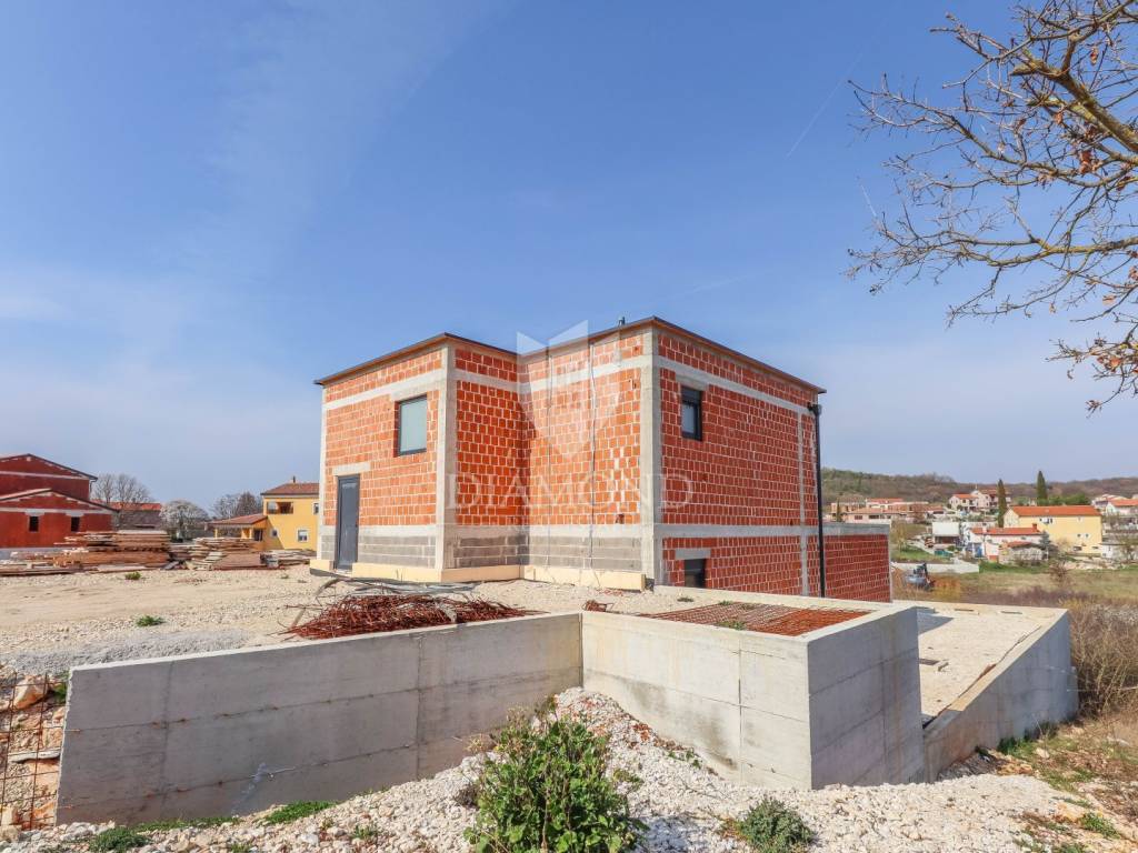A luxury detached house with a swimming pool, currently in the final stage of construction, is for sale. It is located in a quiet and pleasant neighborhood just 10 kilometers from the beautiful town of Rovinj. The property sits on a plot of 643 m² and has a total living area of 179.78 m², along with a swimming pool of 35 m². The house has two floors, and the planned completion of construction is in 2026. The property is being sold unfurnished, giving the future owner the opportunity to design and furnish the interior according to their own wishes and style.