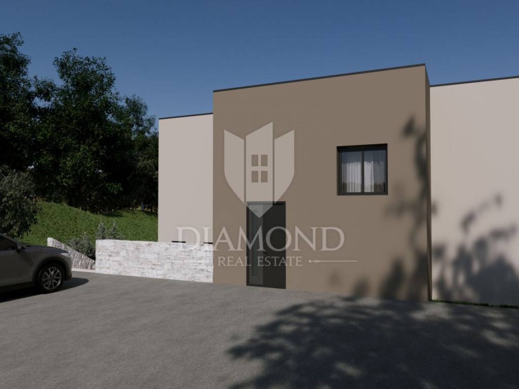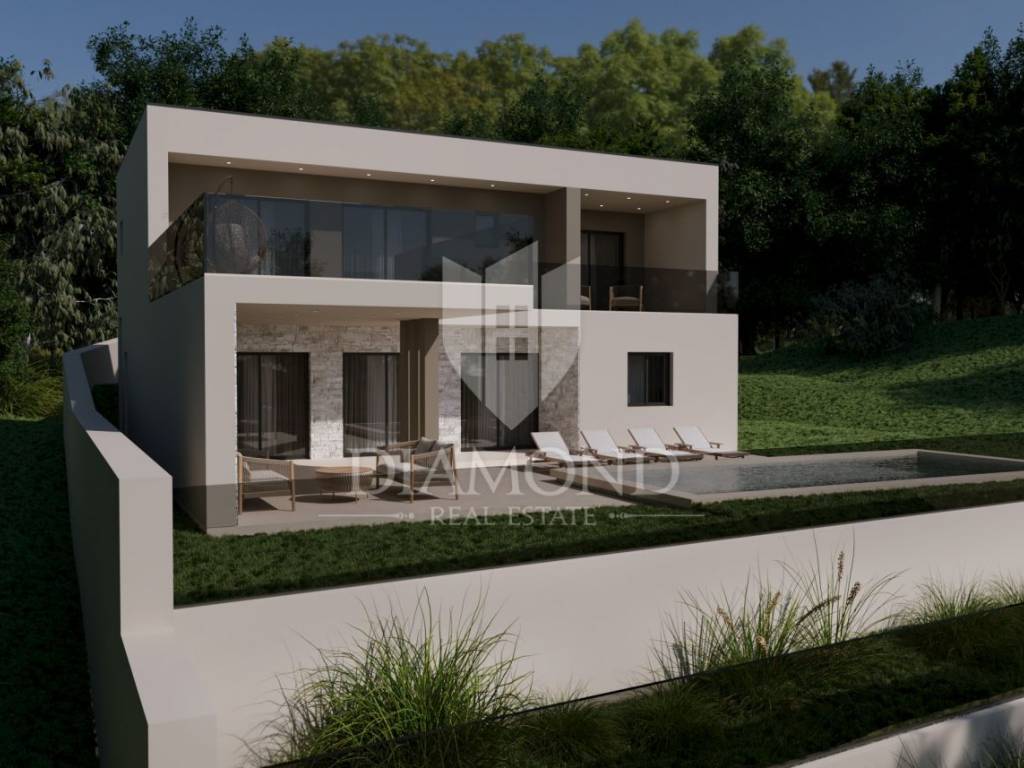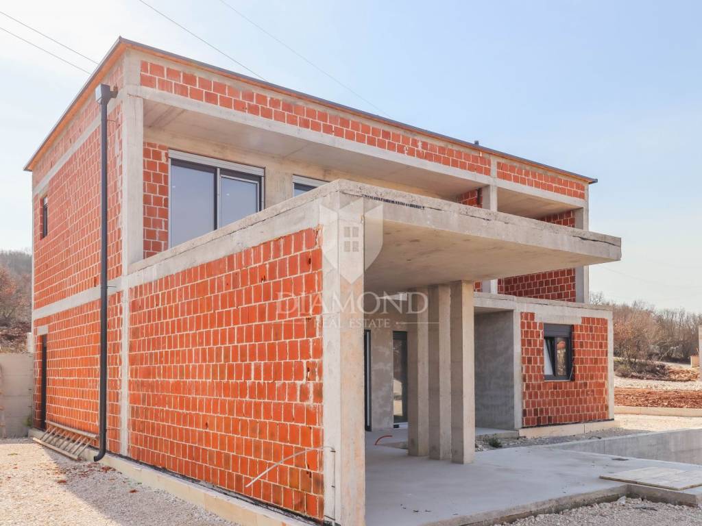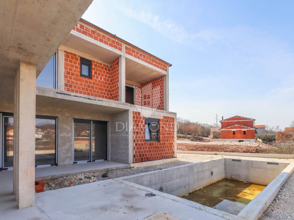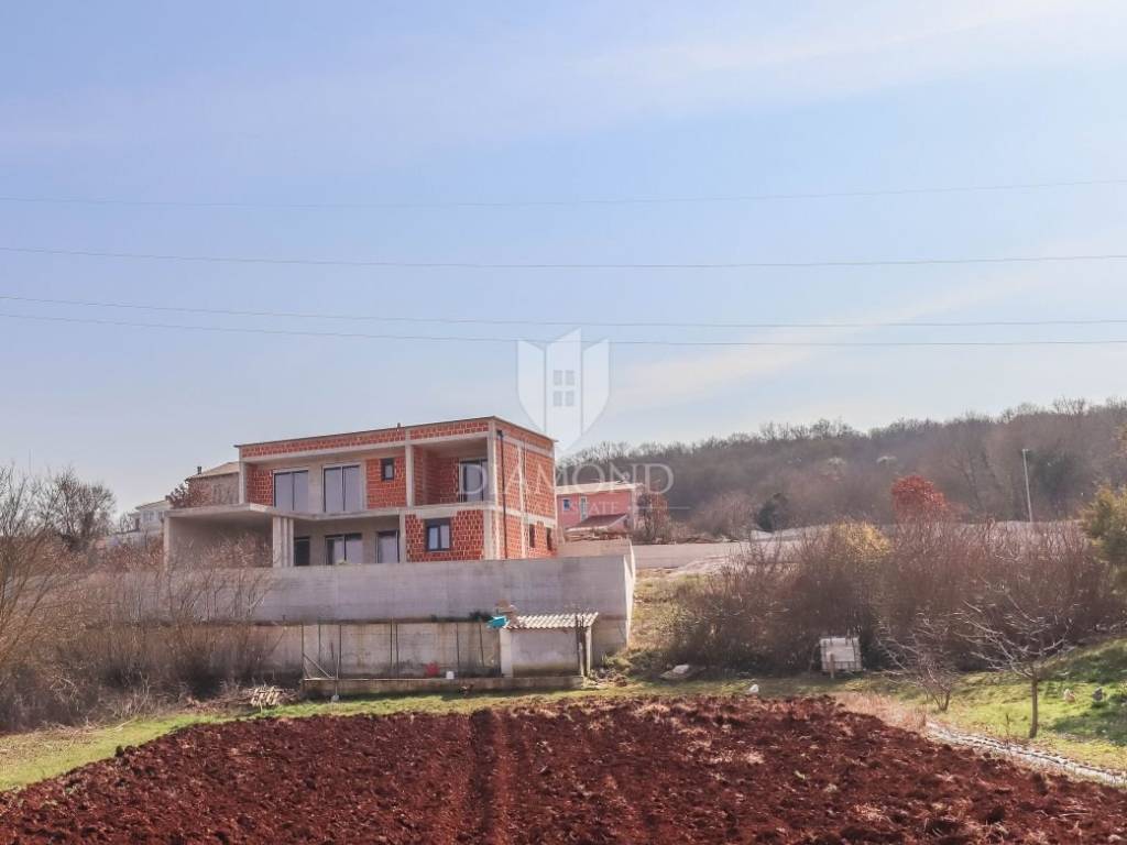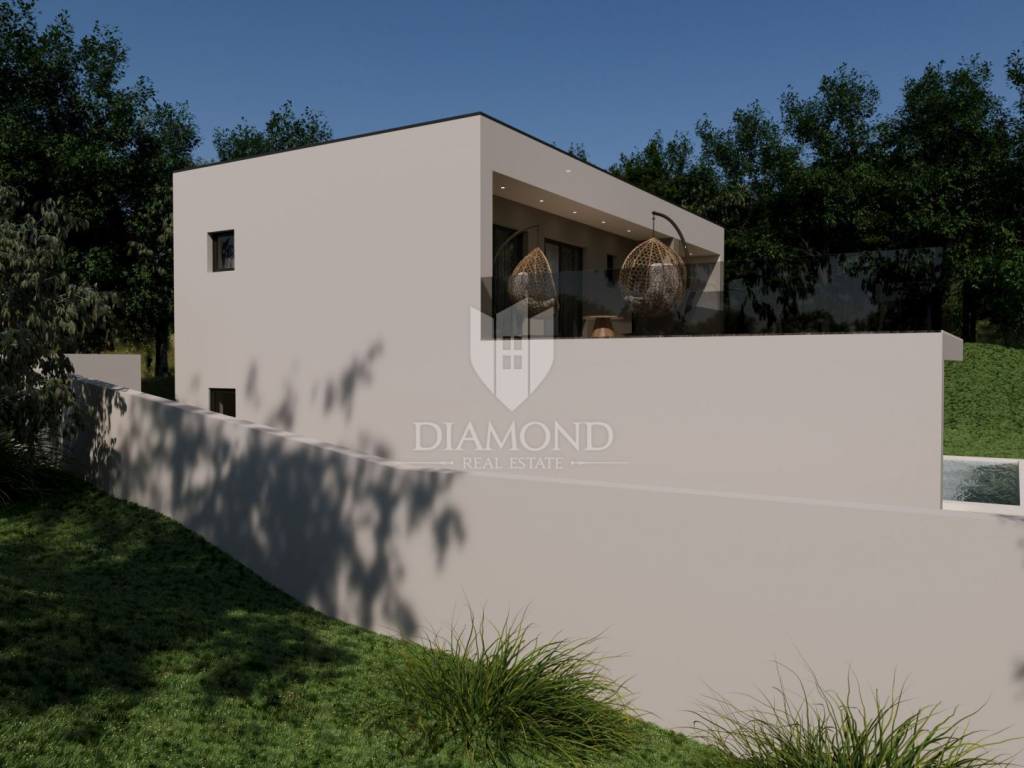 A luxury detached house with a swimming pool, currently in the final stage of construction, is for sale. It is located in a quiet and pleasant neighborhood just 10 kilometers from the beautiful town of Rovinj. The property sits on a plot of 643 m² and has a total living area of 179.78 m², along with a swimming pool of 35 m². The house has two floors, and the planned completion of construction is in 2026. The property is being sold unfurnished, giving the future owner the opportunity to design and furnish the interior according to their own wishes and style.