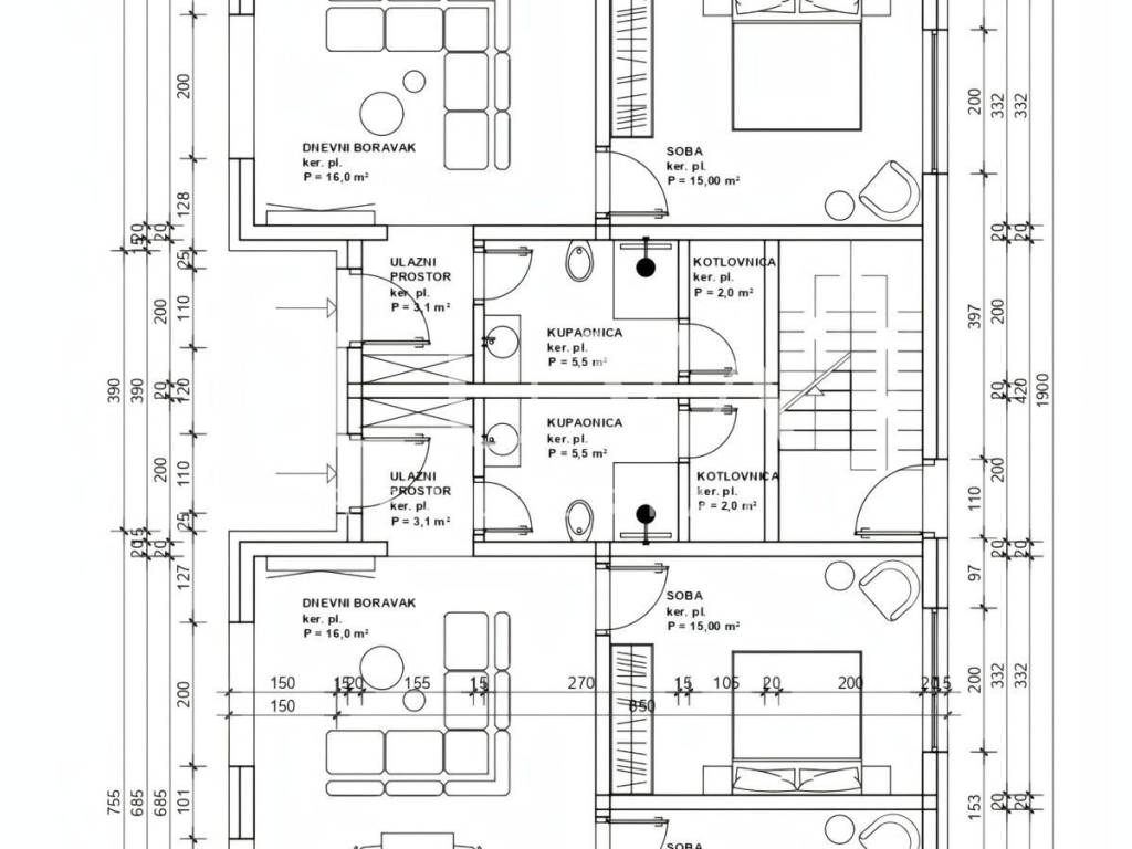 The project consists of two separate Mediterranean style villas (three apartments each) with landscaped surroundings, situated in a quiet location just 350 meters from the sea. High quality materials will be used during construction, including large format tiles, Villeroy & Boch sanitary ware, quality natural stone for the façade and similar premium materials.
